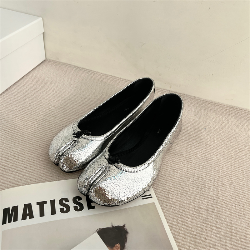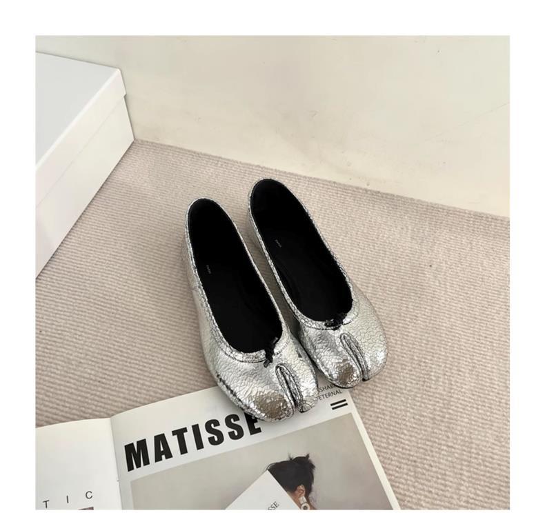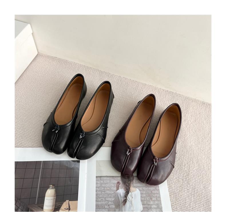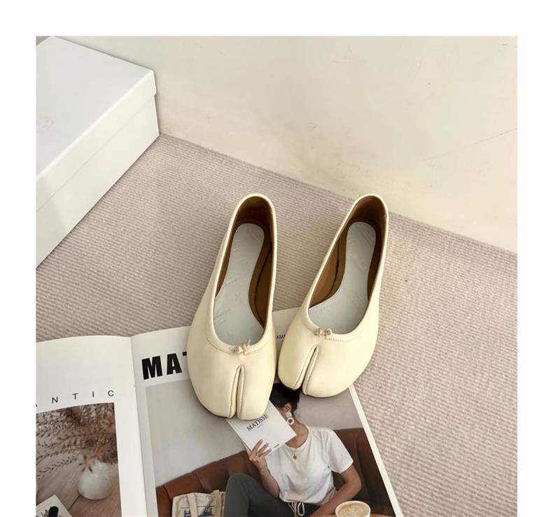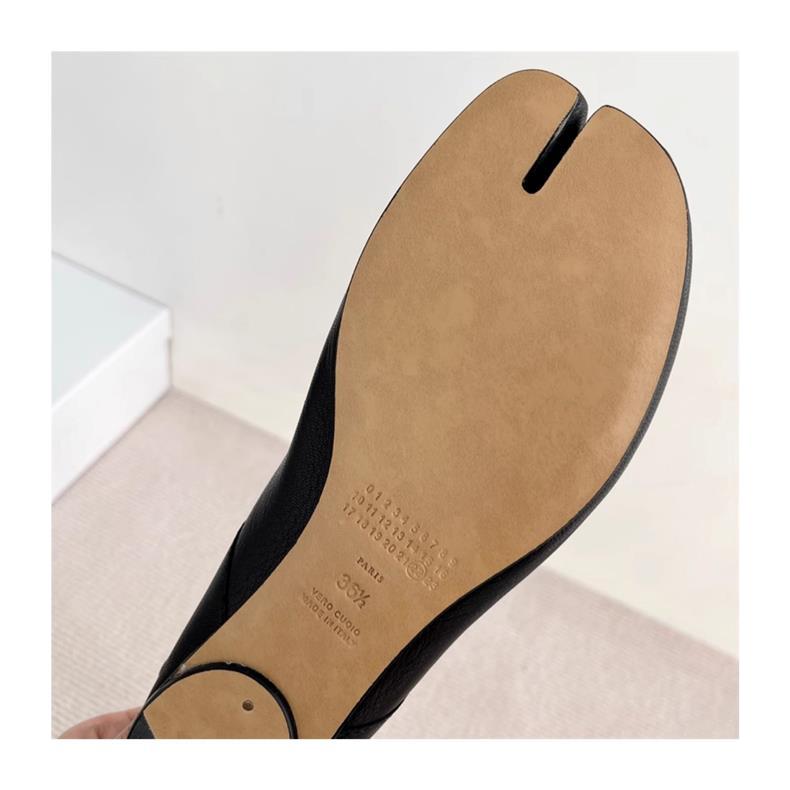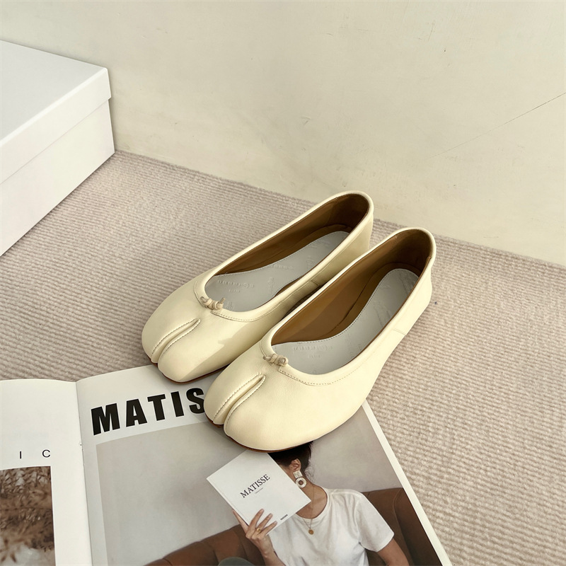 봄과 여름 2024 새로운 빈티지 스플릿 발가락 신발 tabi 정품 가죽 로우 힐 로우 입 편안한 양가죽 플랫 댄스 신발 여성용