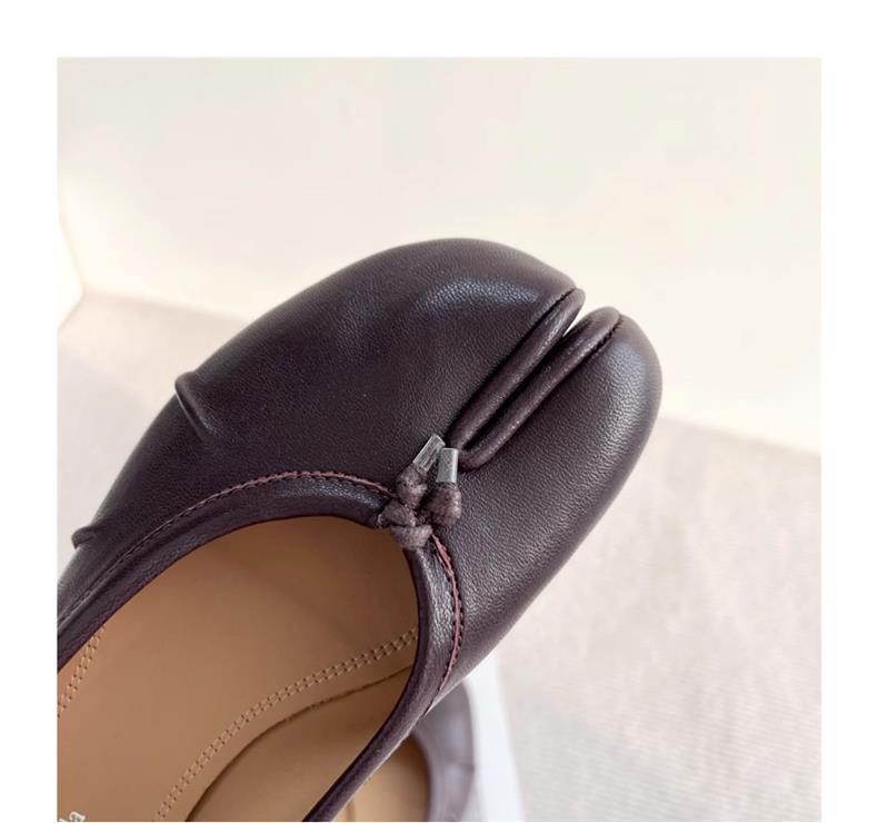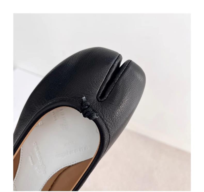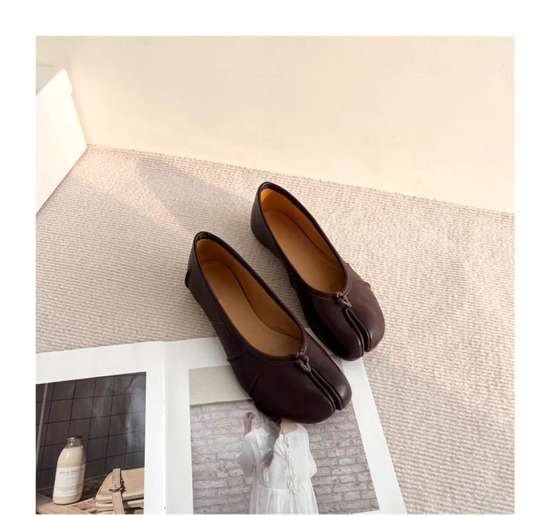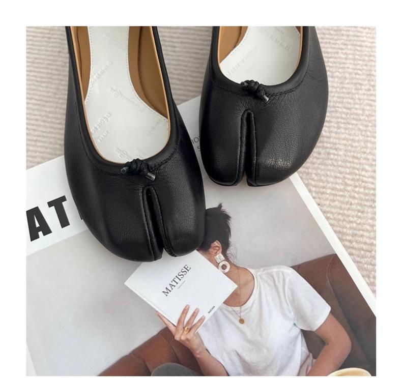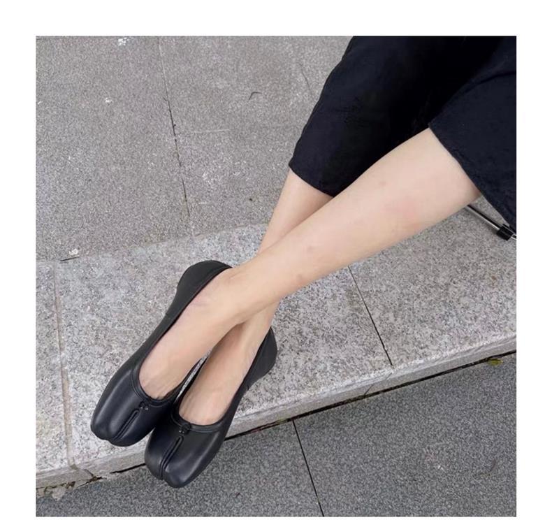 봄과 여름 2024 새로운 빈티지 스플릿 발가락 신발 tabi 정품 가죽 로우 힐 로우 입 편안한 양가죽 플랫 댄스 신발 여성용스토어 가기