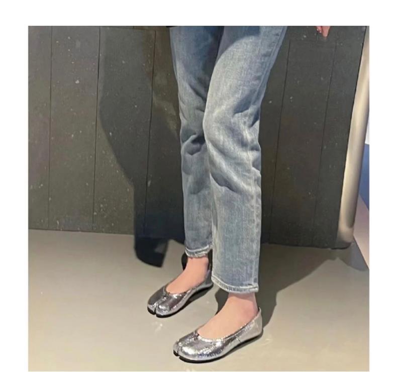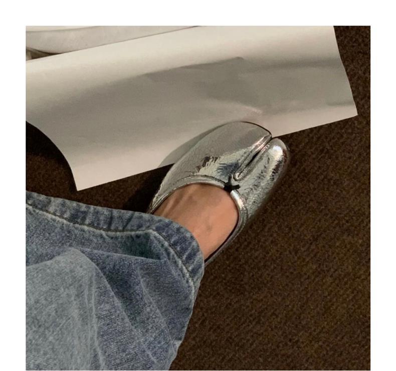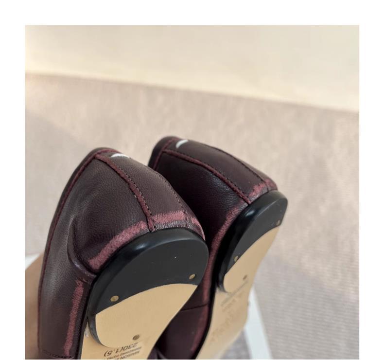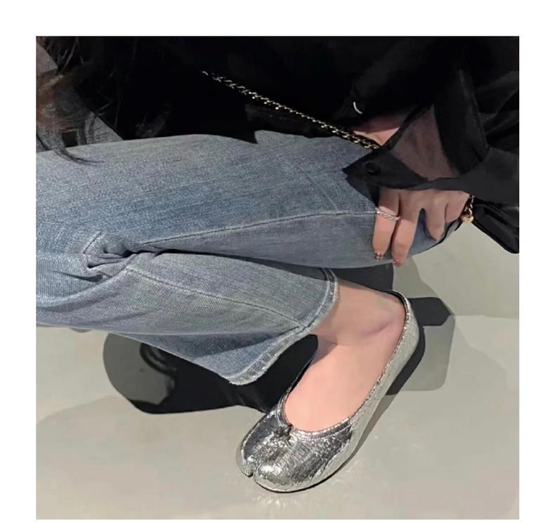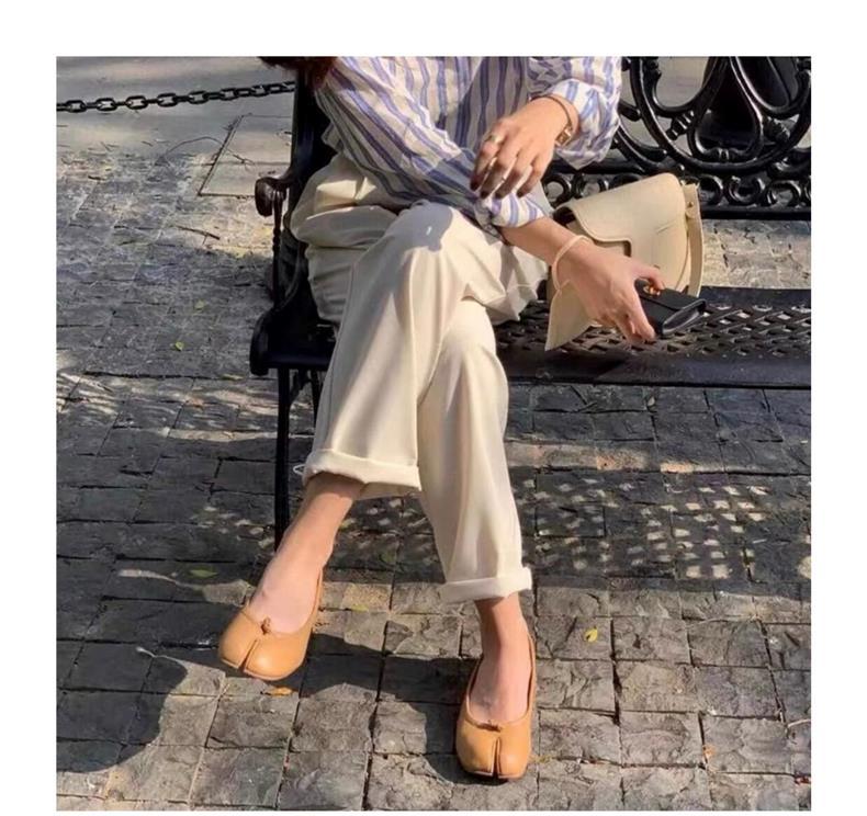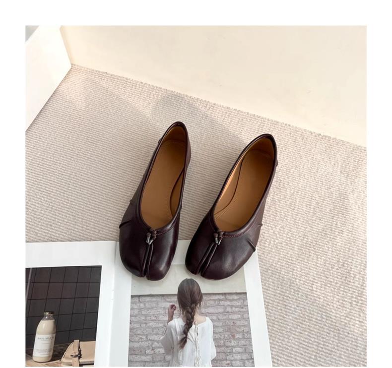 봄과 여름 2024 새로운 빈티지 스플릿 발가락 신발 tabi 정품 가죽 로우 힐 로우 입 편안한 양가죽 플랫 댄스 신발 여성용스토어 가기