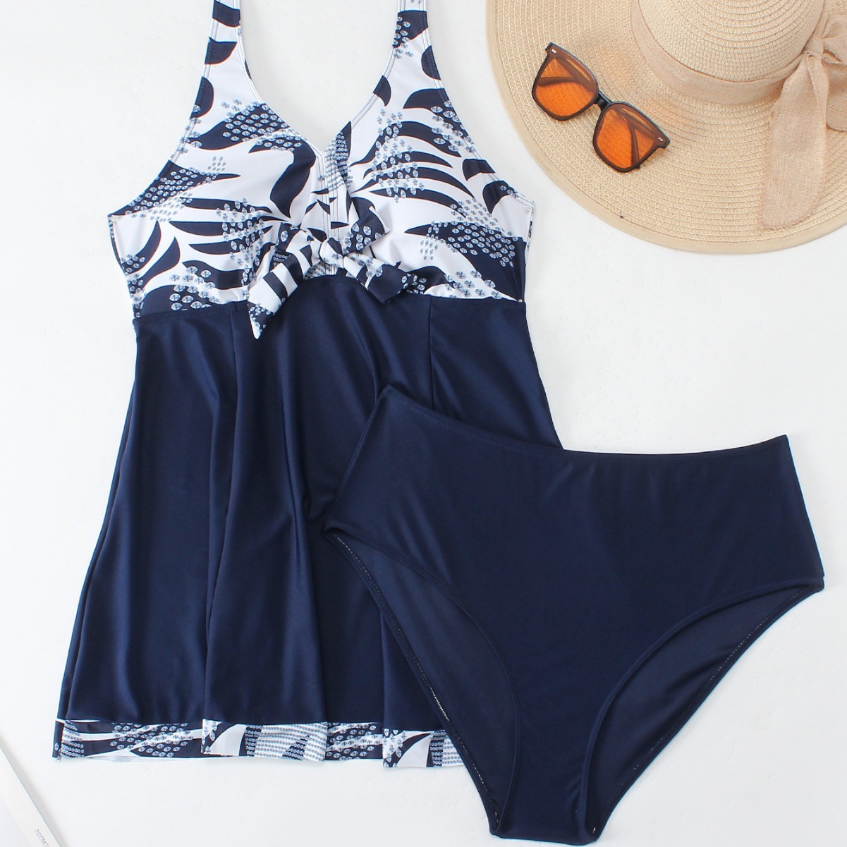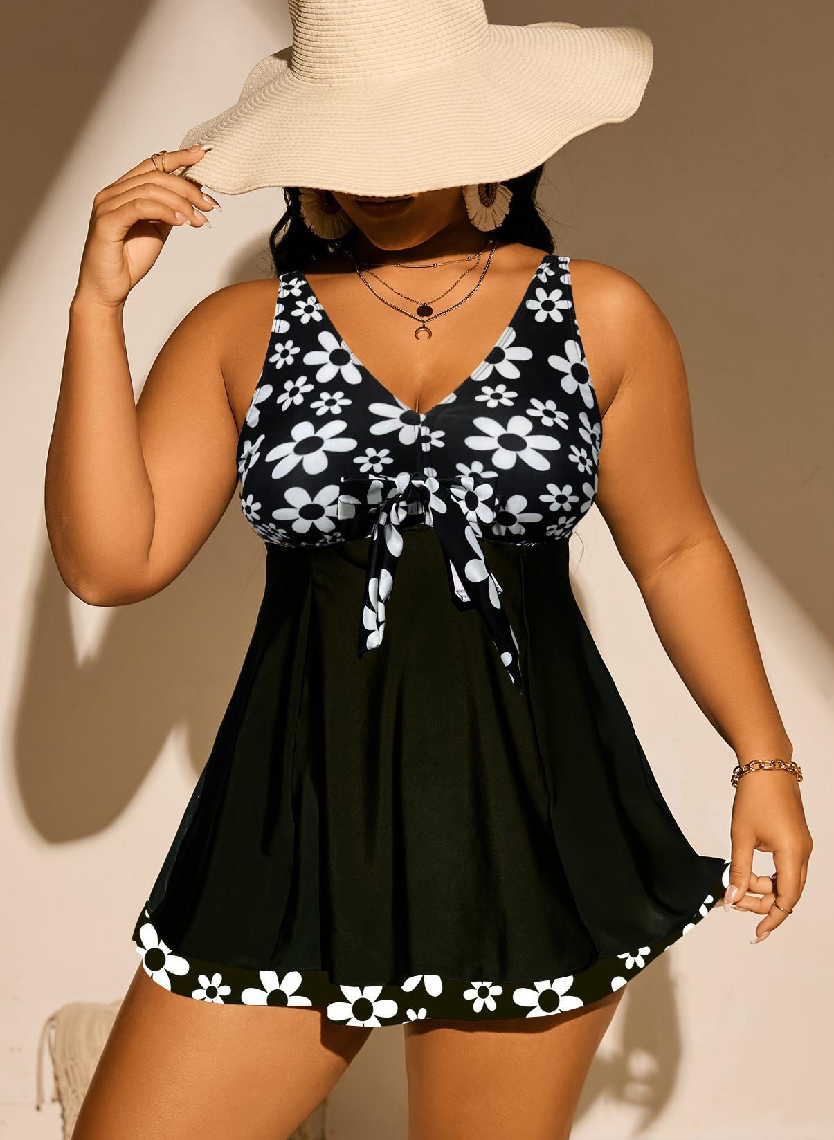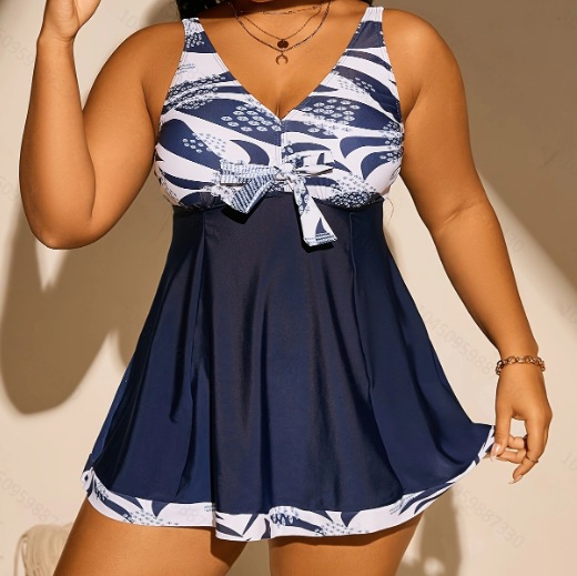 2025 유럽과 미국 국경 새 프린트 배꼽 슬림 복서 플러스 사이즈 tankini 보수적 인 휴가 온천 수영복