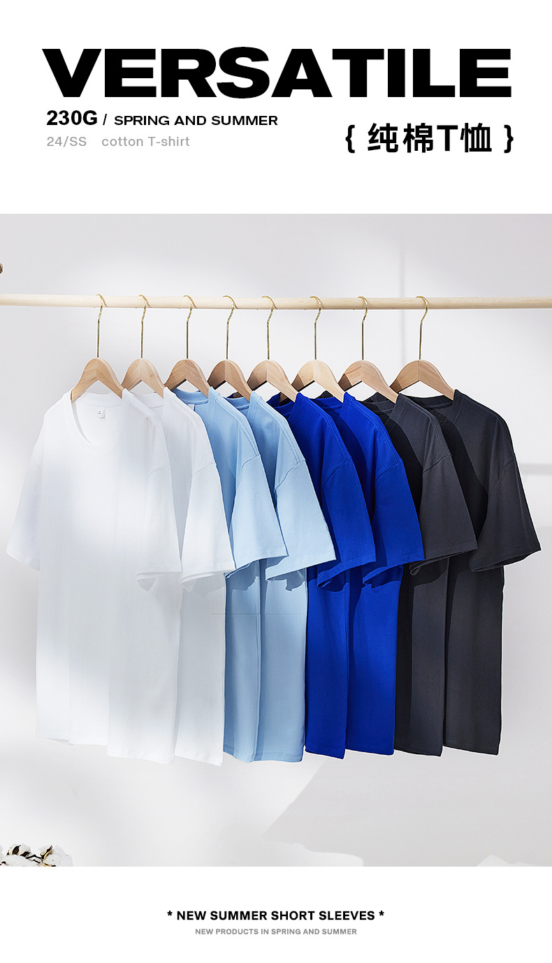 230g 코튼 헤비 티셔츠 남성용 간단한 단색 옷 남성용 캐주얼 짧은 소매 라운드 넥 언더 셔츠 여름스토어 가기