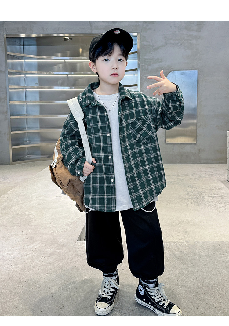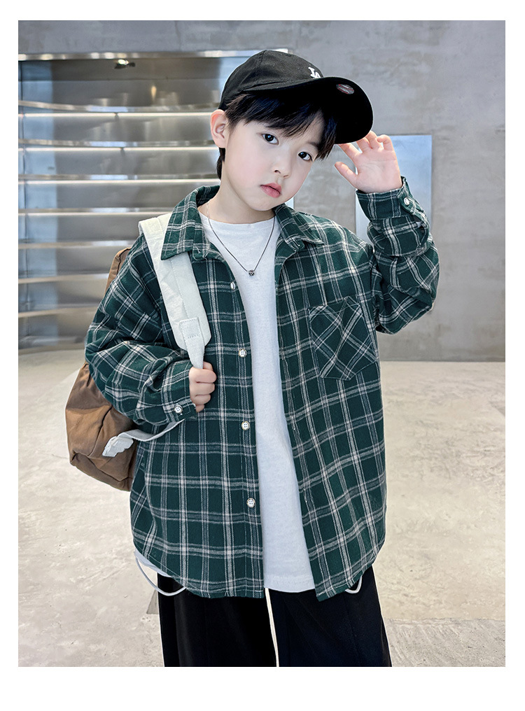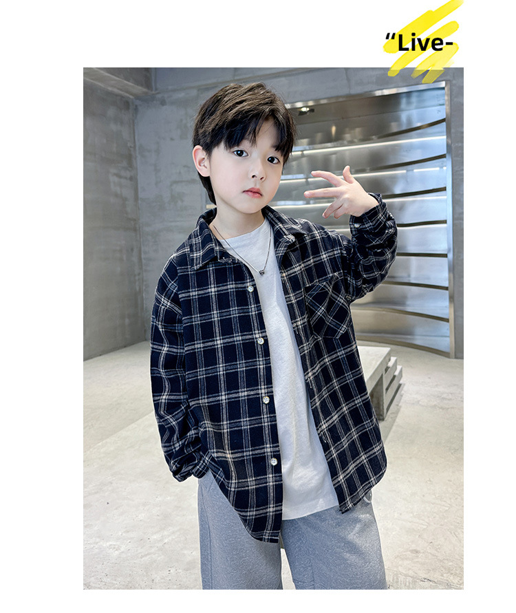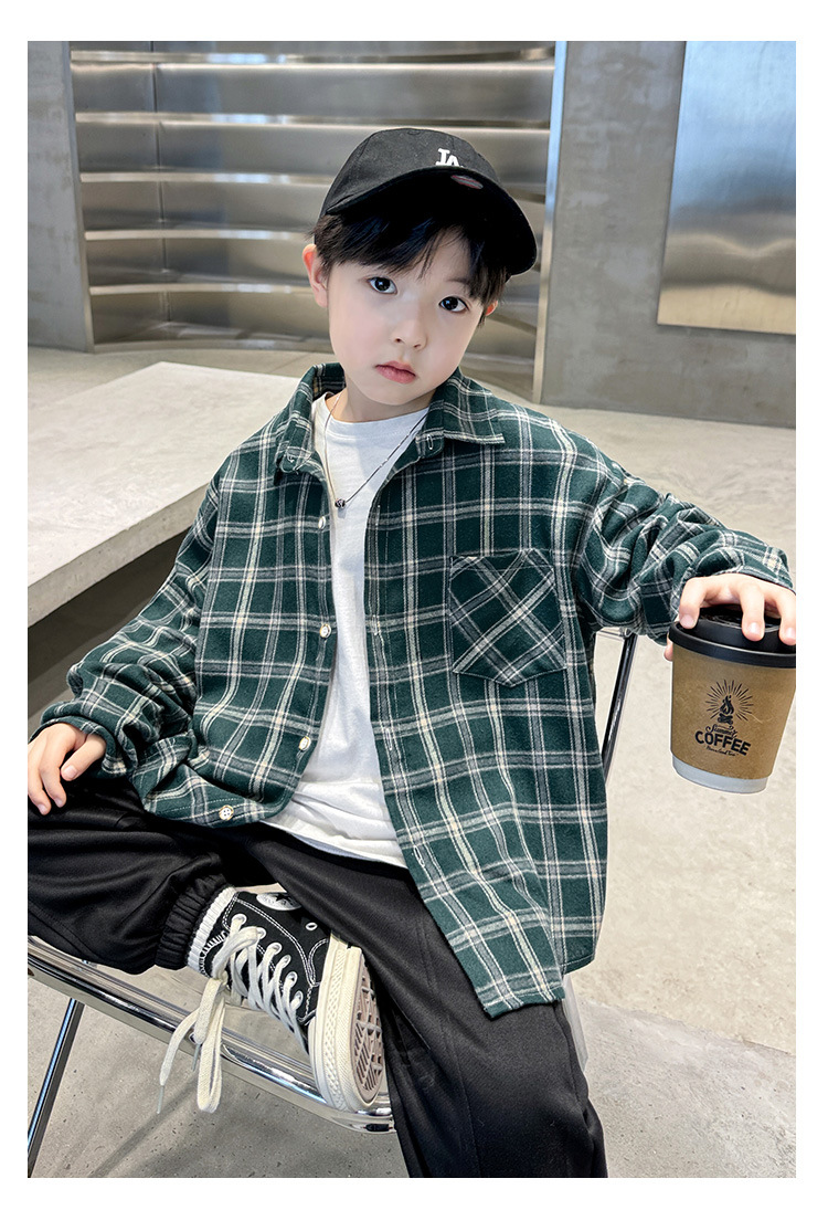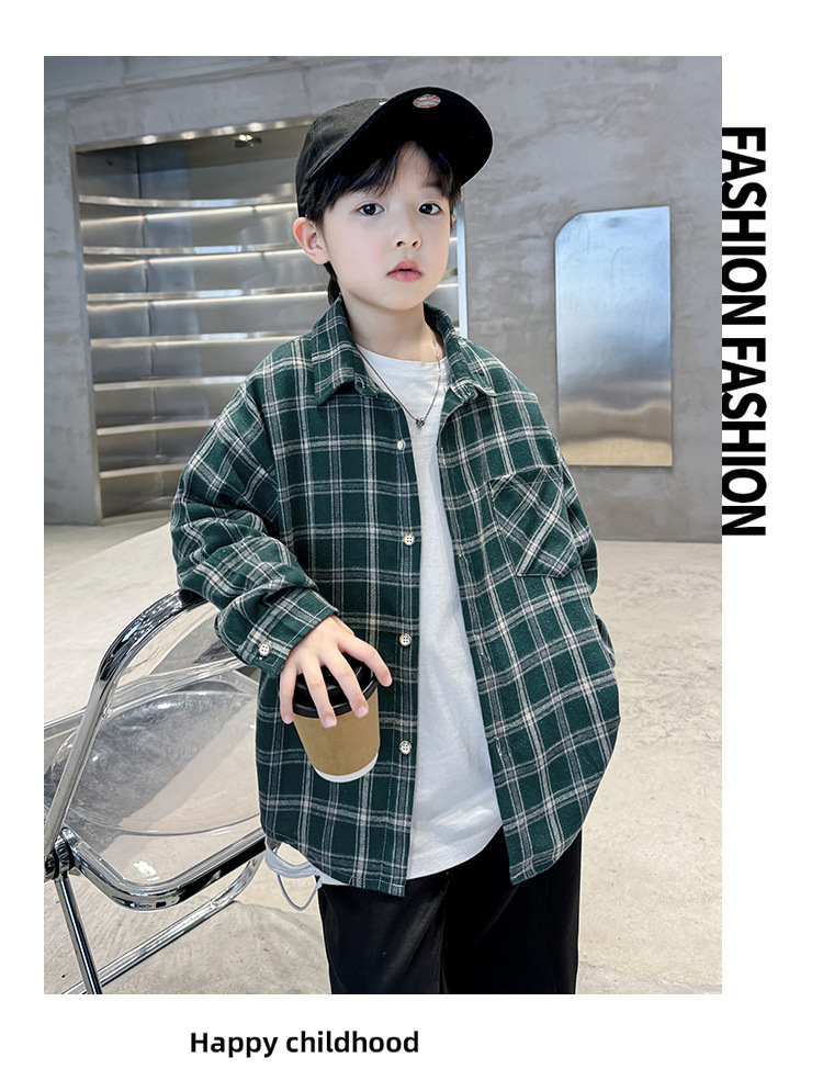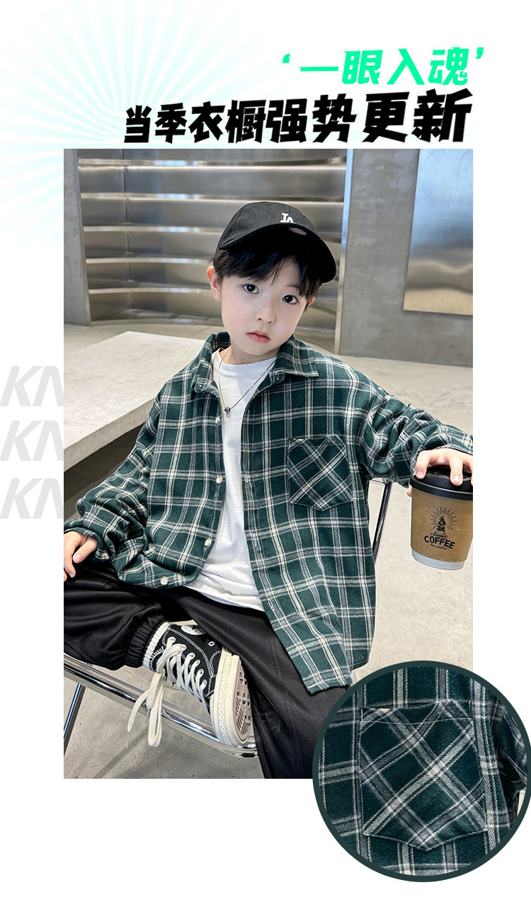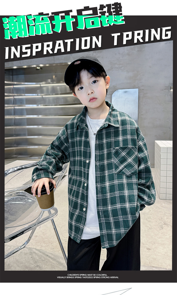 소년의 봄 트렌디 한 멋진 체크 무늬 셔츠 코트 2024 새로운 어린이 세련된 캐주얼 윈드 브레이커 미들 큰 어린이 재킷스토어 가기