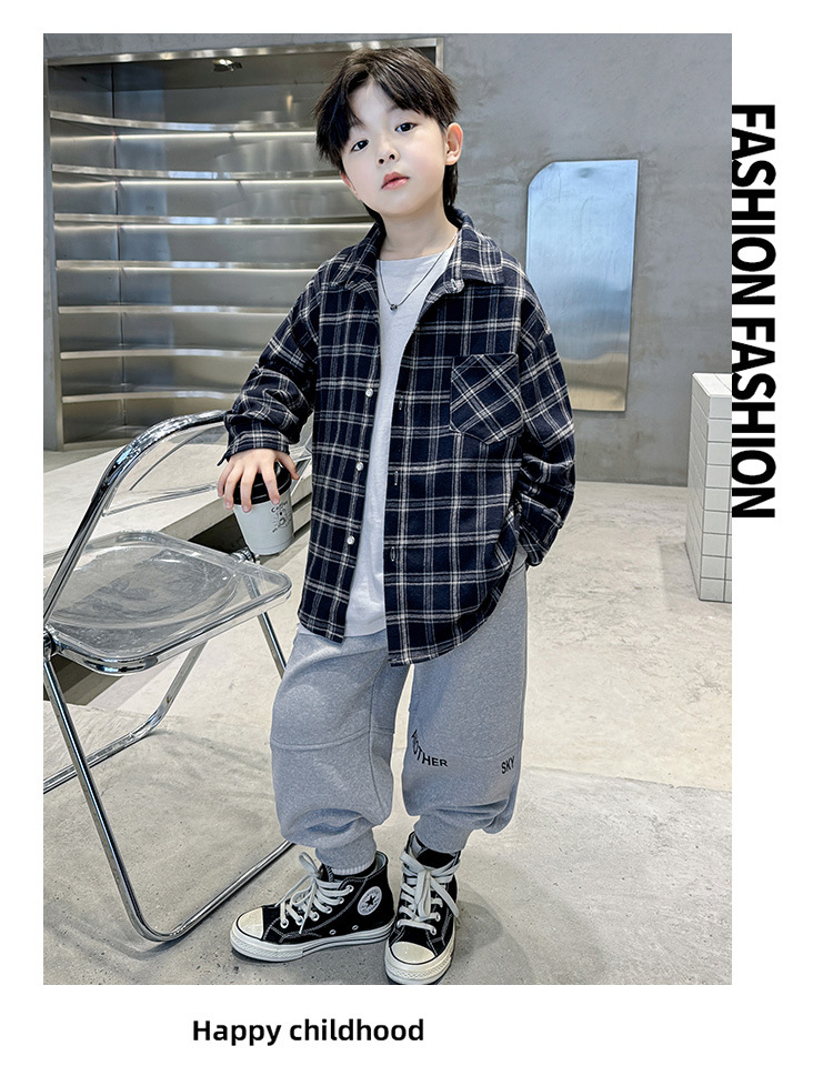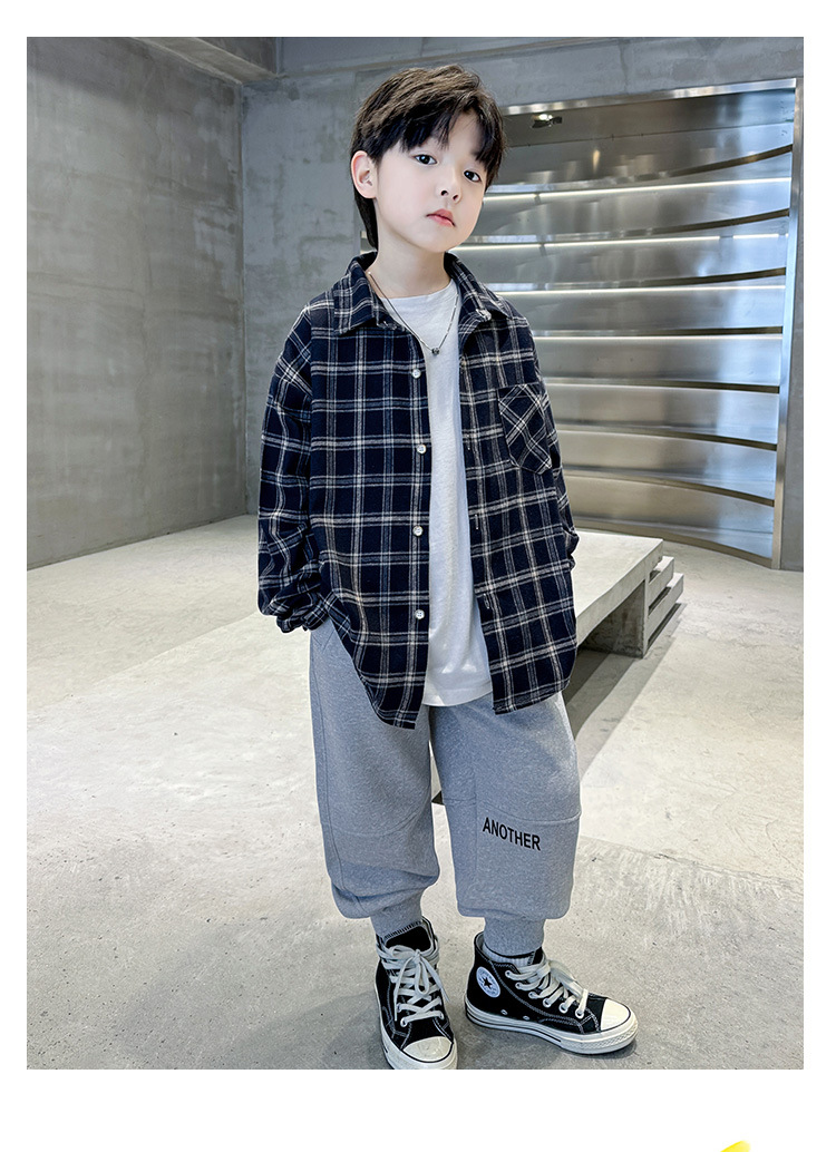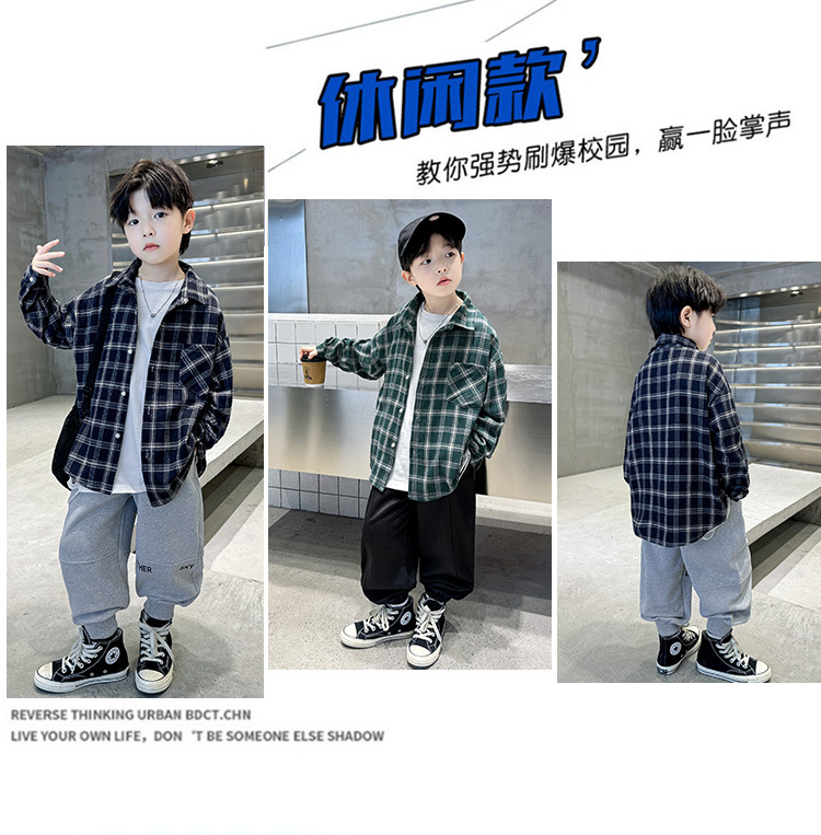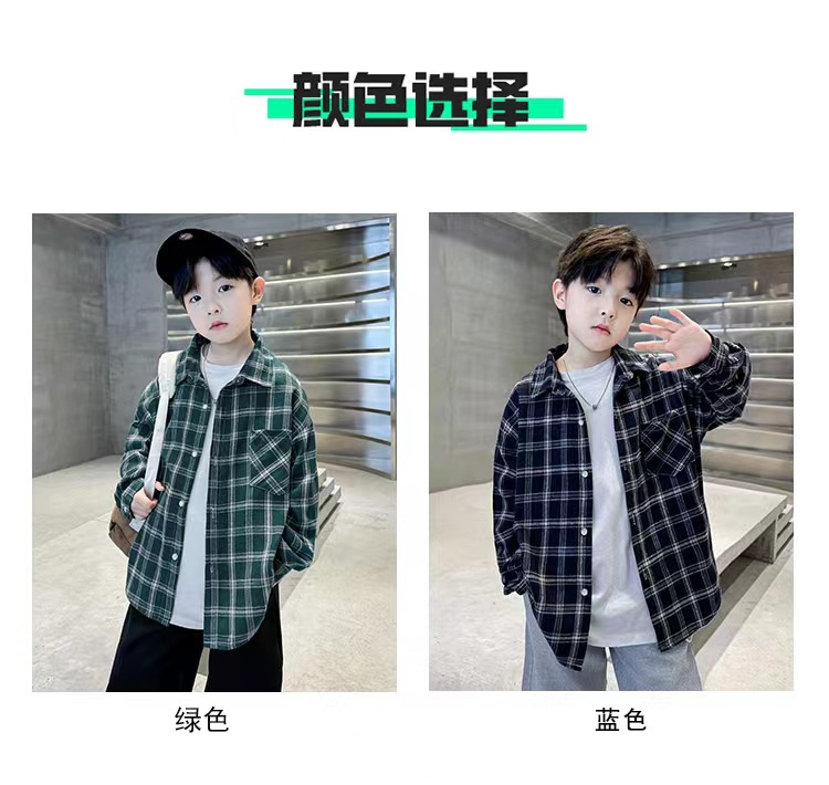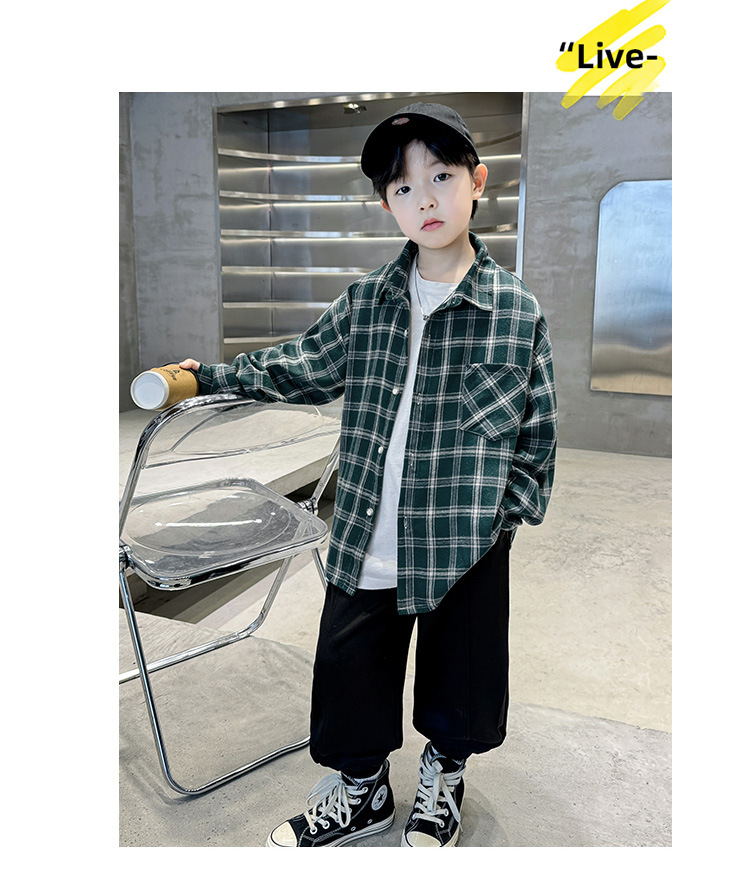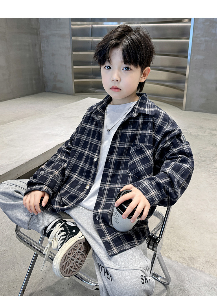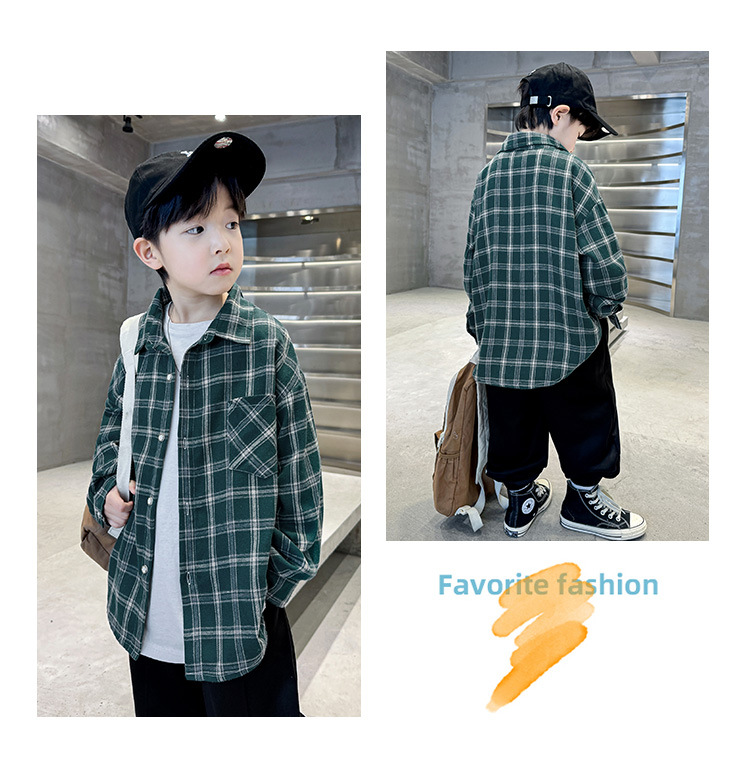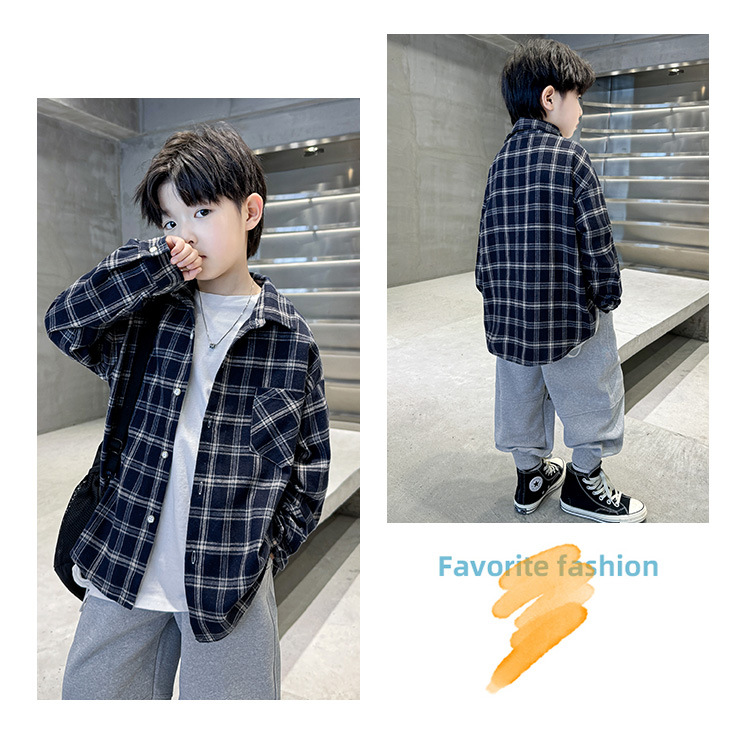 소년의 봄 트렌디 한 멋진 체크 무늬 셔츠 코트 2024 새로운 어린이 세련된 캐주얼 윈드 브레이커 미들 큰 어린이 재킷스토어 가기