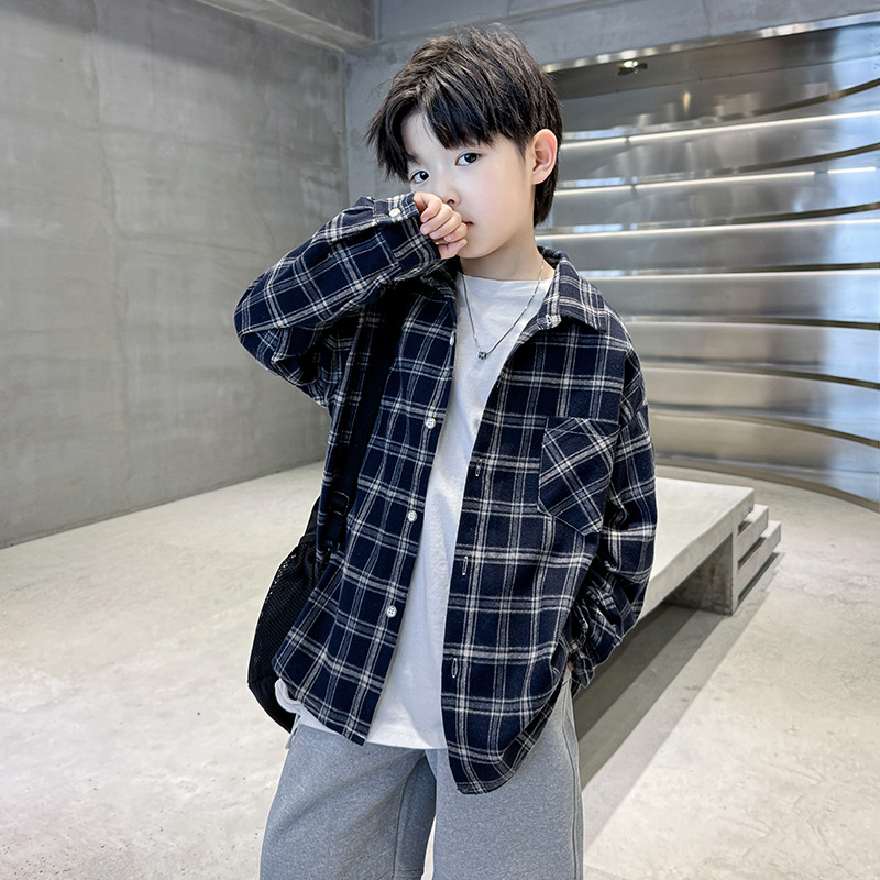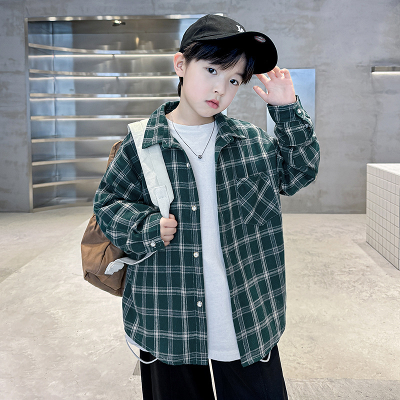 소년의 봄 트렌디 한 멋진 체크 무늬 셔츠 코트 2024 새로운 어린이 세련된 캐주얼 윈드 브레이커 미들 큰 어린이 재킷