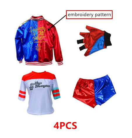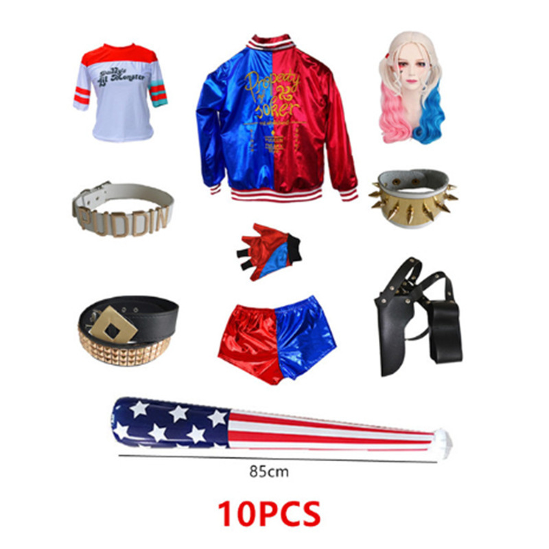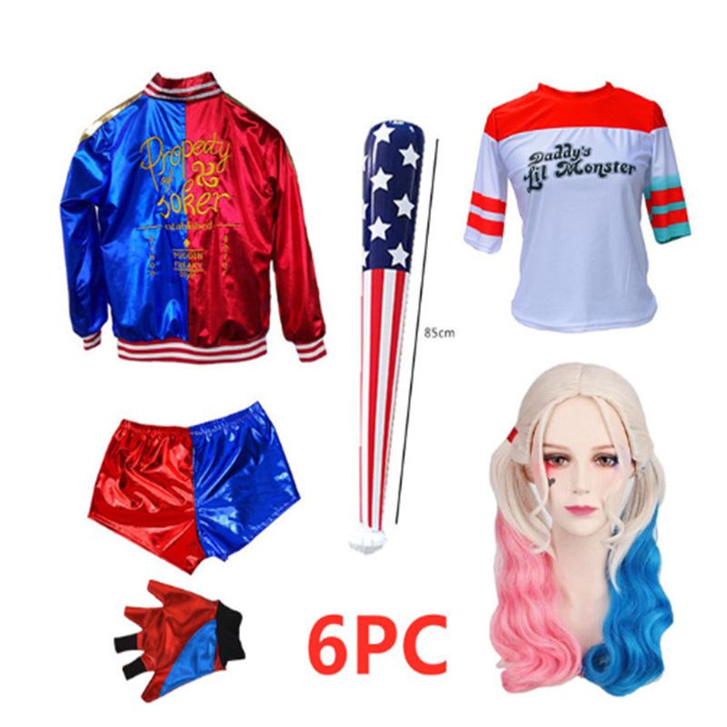 재고 할로윈 자살 분대 헤일리 퀸 광대 여성 코스프레 의상 가짜