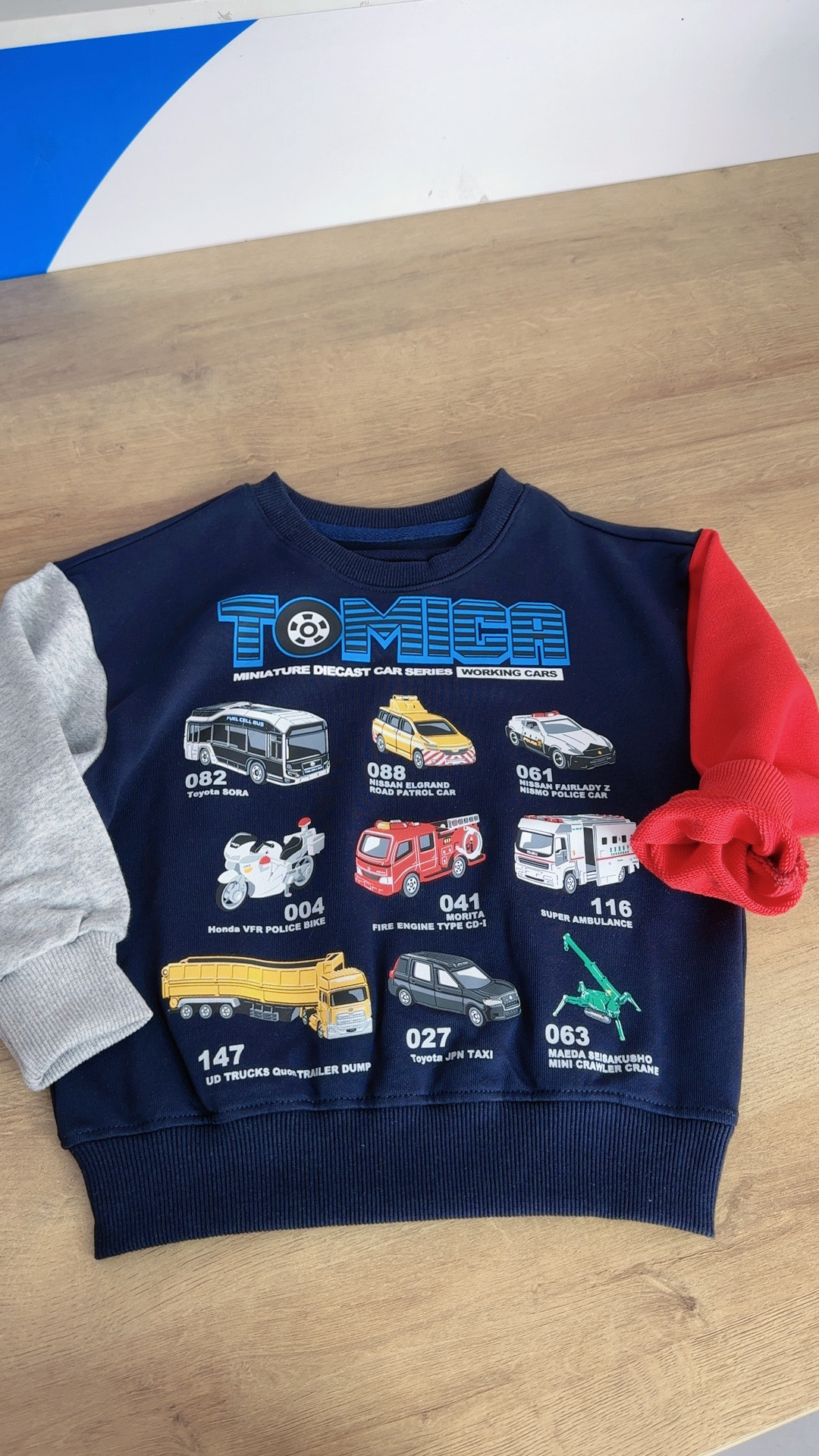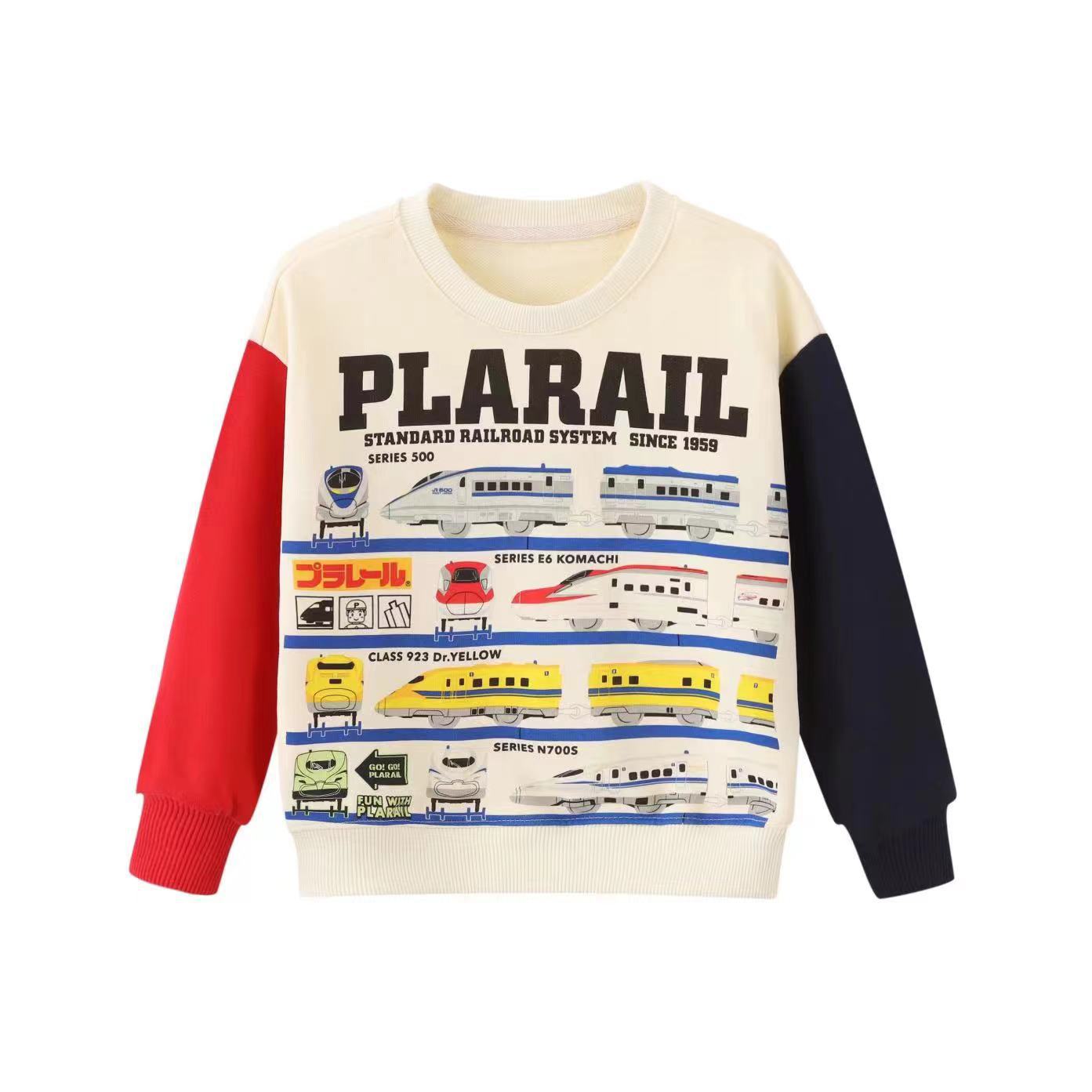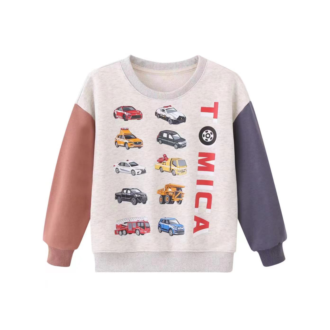 새로운 수출 오리지널 어린이 테리 엔지니어링 차량 소년 스웨터 순수한면 만화 자동차 풀오버 라운드 넥 티셔츠스토어 가기