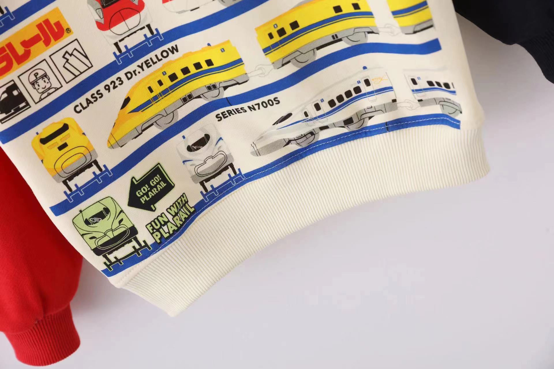 새로운 수출 오리지널 어린이 테리 엔지니어링 차량 소년 스웨터 순수한면 만화 자동차 풀오버 라운드 넥 티셔츠