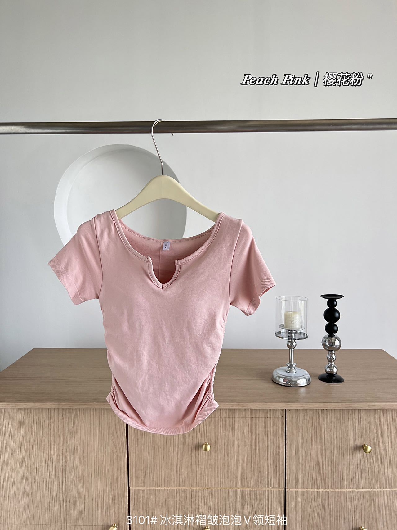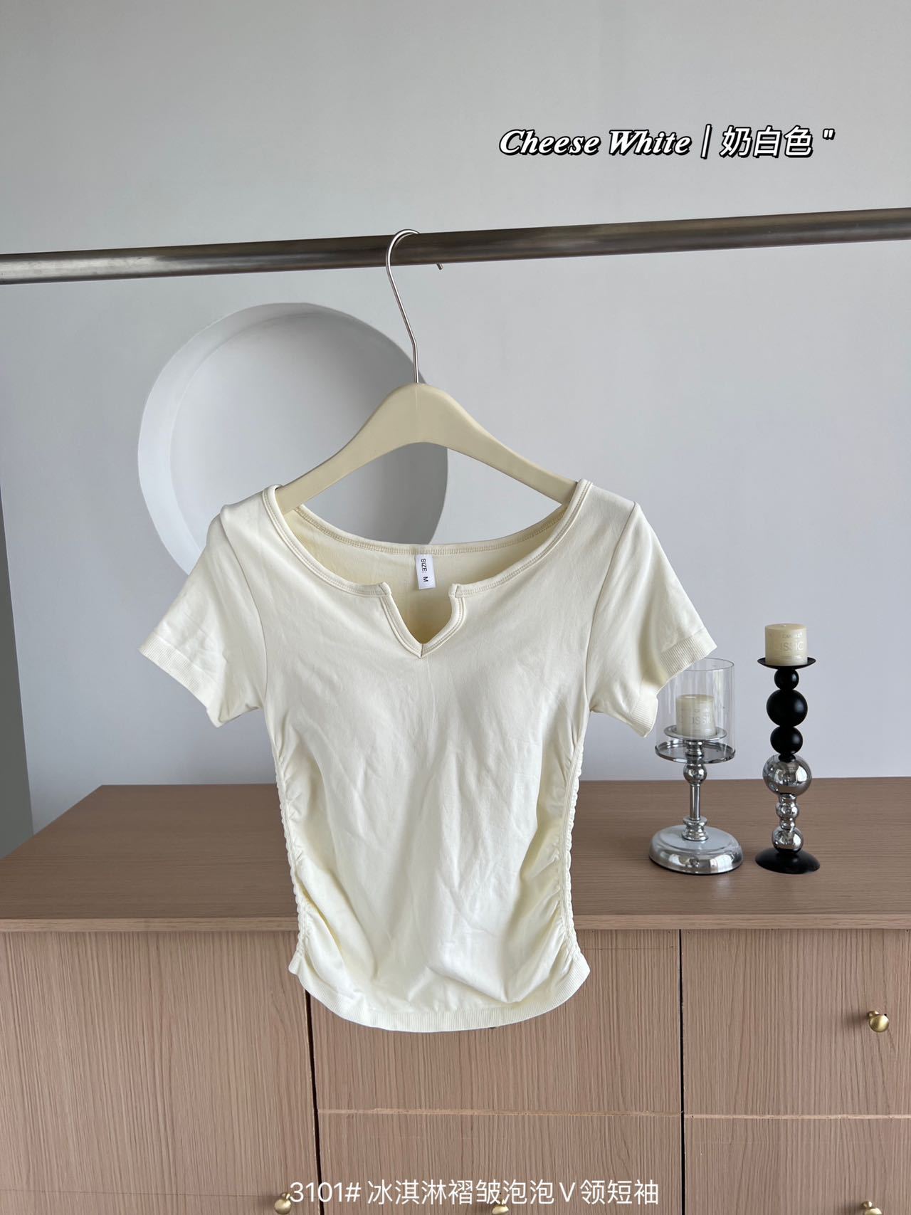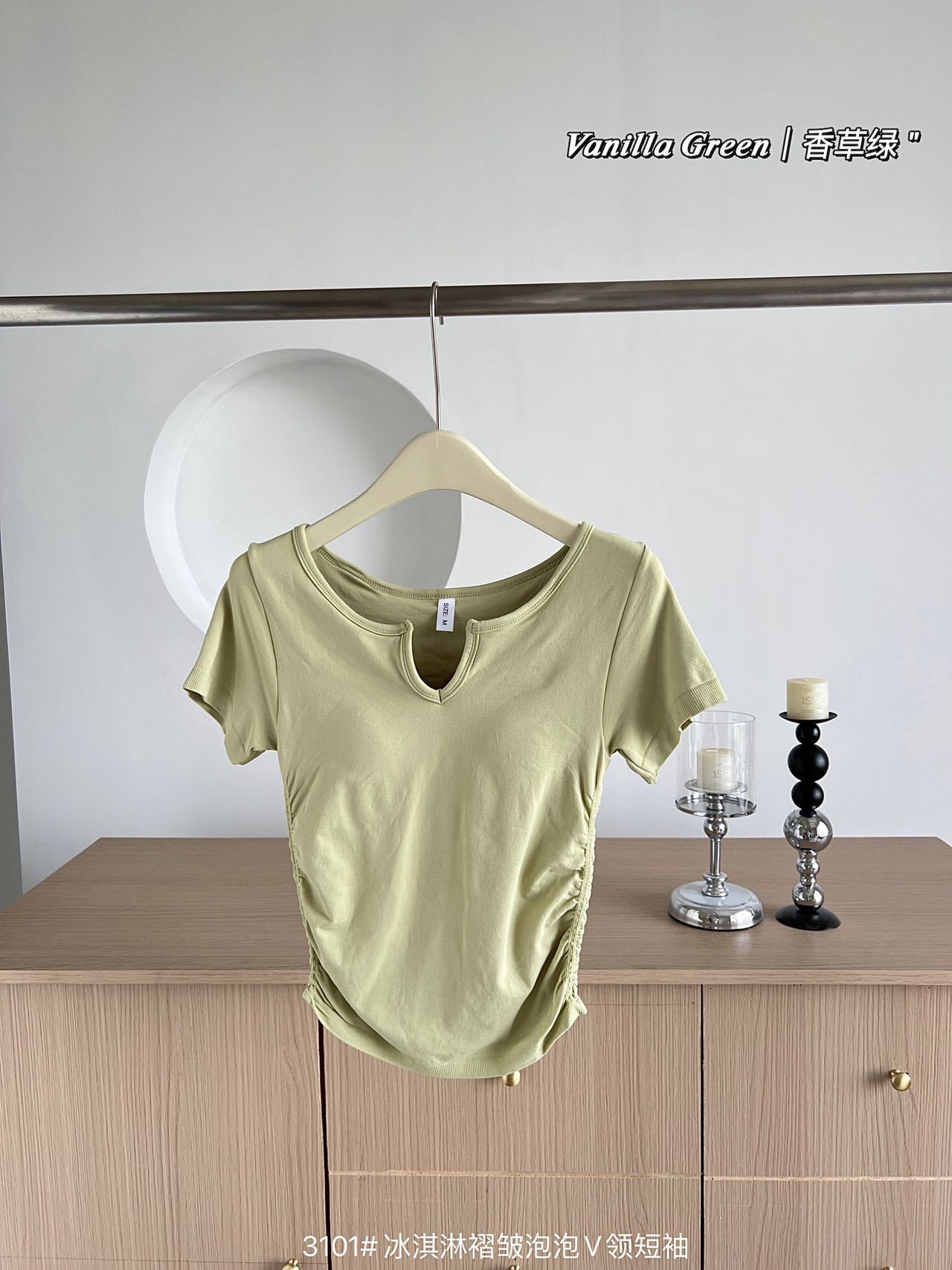 아이스크림 주름 거품 슬리밍 원활한 V 넥 짧은 소매 스포츠 고정 코스터 요가 옷 피트니스 탑스토어 가기
