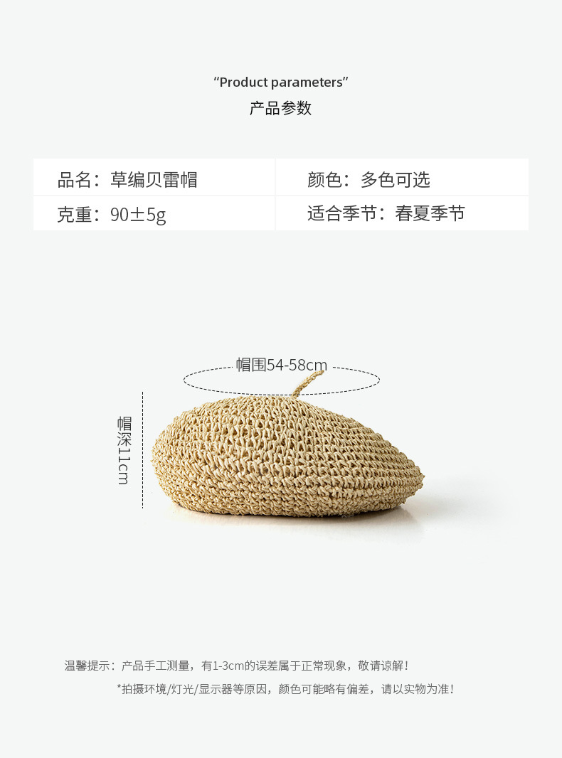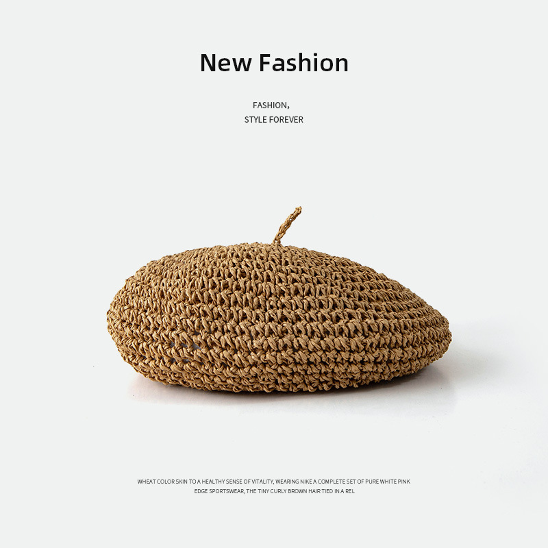 프랑스 복고풍 밀짚 베레모 여성 그물 레드 같은 스타일의 우아한 예술적 화가 모자 통기성 밀짚 모자 여성 여름스토어 가기