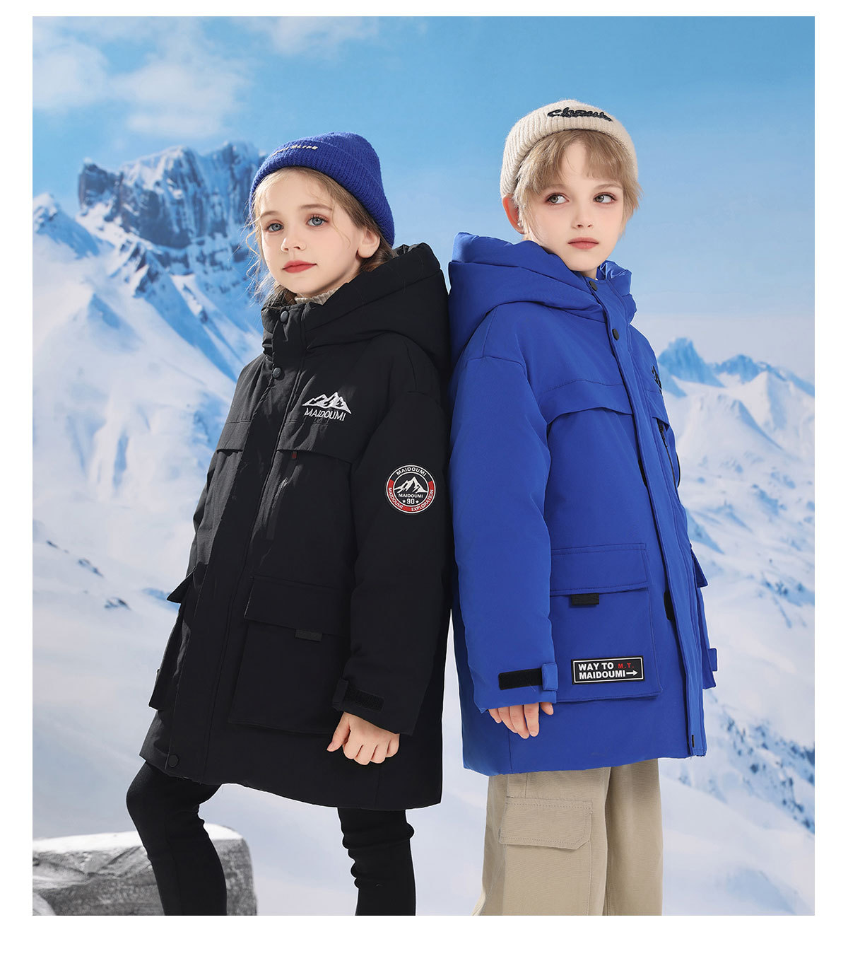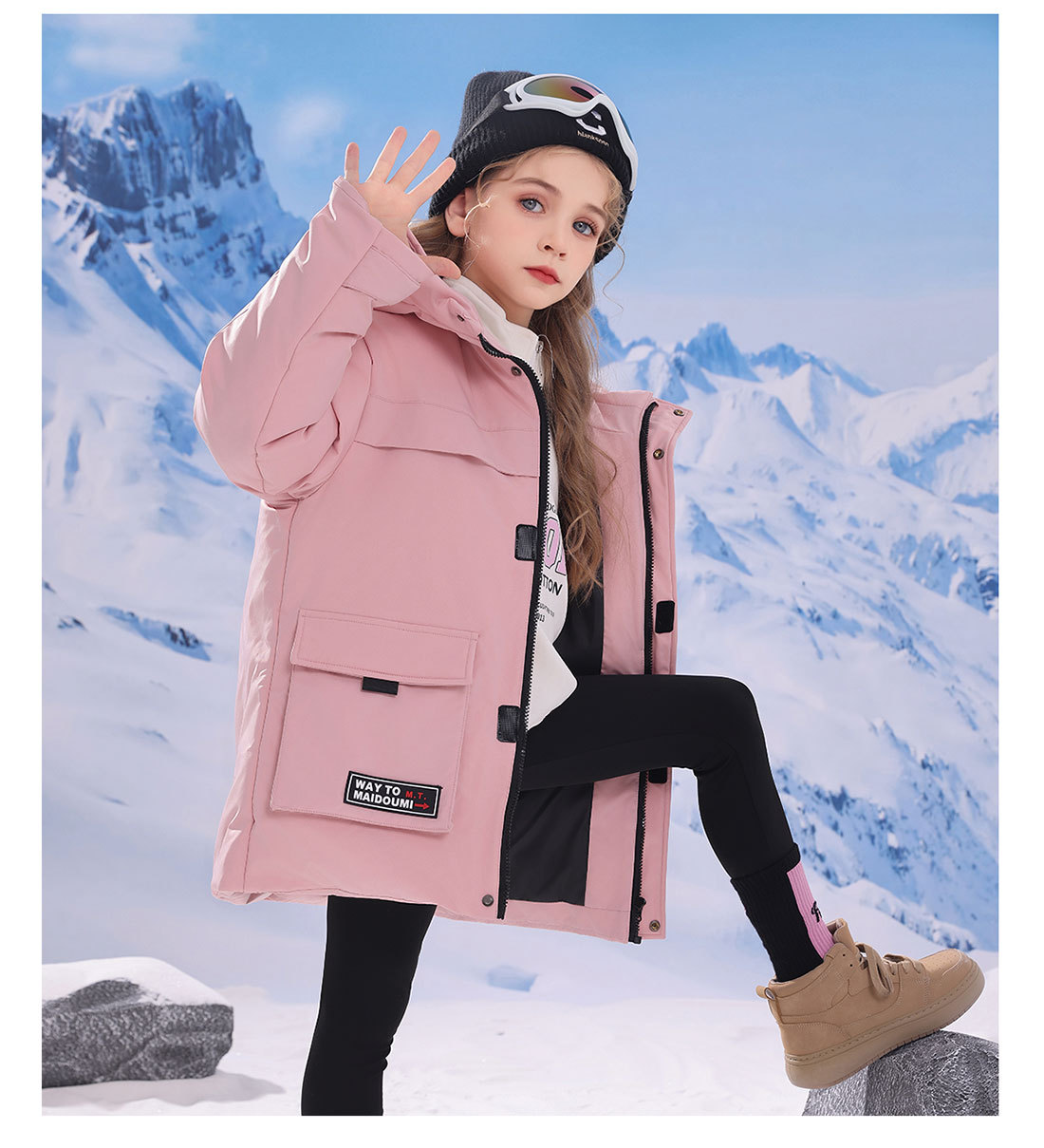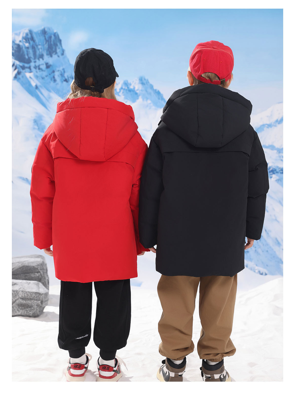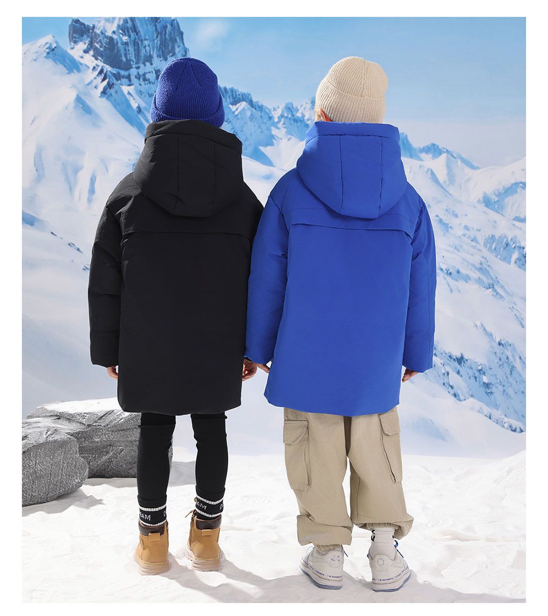 어린이 다운 재킷 중간 길이의 두꺼운 소년 후드 겨울 옷 2024 새로운 서양식 소녀 다운 재킷스토어 가기