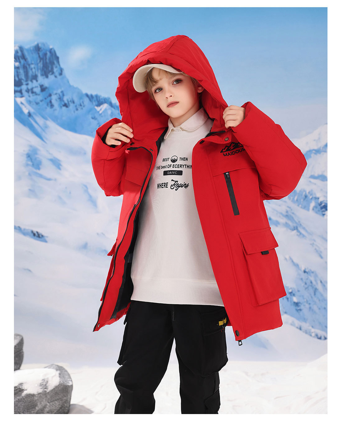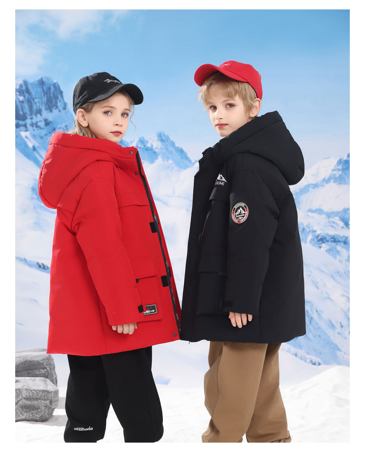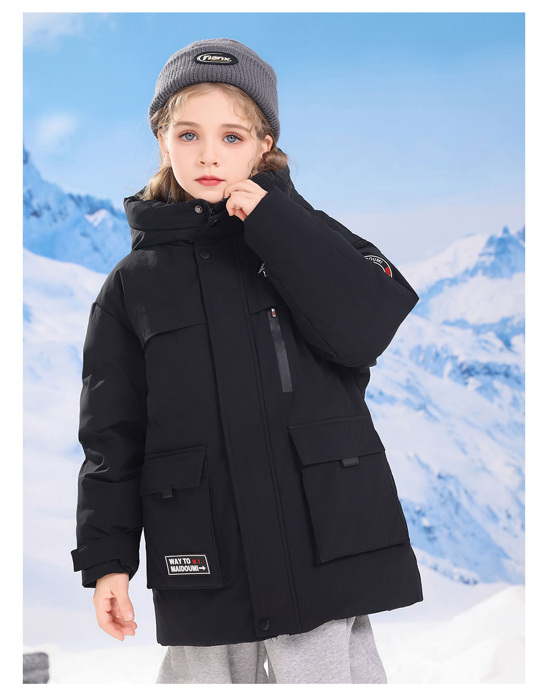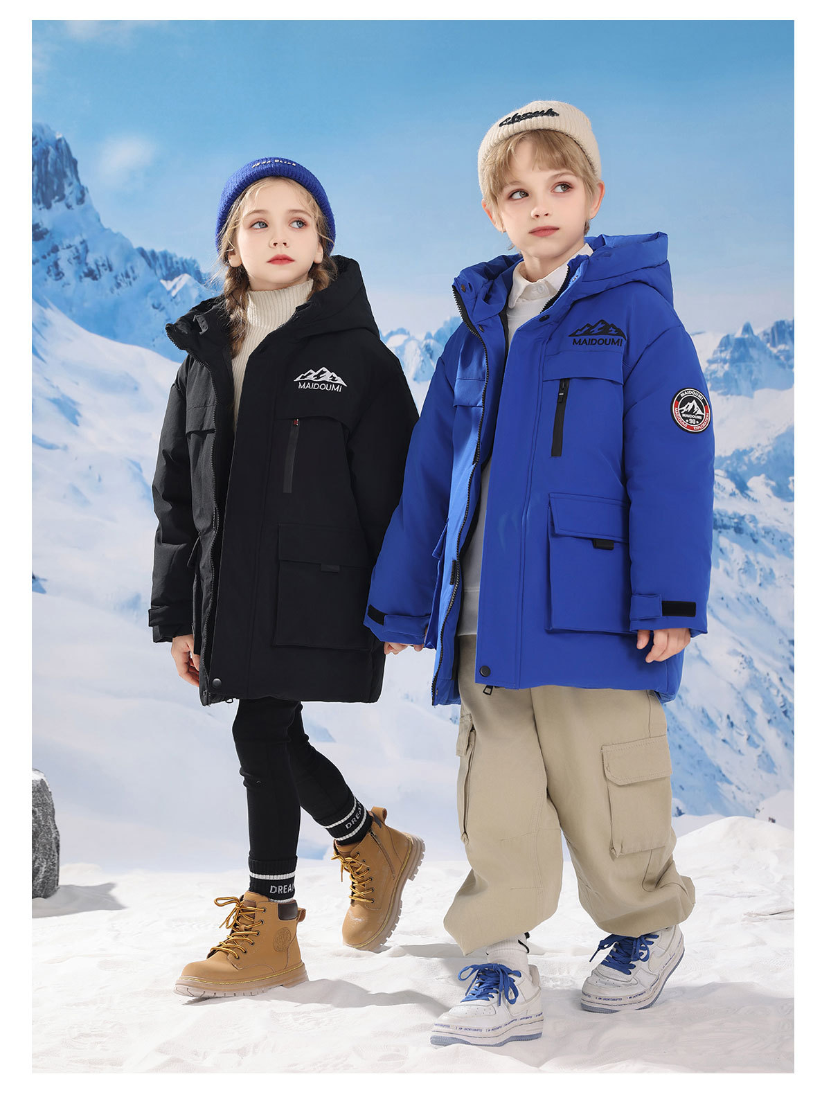 어린이 다운 재킷 중간 길이의 두꺼운 소년 후드 겨울 옷 2024 새로운 서양식 소녀 다운 재킷스토어 가기