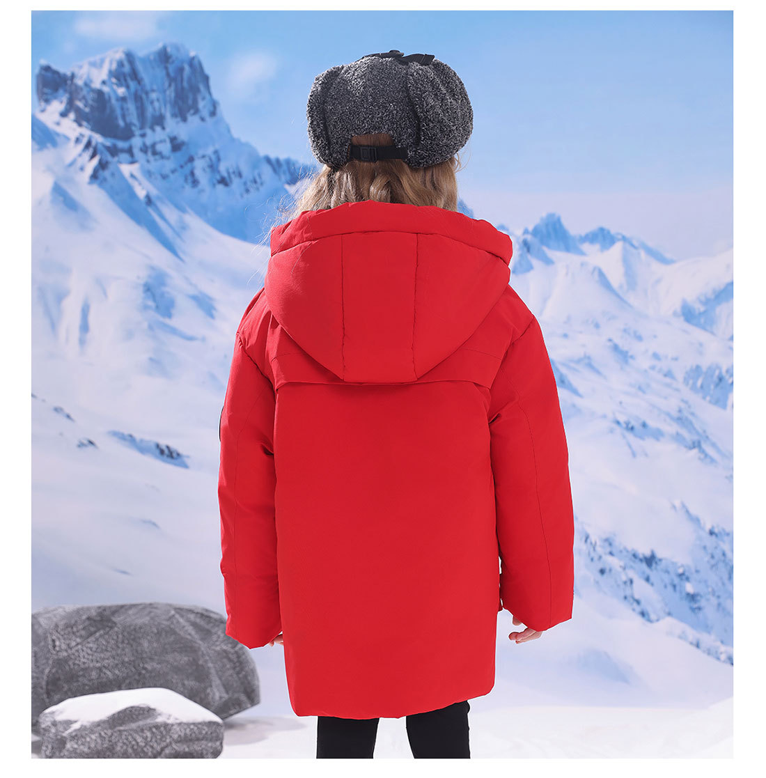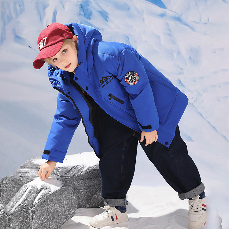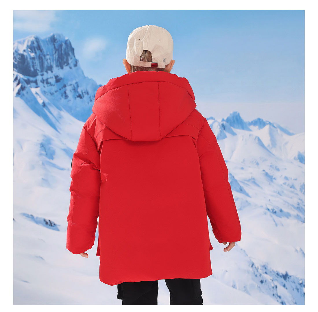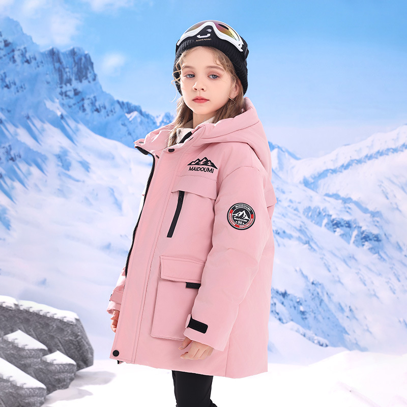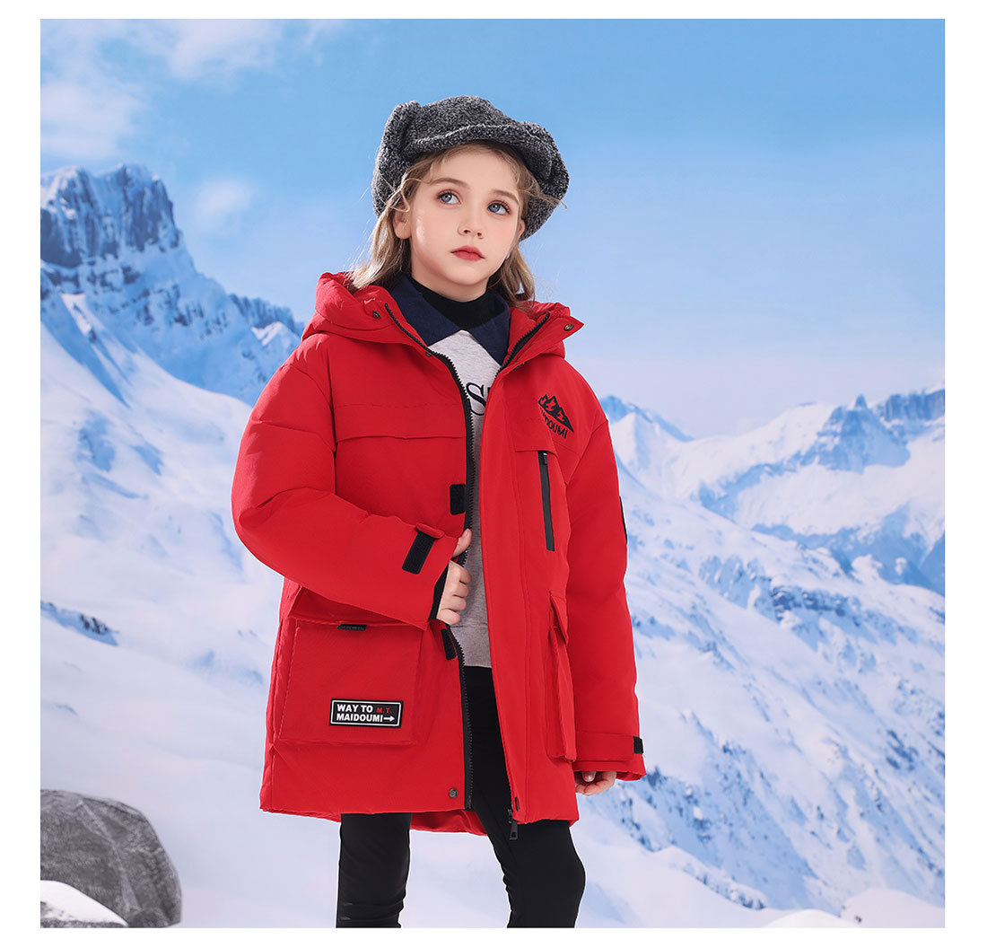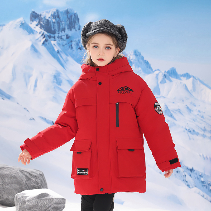 어린이 다운 재킷 중간 길이의 두꺼운 소년 후드 겨울 옷 2024 새로운 서양식 소녀 다운 재킷