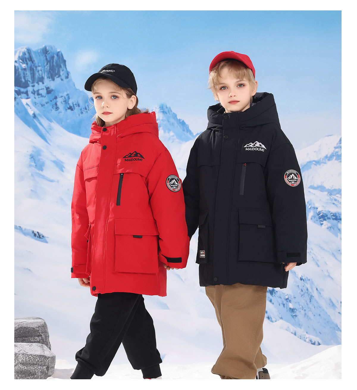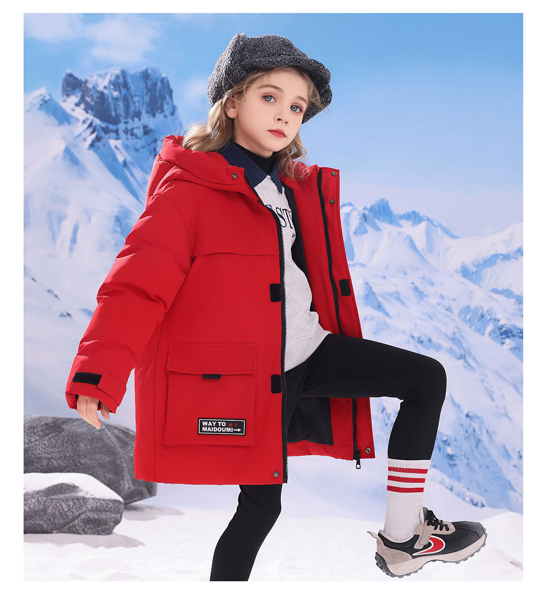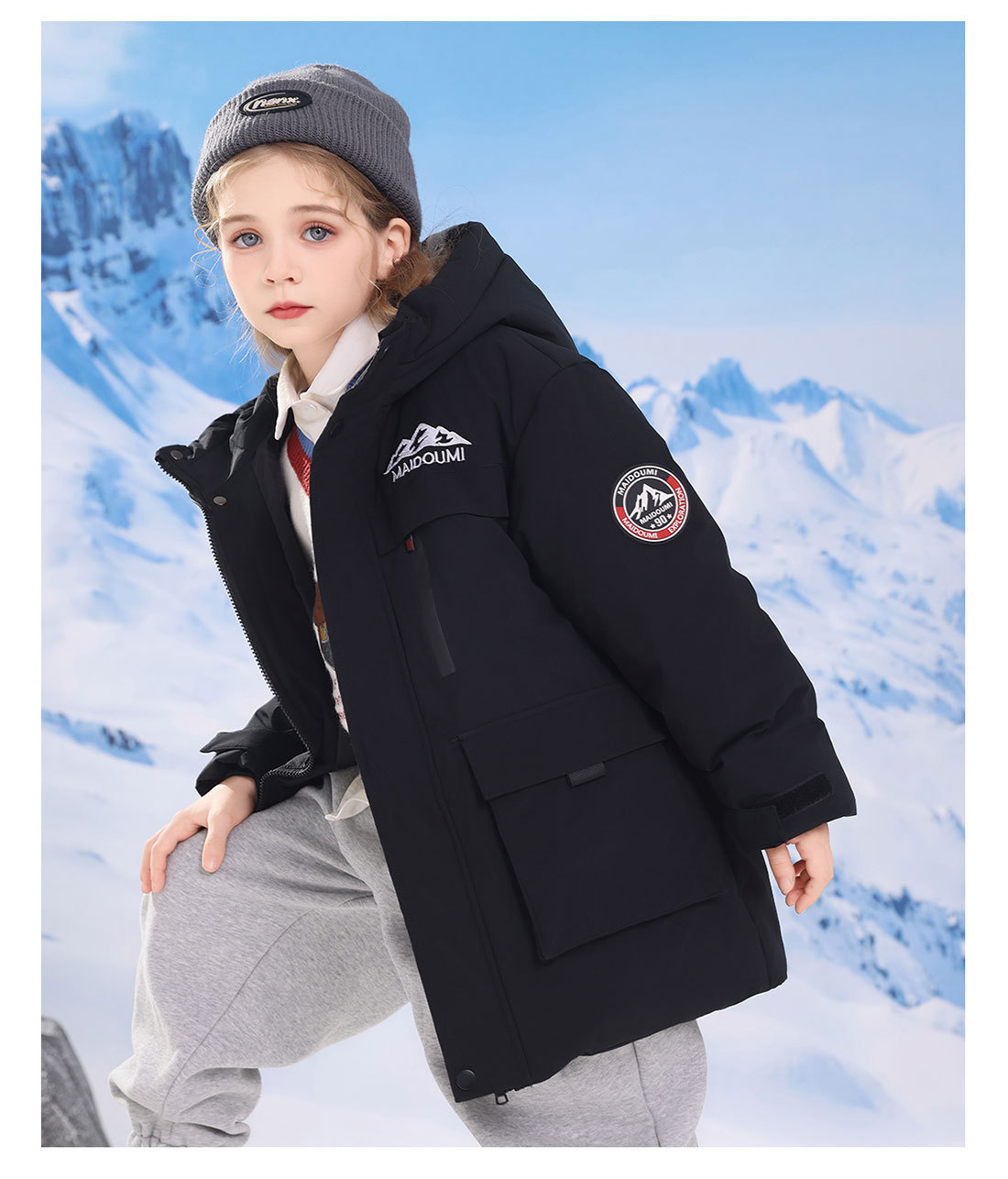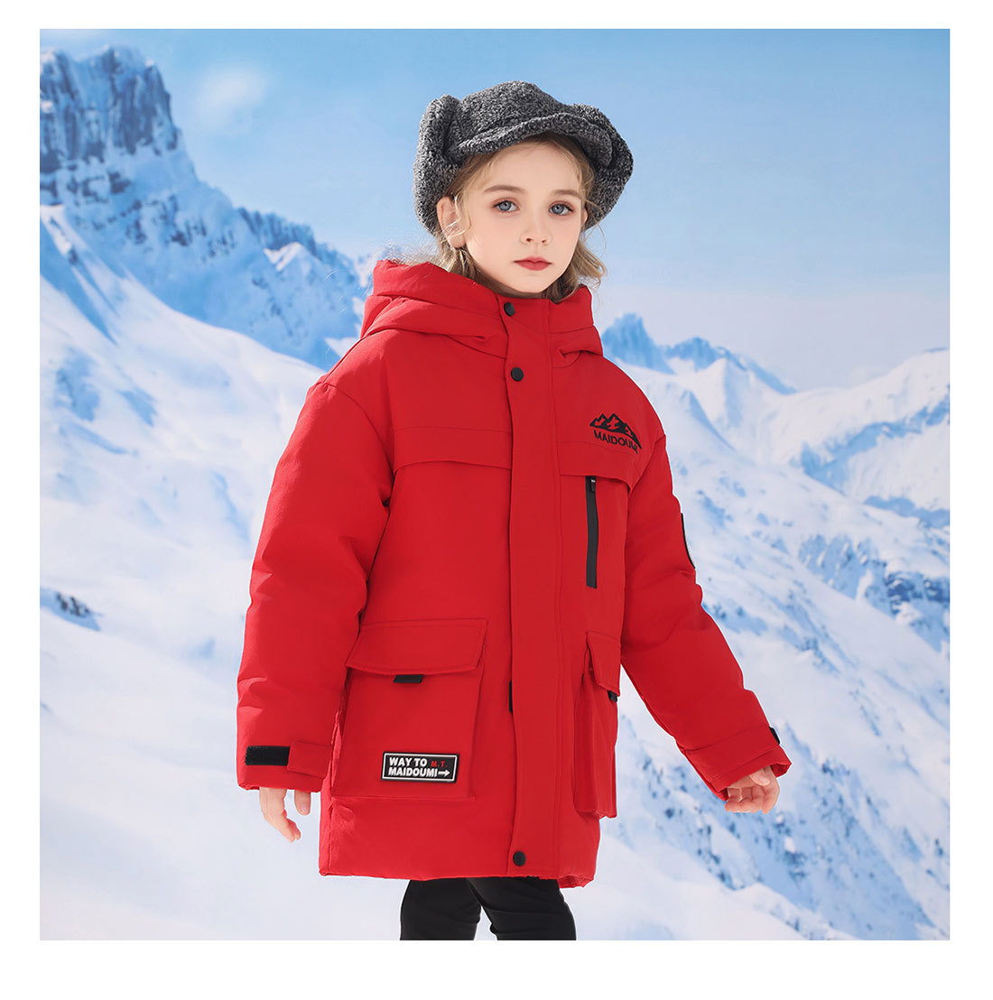 어린이 다운 재킷 중간 길이의 두꺼운 소년 후드 겨울 옷 2024 새로운 서양식 소녀 다운 재킷