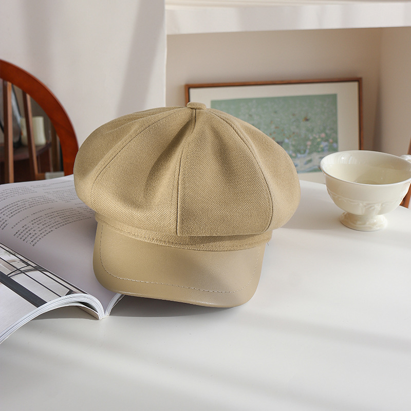 한국식 모직 베레모 여성의 봄과 가을 큰 머리 둘레 얼굴 모양의 오리 혀 팔각형 모자 예술적 복고풍 뉴스 보이 모자