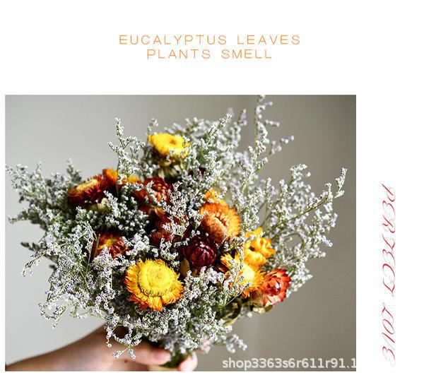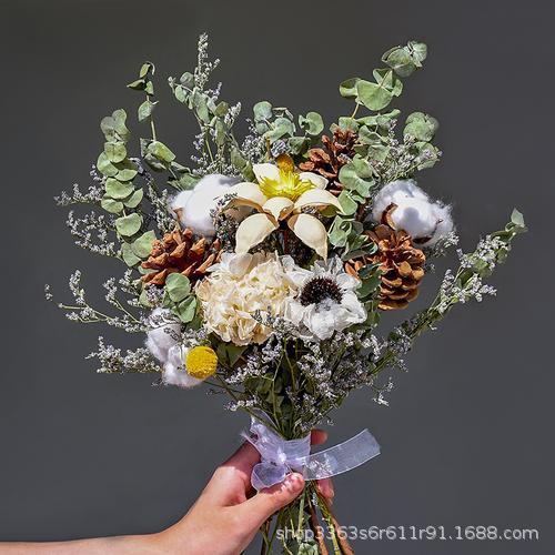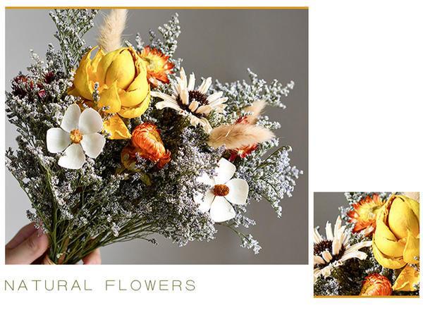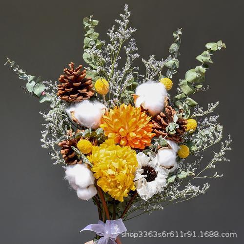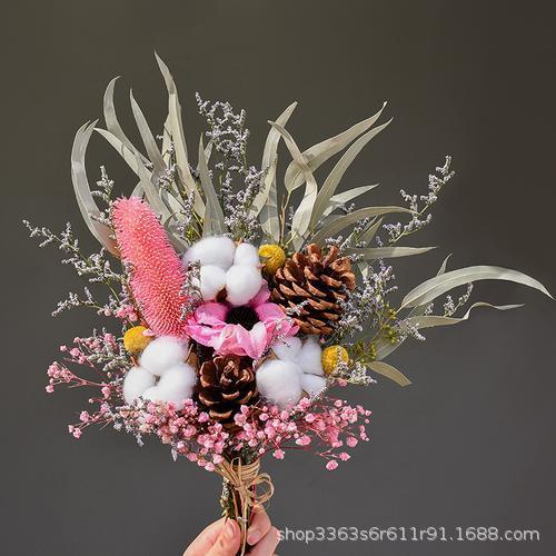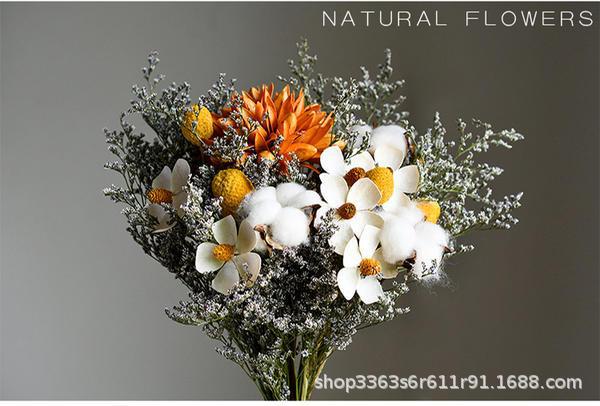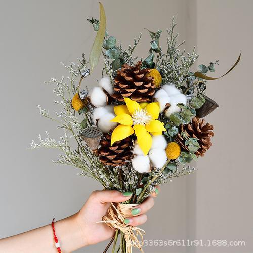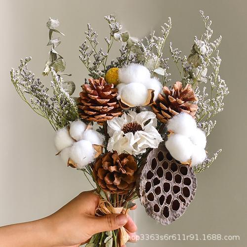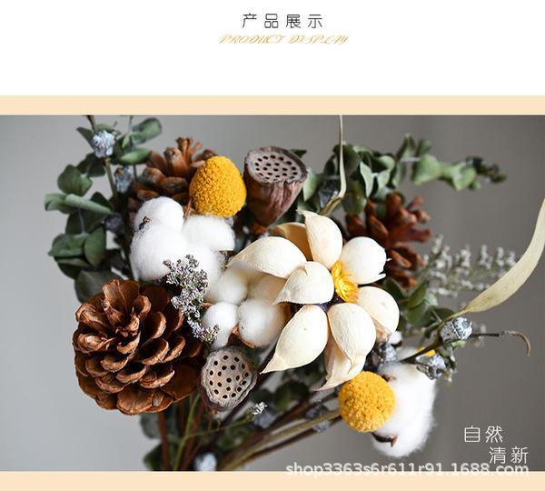 진짜 꽃, 드라이플라워, 영구꽃 장식품, 면화, 심플하고 신선한 스타일, 유칼립투스 잎, 데이지, 솔방울, 거실 및 침실 꽃꽂이