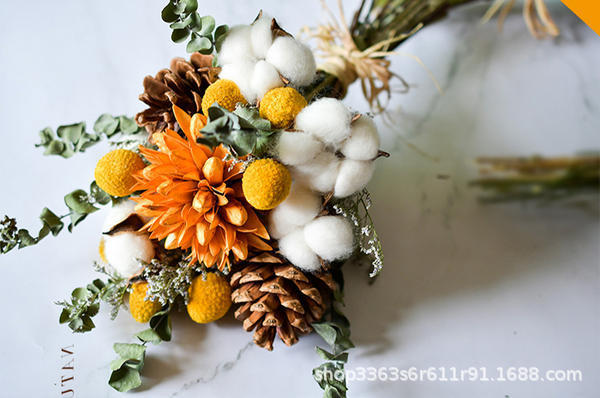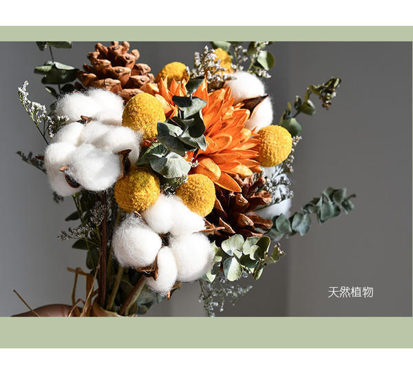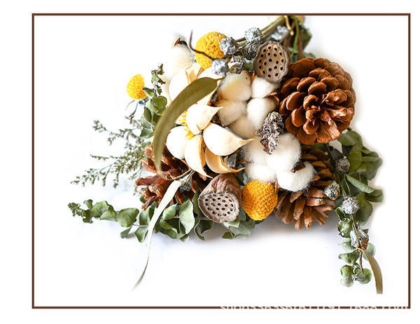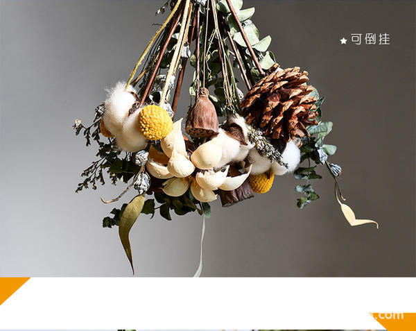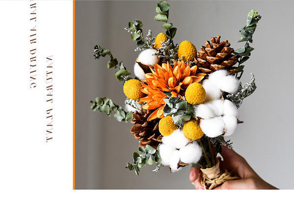 • 풍부한 꽃 + 솔방울 + 면 꽃다발