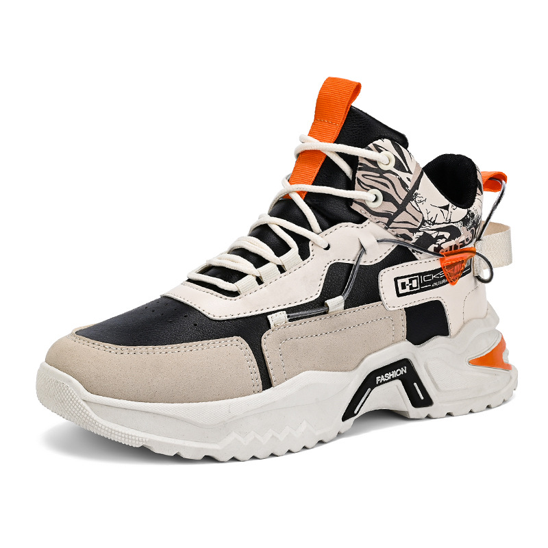 2024 봄과 가을 새로운 가죽 달리기 플랫폼 중반 종아리 아빠 신발, 트렌디 한 스포츠 캐주얼 신발 트렌디 한 신발 남성 신발