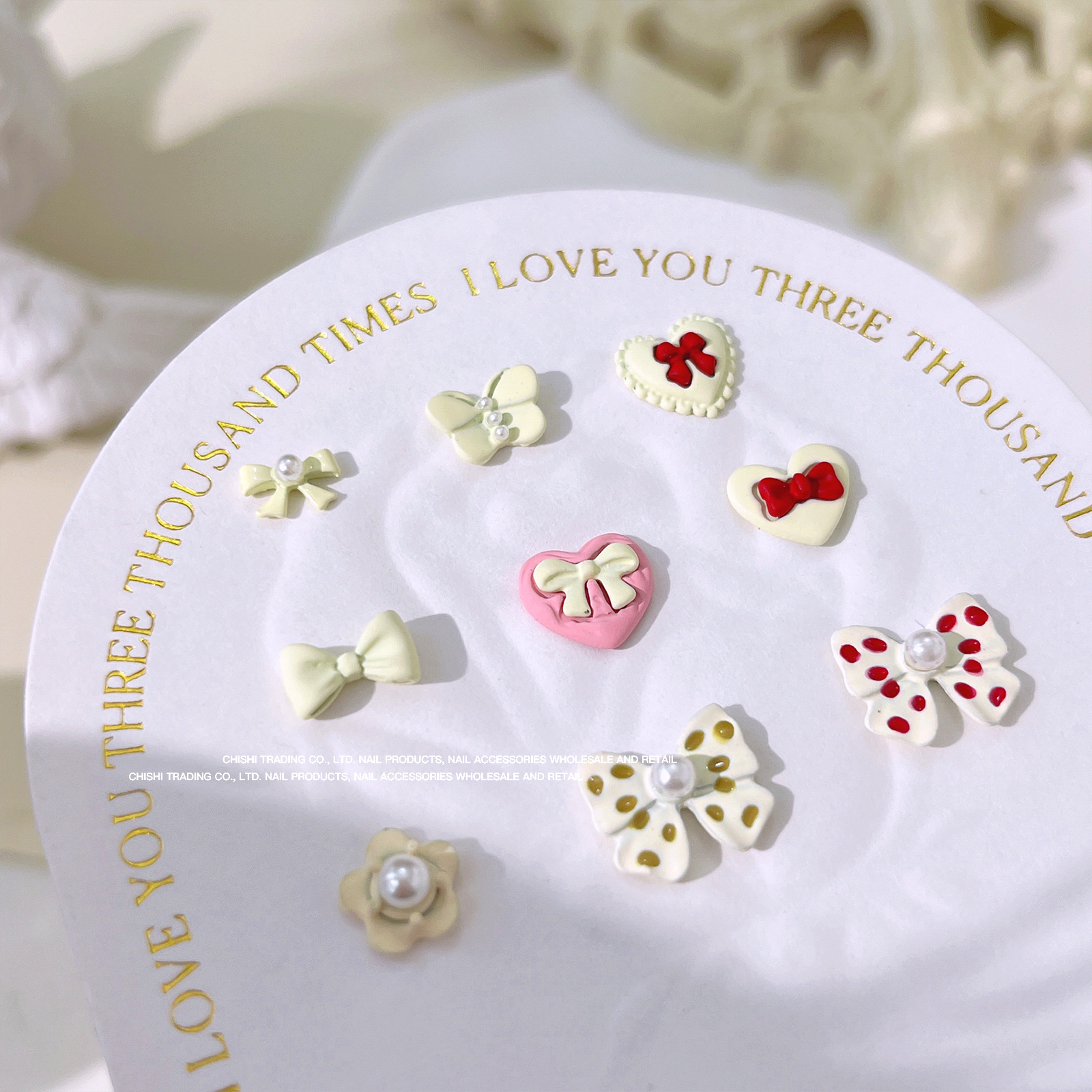 새로운 우유 후후 사랑 활 네일 보석 폴카 도트 활 사랑 진주 꽃 네일 다이아몬드 도매