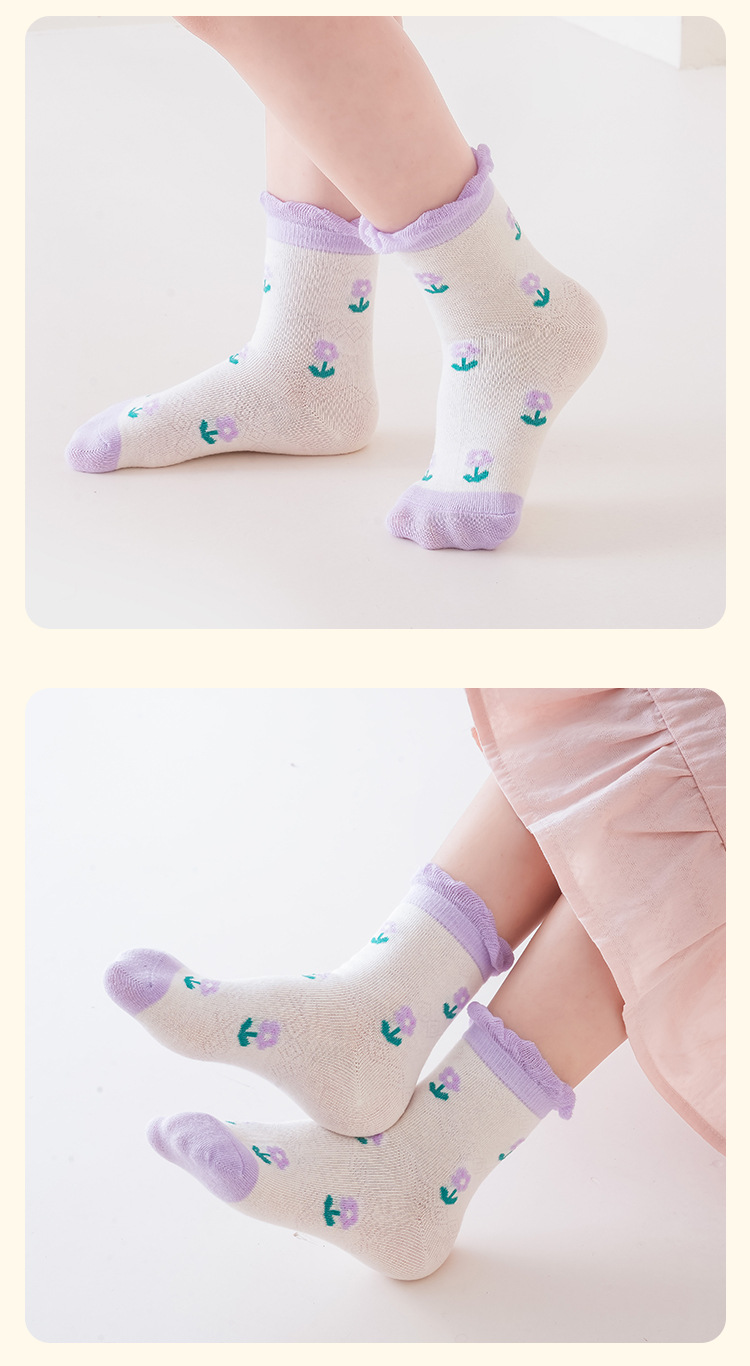 어린이 양말 봄과 여름 새로운 얇은면 소녀 레이스 양말 통기성 남성과 여성 아기 중간 송아지 양말 1-12 세
