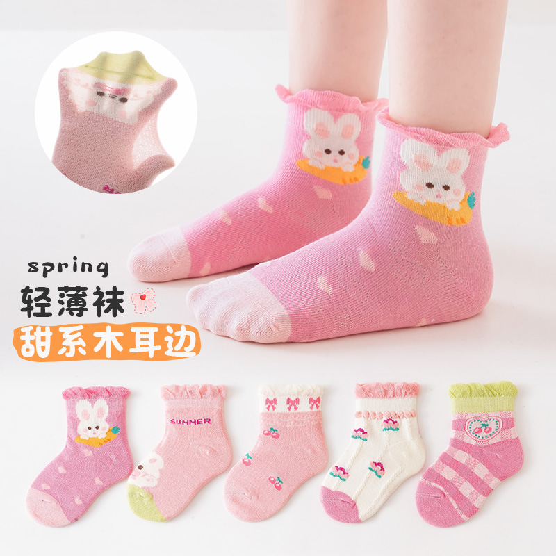 어린이 양말 봄과 여름 새로운 얇은면 소녀 레이스 양말 통기성 남성과 여성 아기 중간 송아지 양말 1-12 세스토어 가기