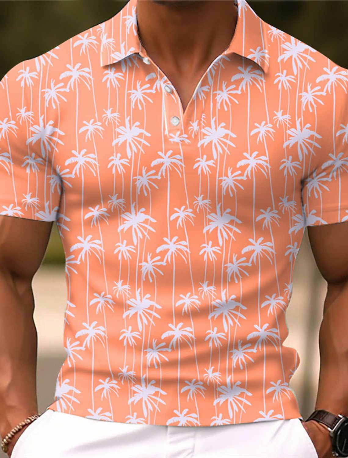 남자 폴로 셔츠 골프 셔츠 코코넛 나무 그래픽 인쇄 옷깃 야외 거리 짧은 소매 버튼 인쇄 의류