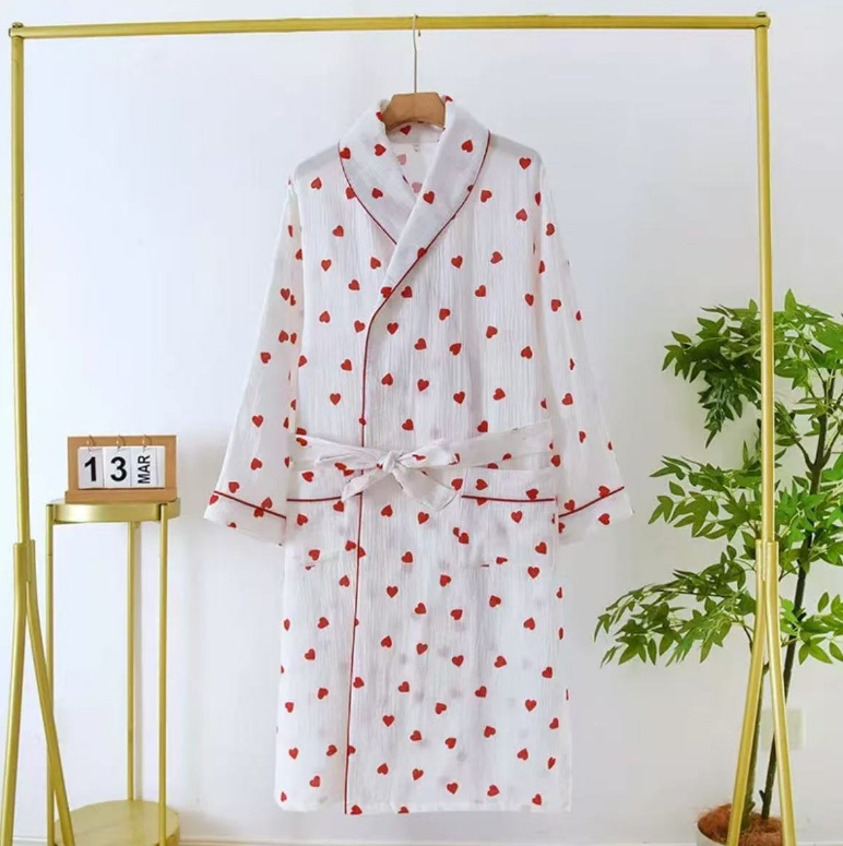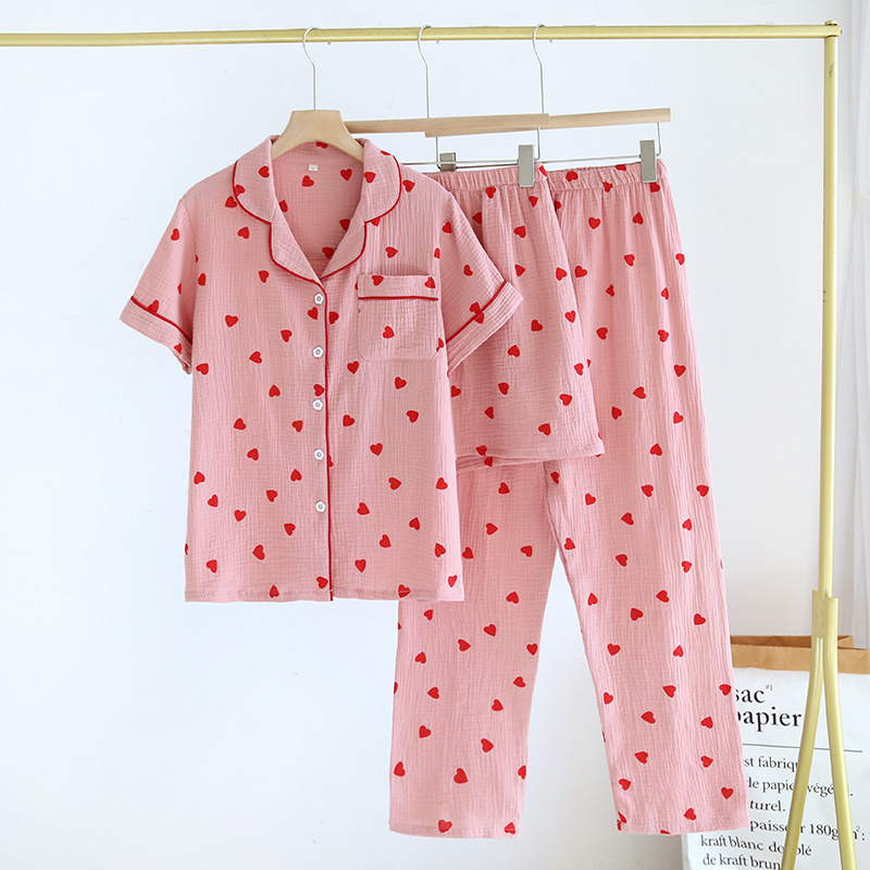 새 봄 여름 가을 면사 여성 잠옷 옷깃 귀여운 작은 복숭아 심장 긴 소매 바지 가정복 세트스토어 가기