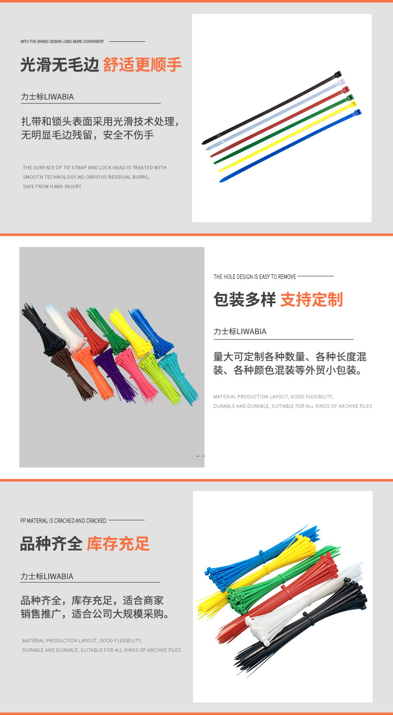 다채로운 케이블 타이 빨간색 녹색 노란색 파란색 버클 조임 로프 바인딩 케이블 타이 플라스틱 자동 잠금 나일론 케이블 타이