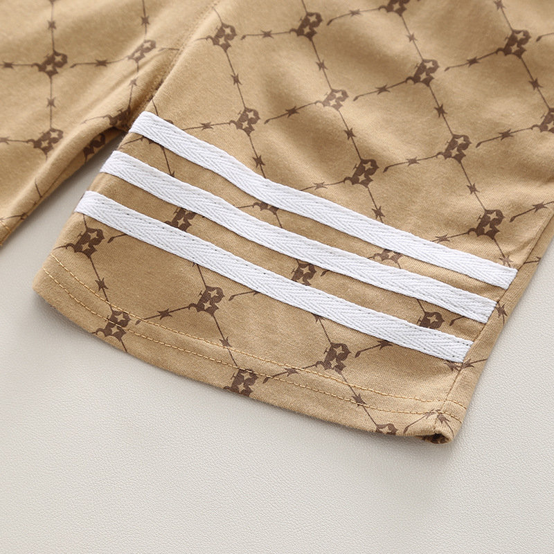 2024 여름 새 소년의 인쇄 된 편지 둥근 목 짧은 소매 세트 남학생 캐주얼 반바지 투피스 세트