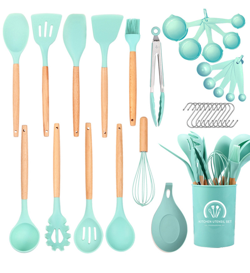 국경 간 재고 33 조각 실리콘 요리 주방 용품 세트 내열성 주방 가제트 비 스틱 팬 스푼 삽 식기 세트