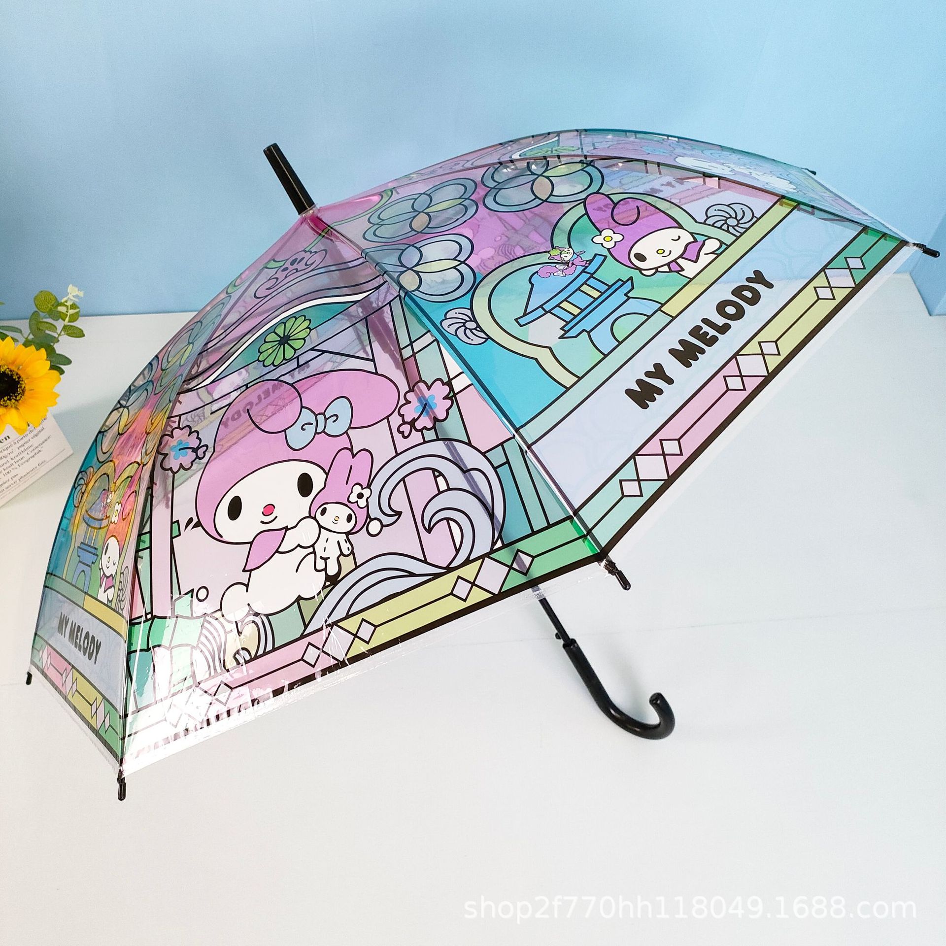 자동 두 배 큰 만화 투명 우산 스트레이트 로드 긴 손잡이 유리 페인트 학생 우산 투명 우산 공장 직접 판매