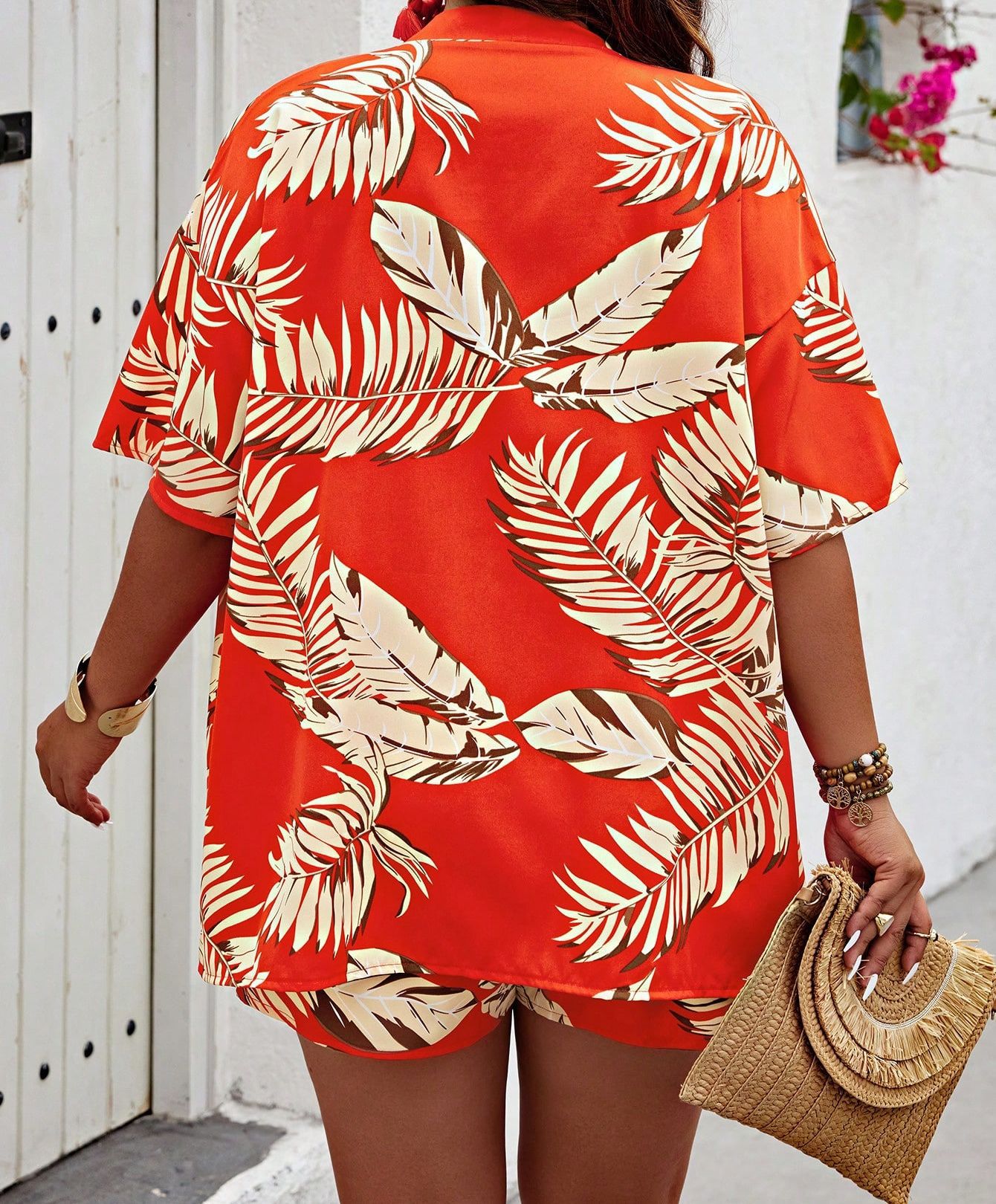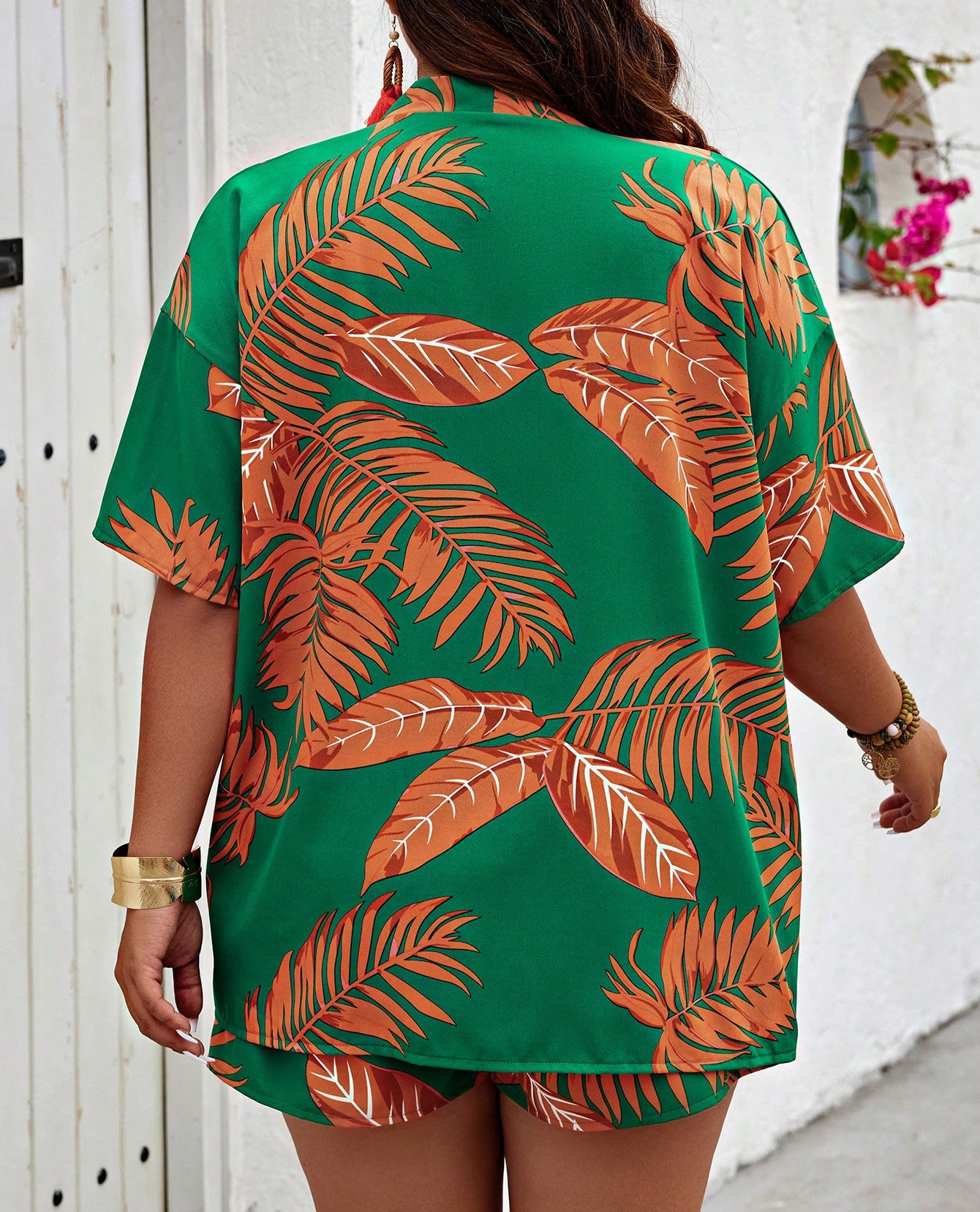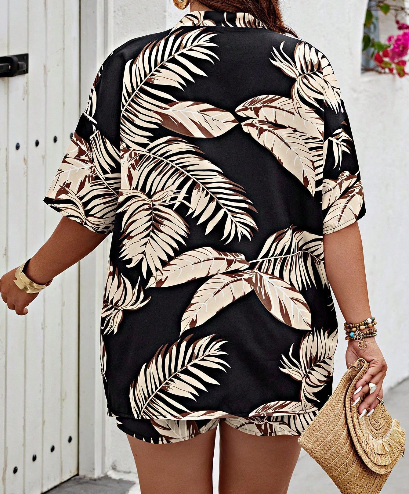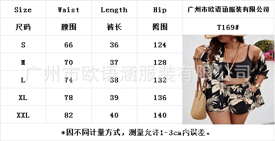 2024 유럽과 미국의 국경 봄과 여름 새로운 여성 의류 아마존 패션 인쇄 캐주얼 홀리데이 스타일 카디건 반바지 세트스토어 가기