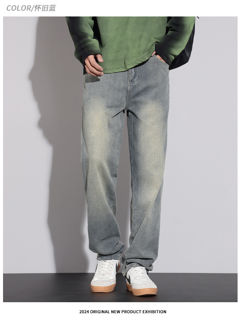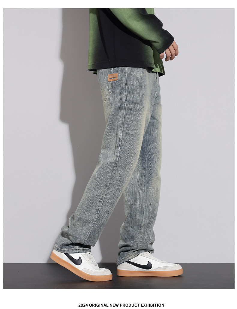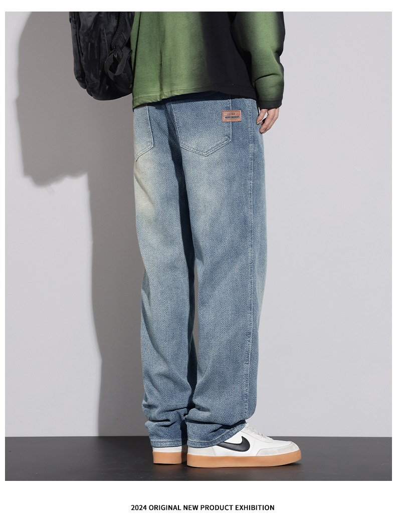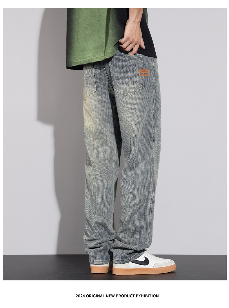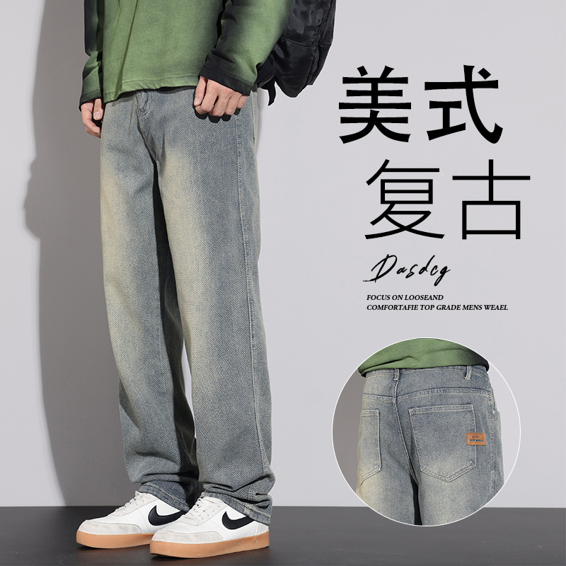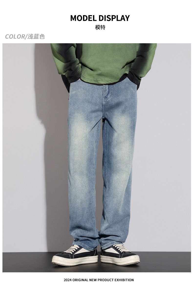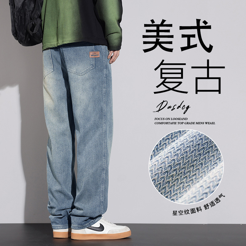 별무늬 데님 팬츠 남성용 2024 봄 신상 직물 스트레이트 와이드 레그 캐주얼 트렌디 브랜드 롱 팬츠 하이 스트리트 스타일스토어 가기