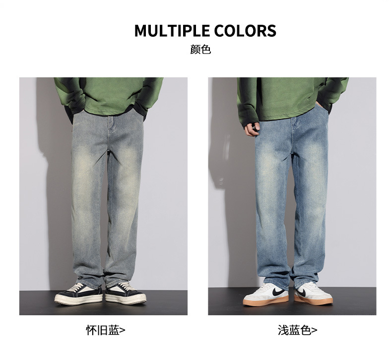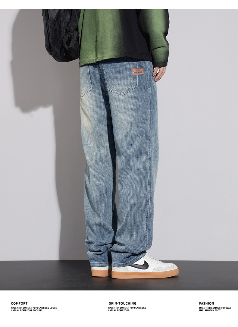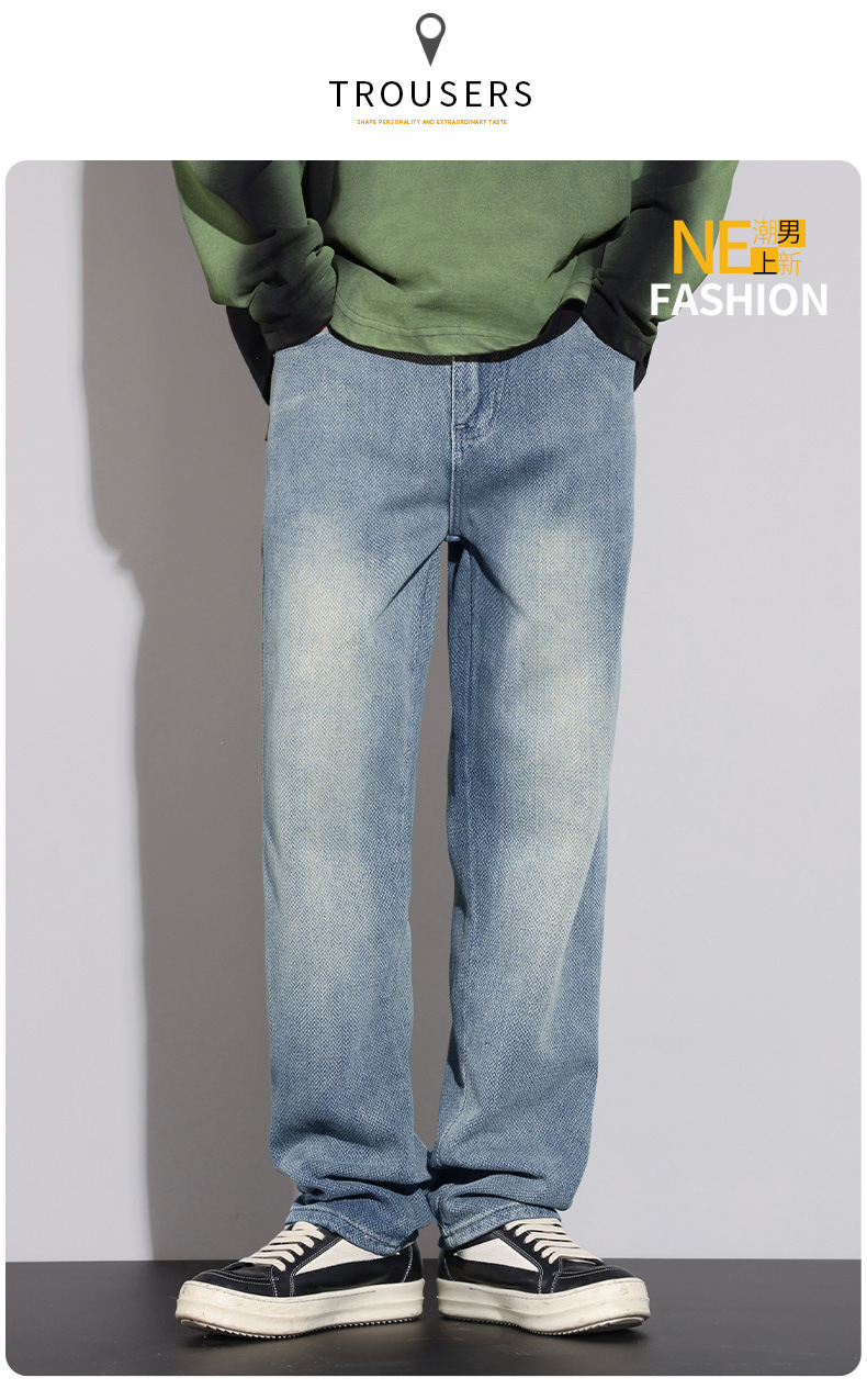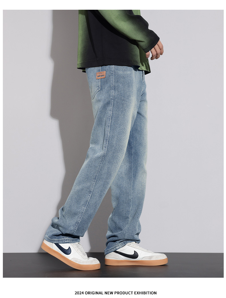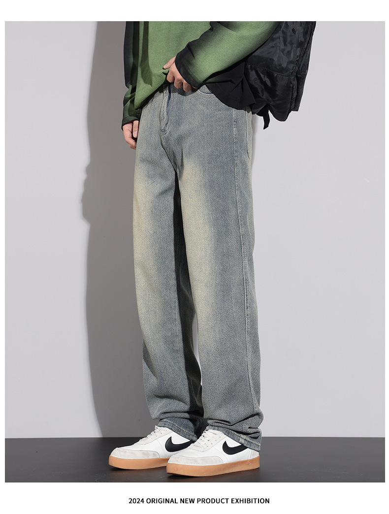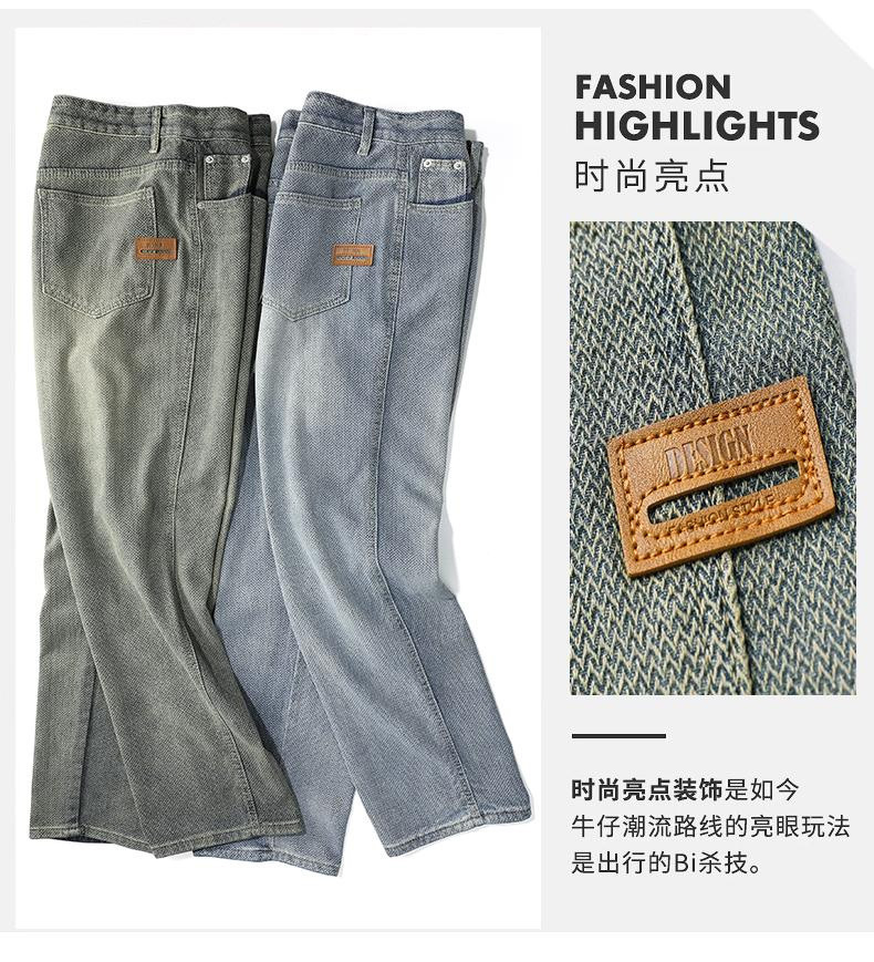 별무늬 데님 팬츠 남성용 2024 봄 신상 직물 스트레이트 와이드 레그 캐주얼 트렌디 브랜드 롱 팬츠 하이 스트리트 스타일스토어 가기