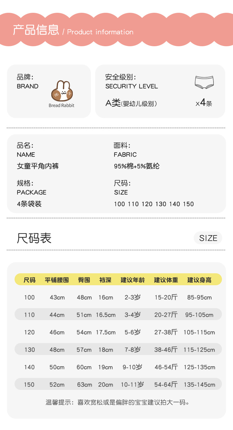 빵 토끼 클래스 순수한면 항균 어린이 속옷 봄 새로운 만화 남성 보물 여성 보물 복서 반바지스토어 가기