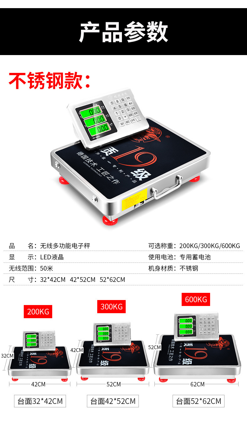 • 무선 규모 탄소강 두껍게 300kg 42*52cm