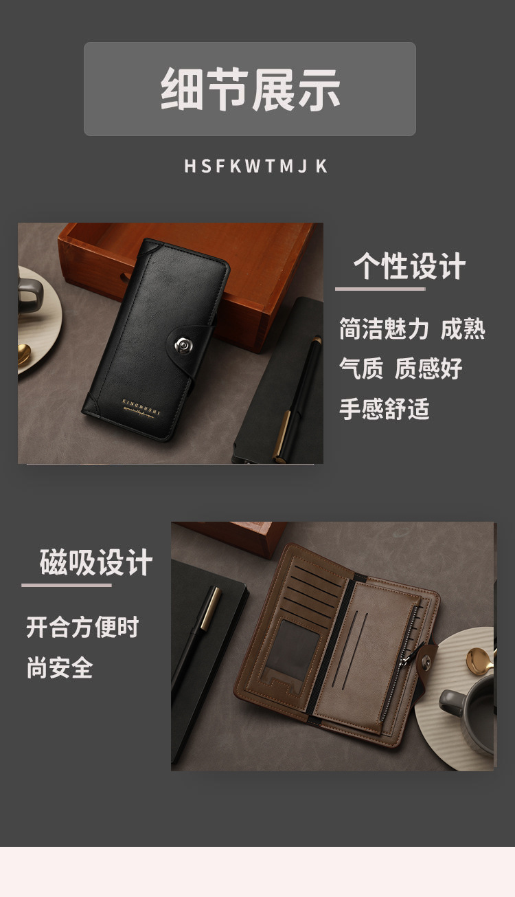 남성용 지갑 긴 마그네틱 버클 세트 백 멀티 카드 카드 소지자 증명서 소지자 남성 패션 3 대 1 지갑 도매스토어 가기