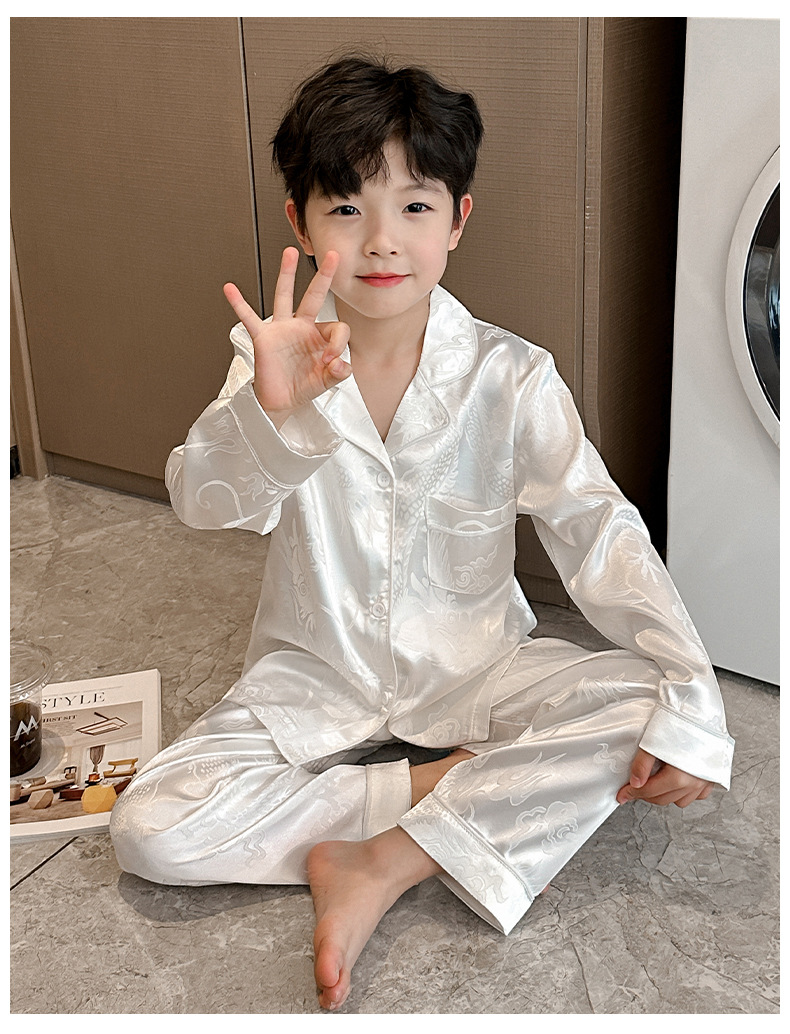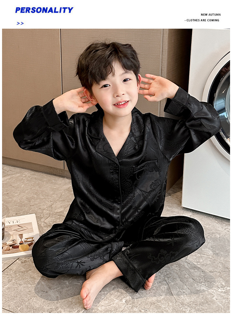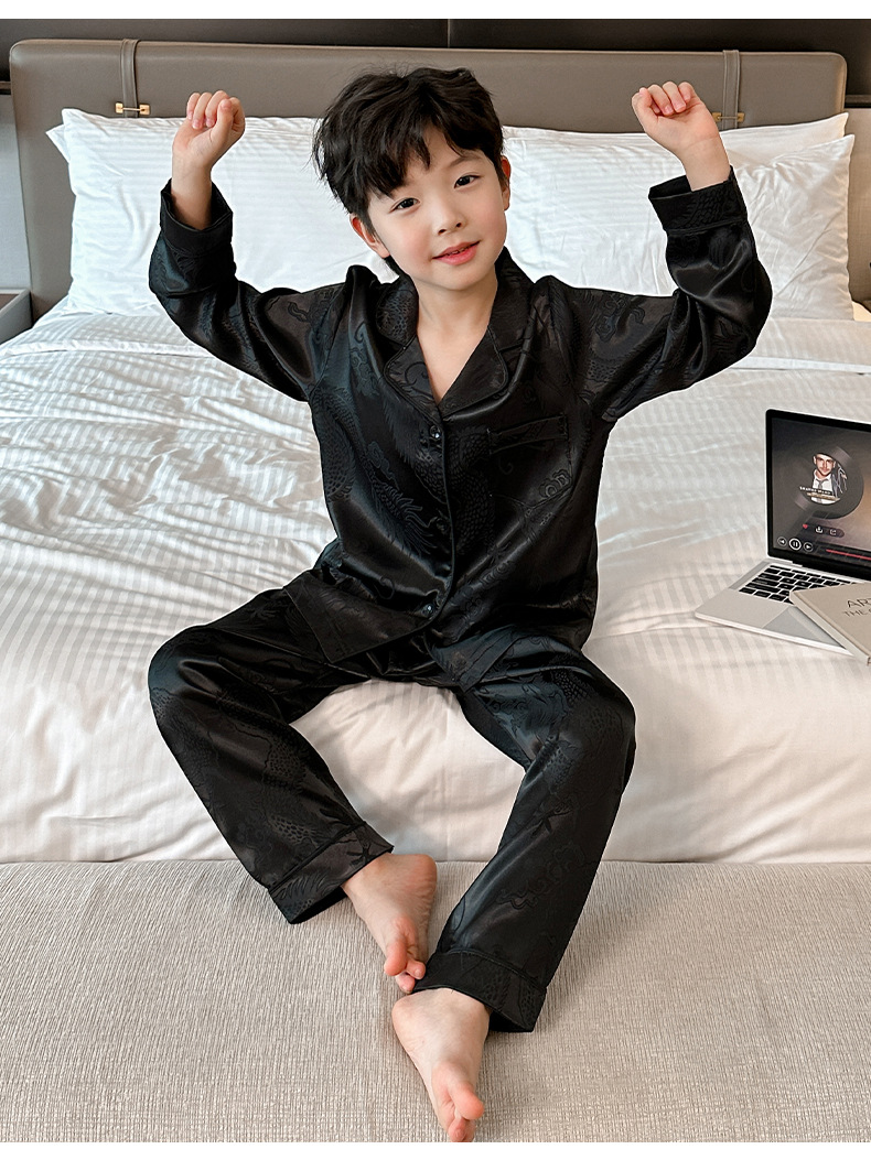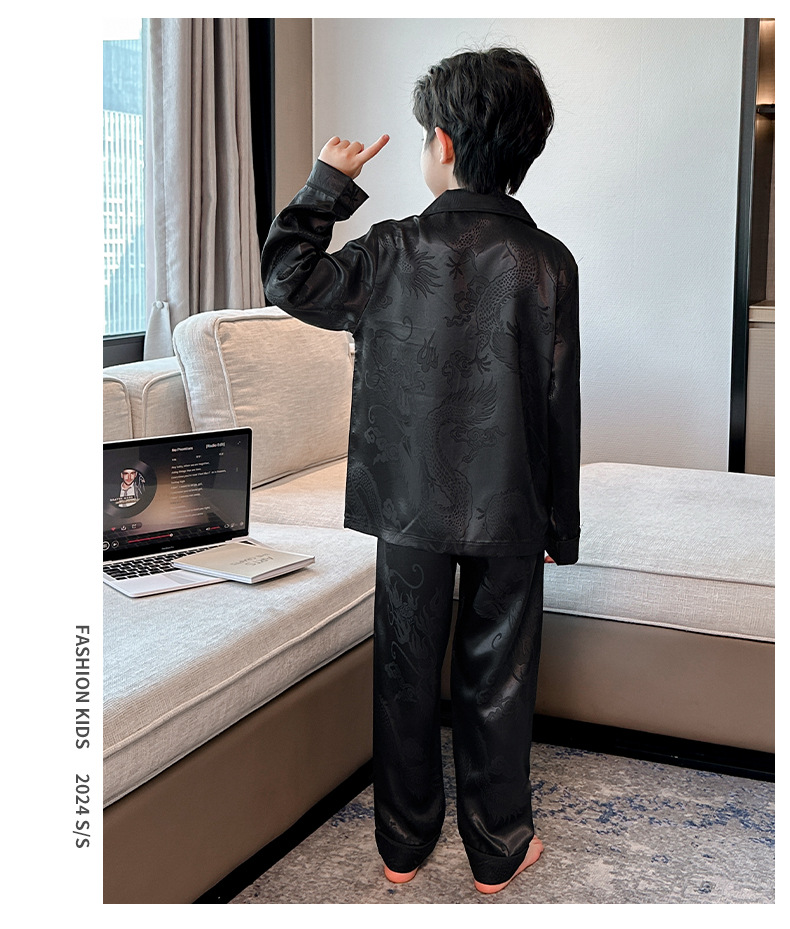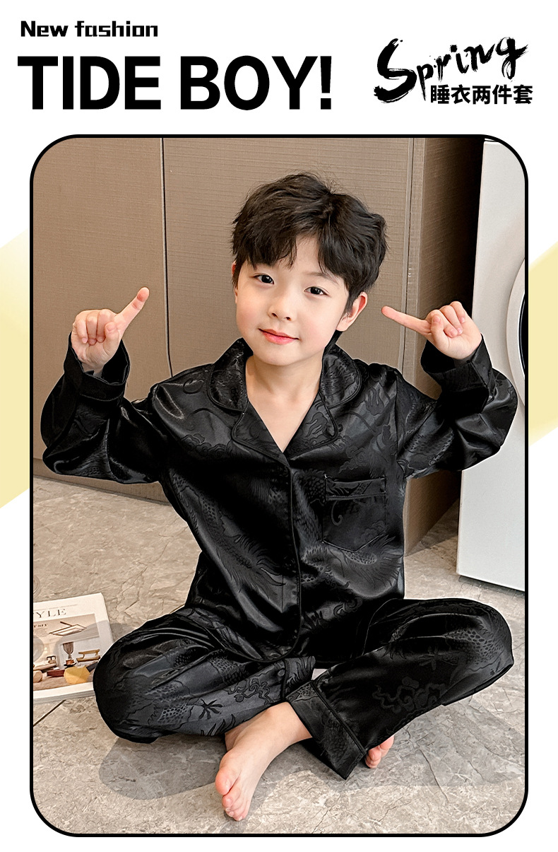 소년 봄, 여름, 가을 얼음 실크 잠옷 세트 2025 새로운 어린이 긴팔 에어컨 옷 Feilong in the Sky 홈 의류스토어 가기