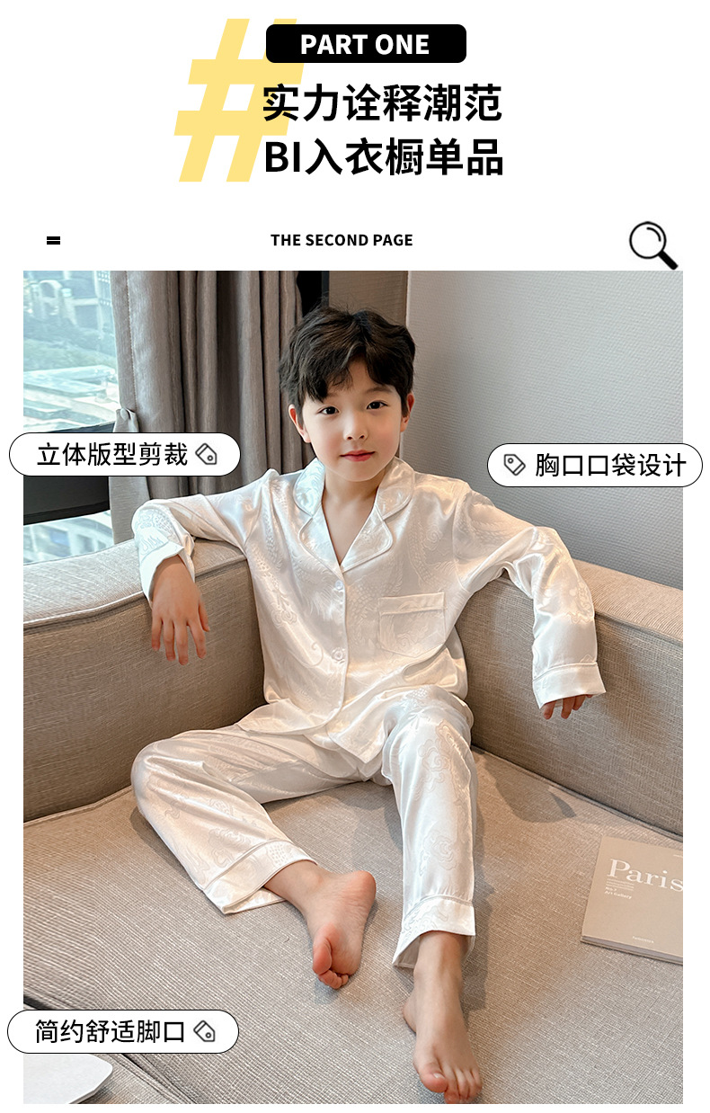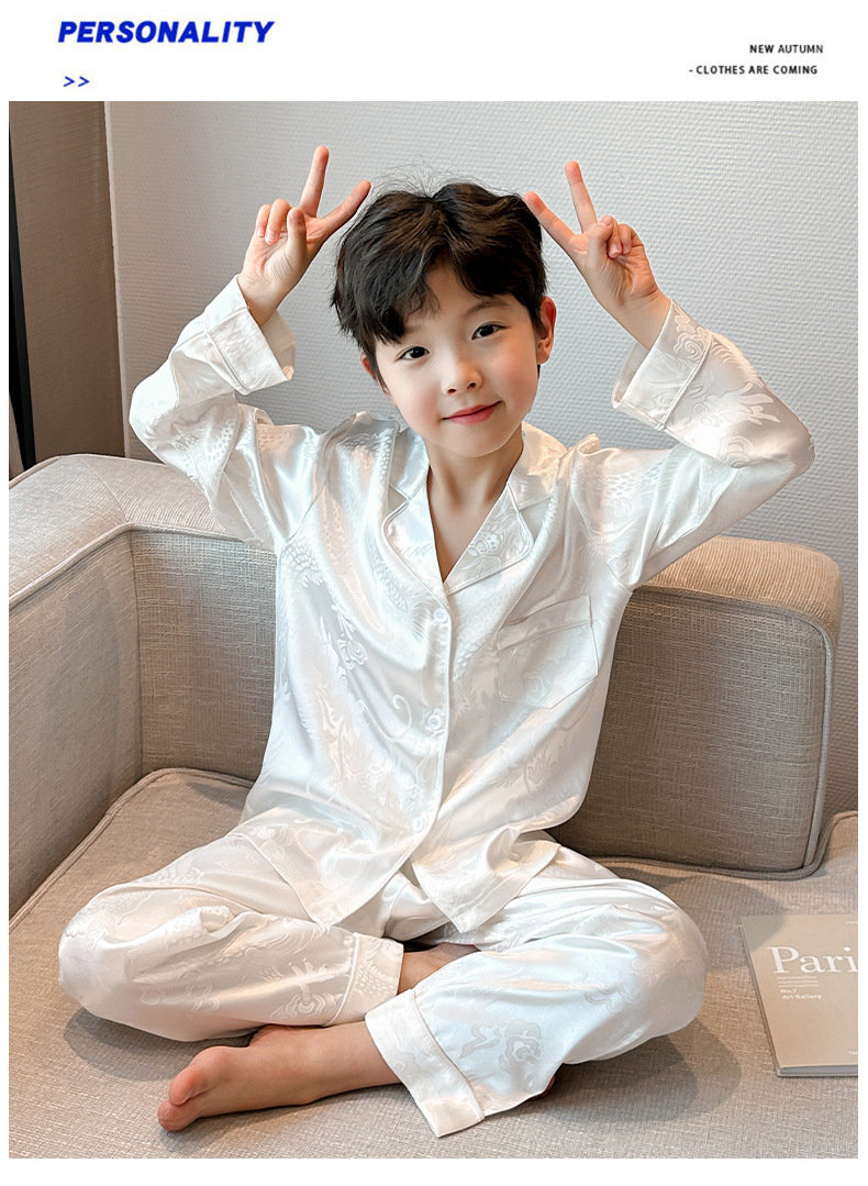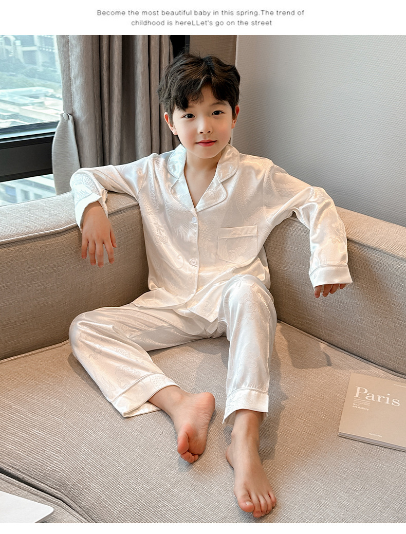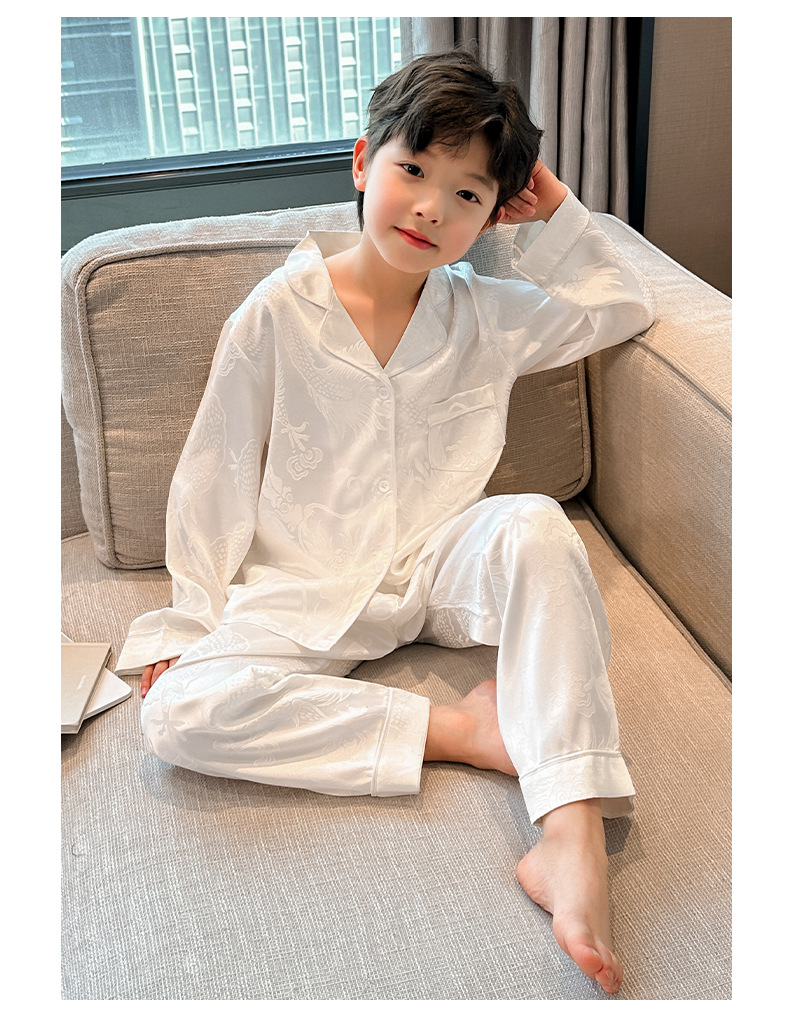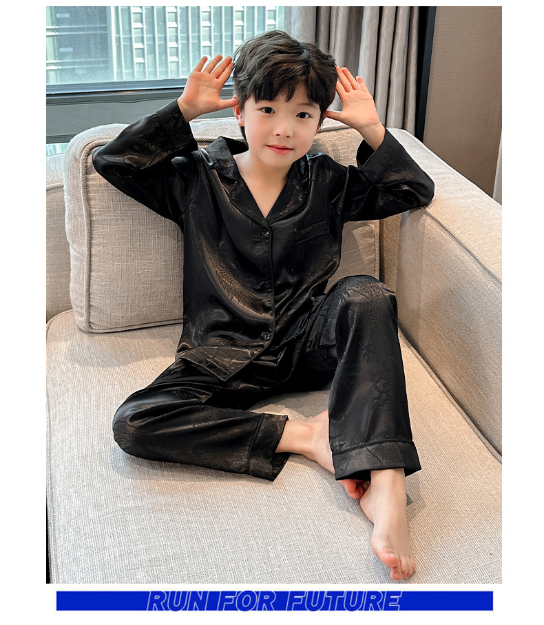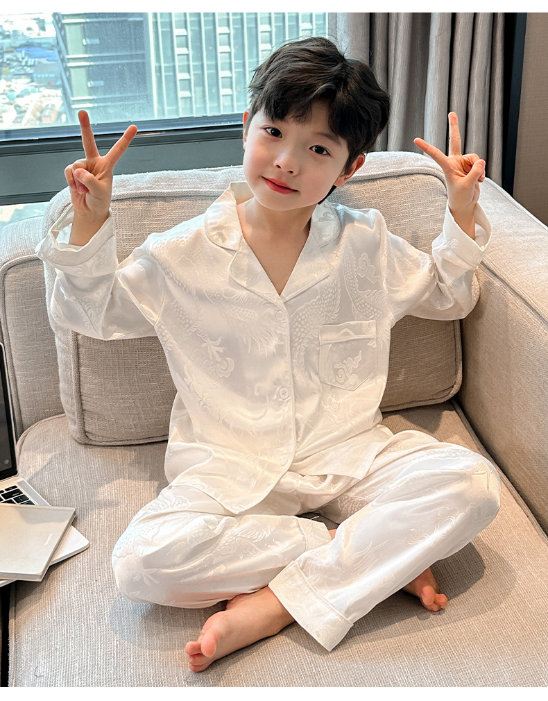 소년 봄, 여름, 가을 얼음 실크 잠옷 세트 2025 새로운 어린이 긴팔 에어컨 옷 Feilong in the Sky 홈 의류스토어 가기