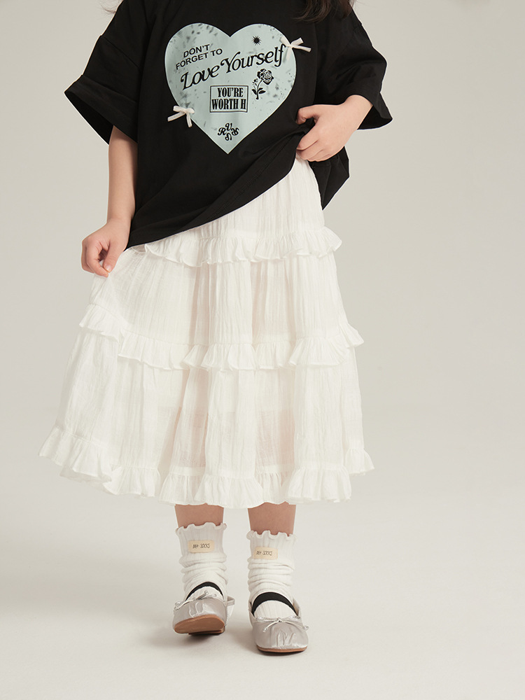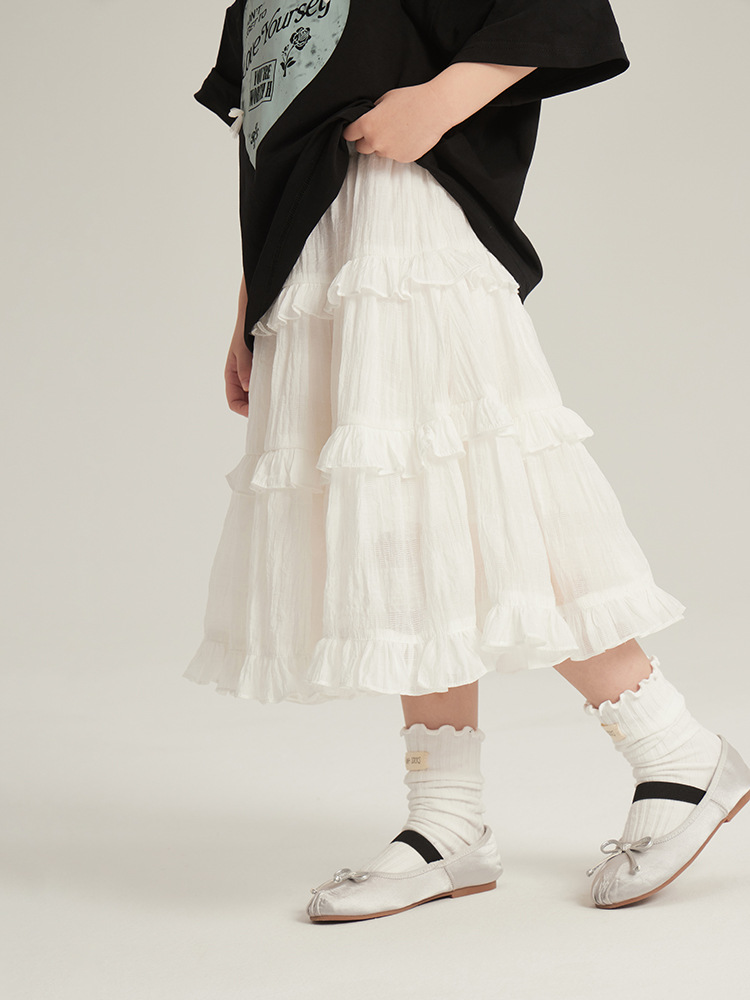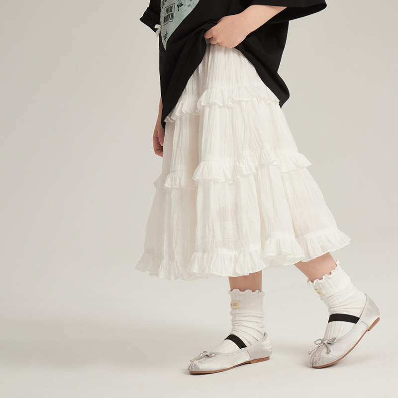 소녀 화이트 스커트 중대형 어린이 프랑스 달콤한 프릴 케이크 스커트 봄 새로운 어린이 올 매치 원피스