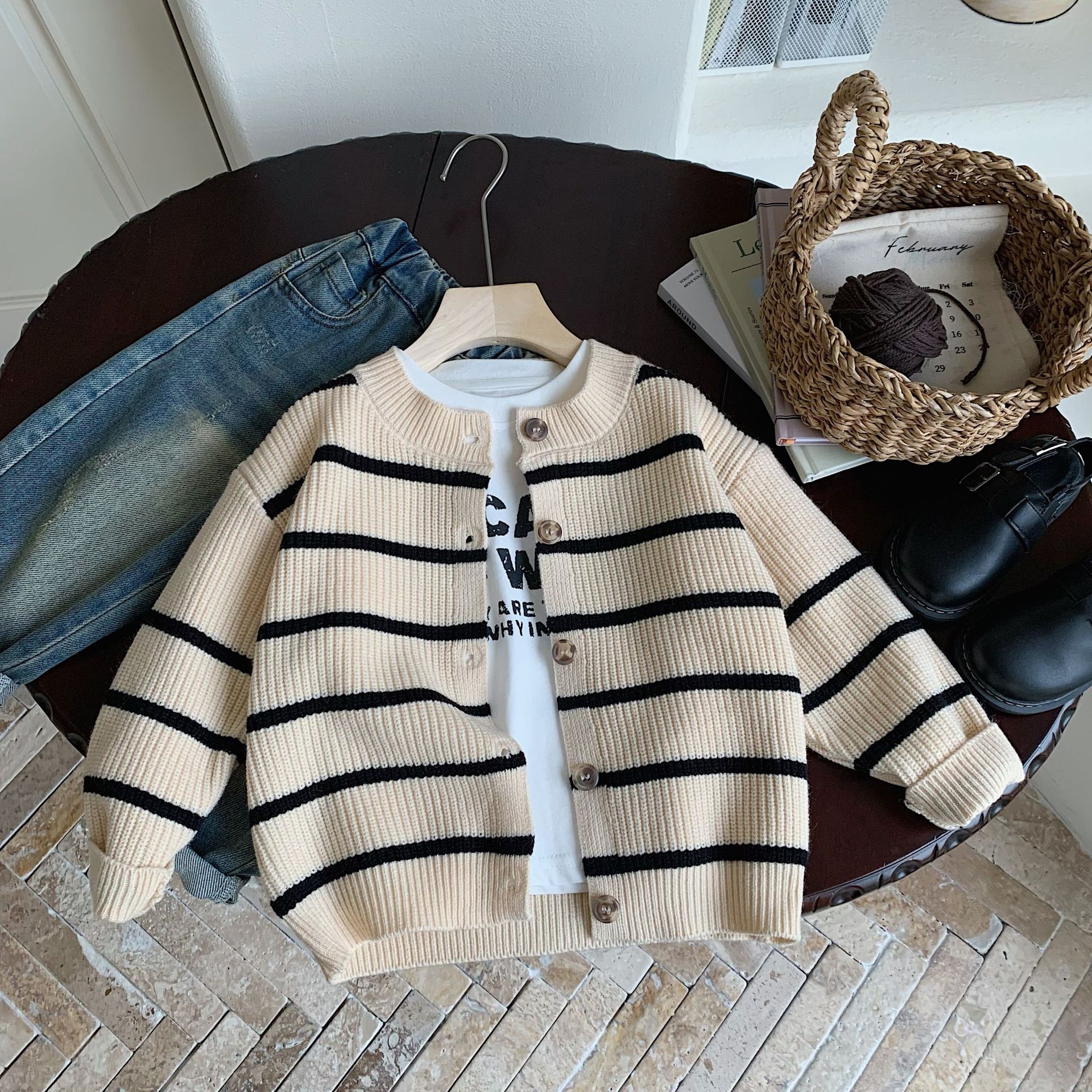 어린이 스웨터 방청 2024 봄 새 소년 소녀 줄무늬 카디건 아동복 울 캐주얼 코트 MY0013스토어 가기