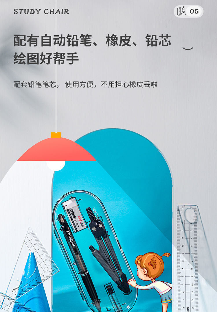 델리 학생 나침반 그림 그리기 도구 세트 문구 학교 추천 어린이 날 선물