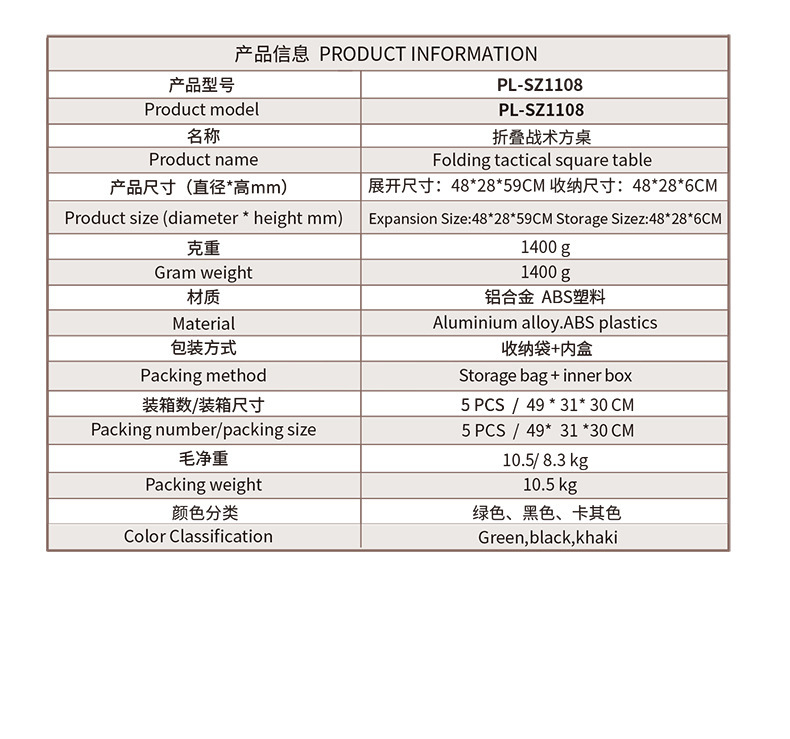 装箱尺寸:5 PCS /49*31*30CM