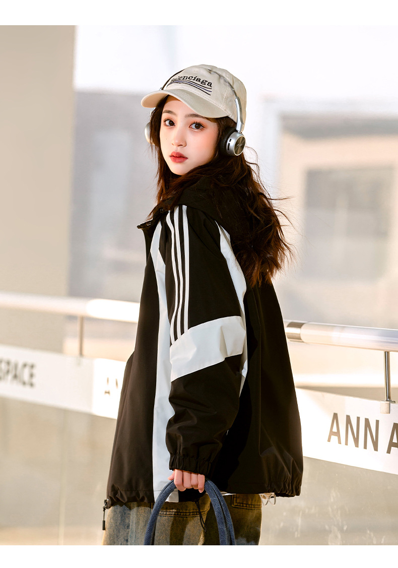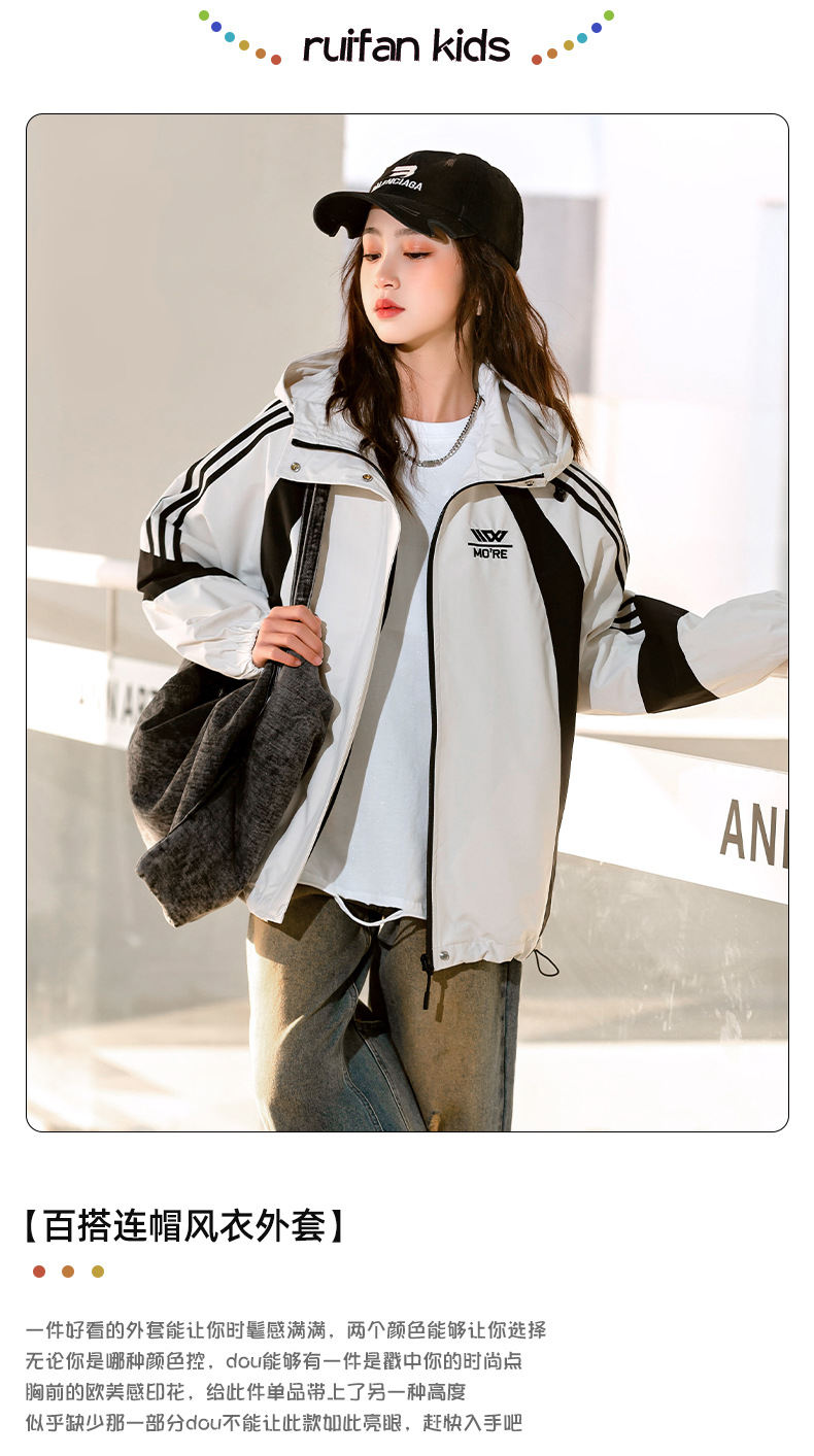 소녀 후드 자켓 봄 2024 봄과 가을 느슨한 캐주얼 윈드 브레이커 12 세 소녀의 나이 많은 아동복스토어 가기