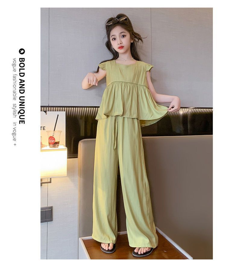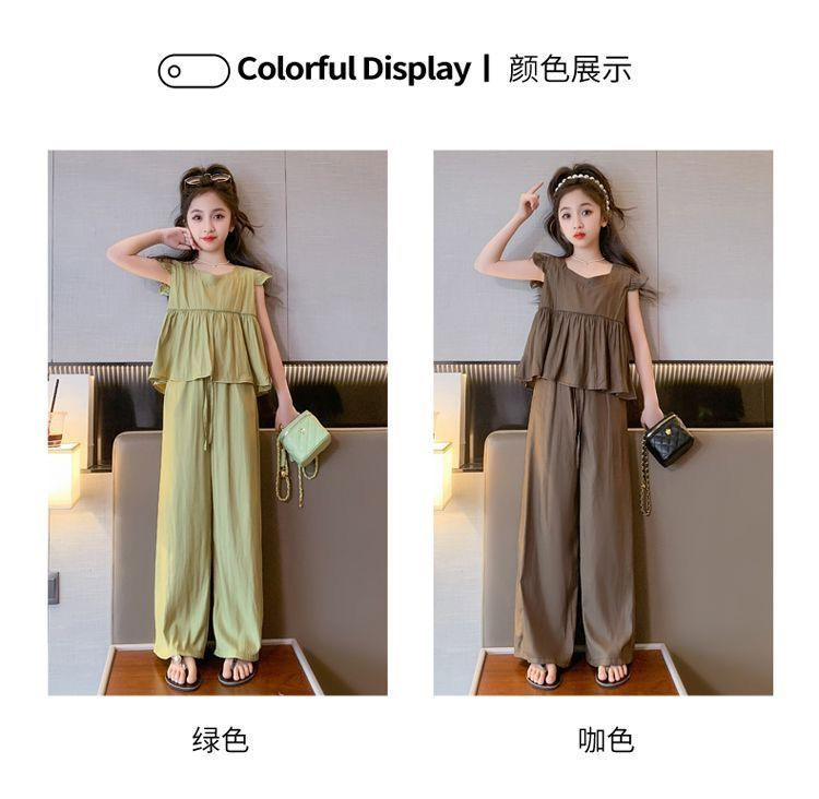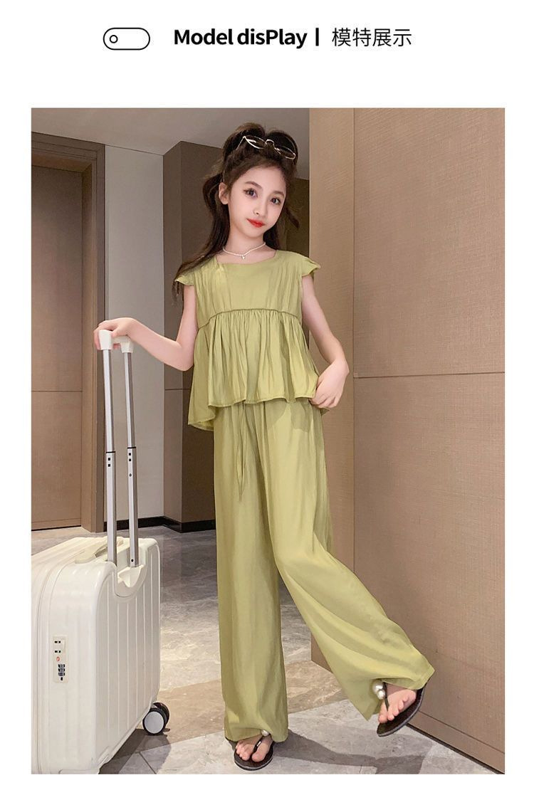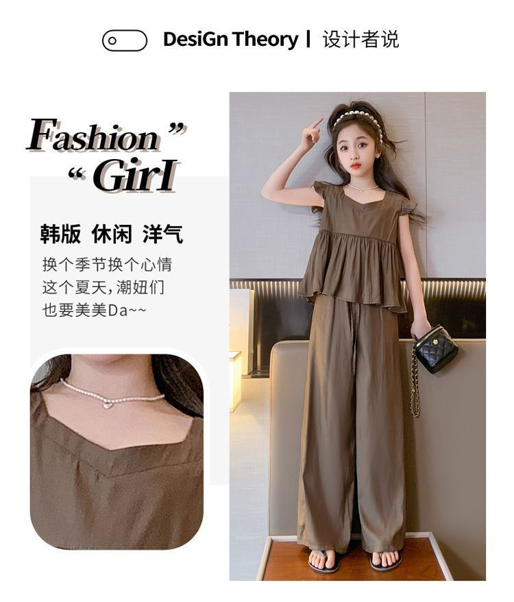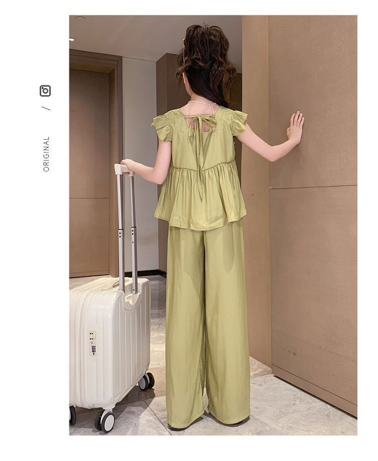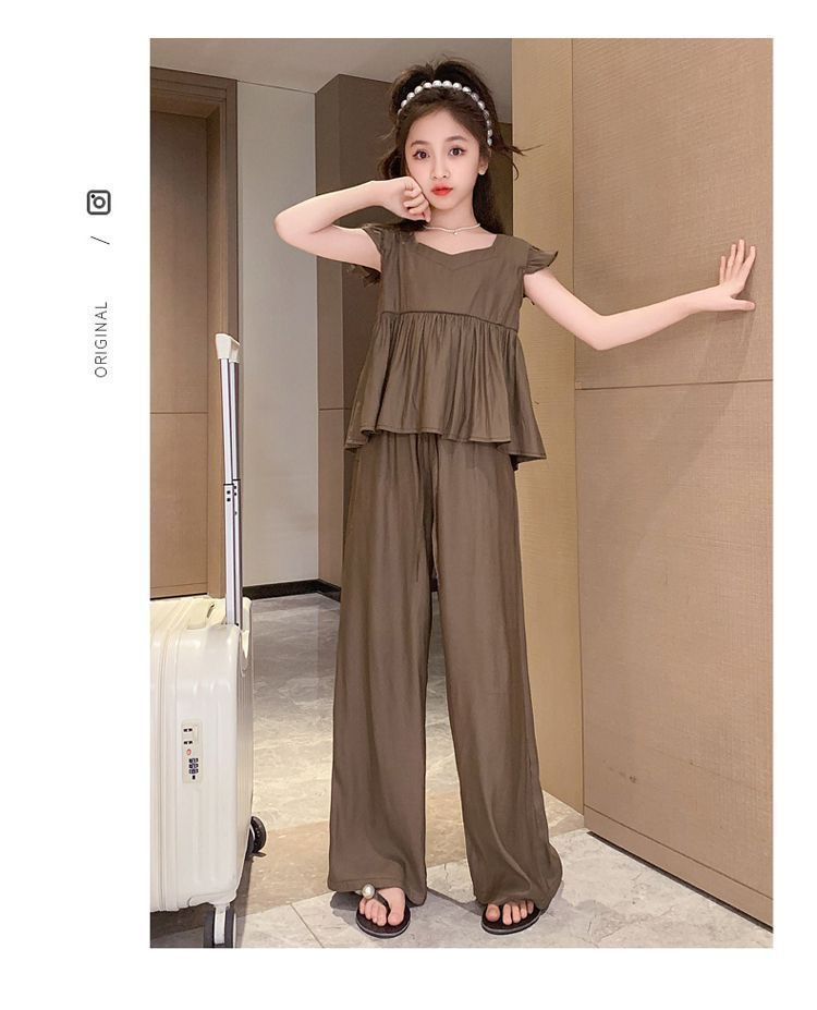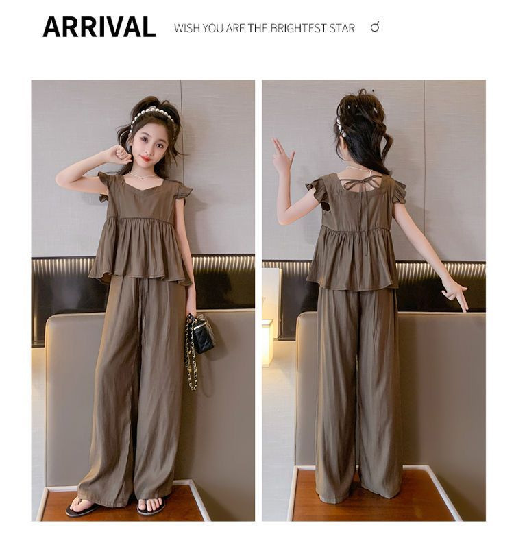 소녀 세트 여름 새로운 미디어와 큰 아이들 느슨한 드레이핑 옷 소녀 캐주얼 탑 와이드 레그 바지 투피스 세트 패션스토어 가기
