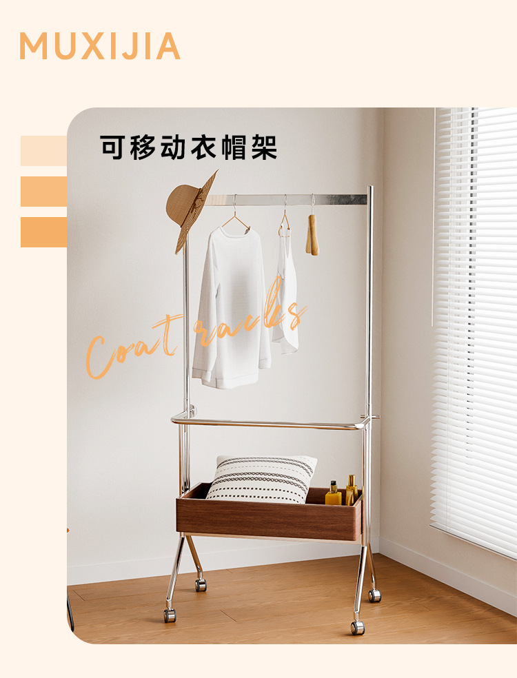 중고 플로어 스탠딩 옷걸이 스테인레스 스틸 코트 랙 침실 복고풍 옷걸이 이동식 옷걸이 보관함스토어 가기