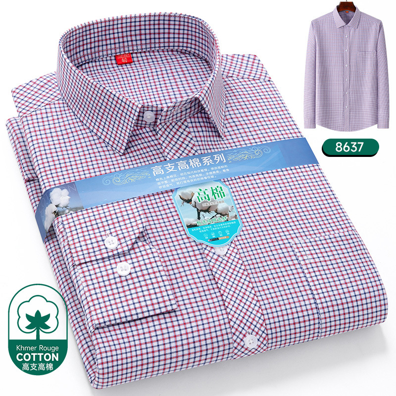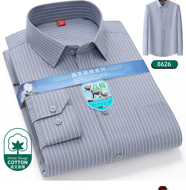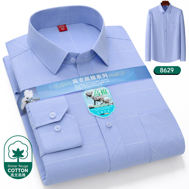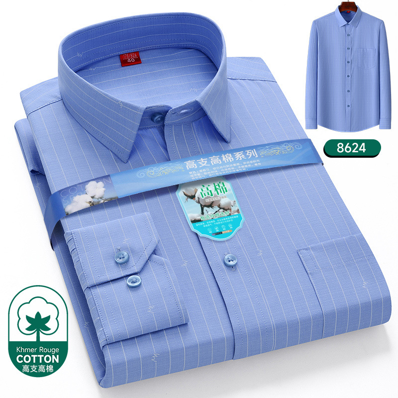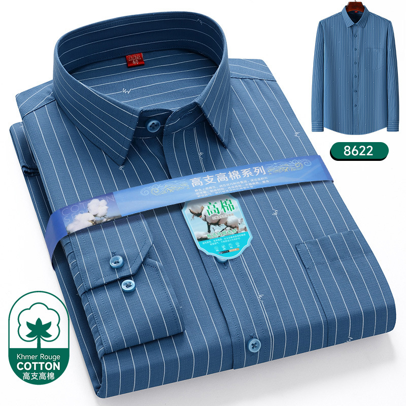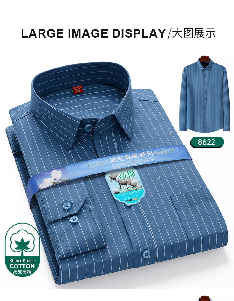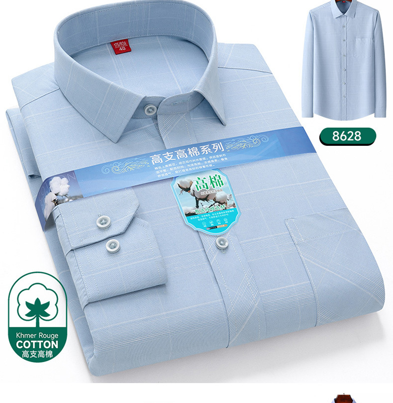 2024 봄 새 셔츠 남성용 긴팔 하이면 하이 비즈니스 캐주얼 포켓 스트라이프 체크 무늬 중년 셔츠 패션스토어 가기