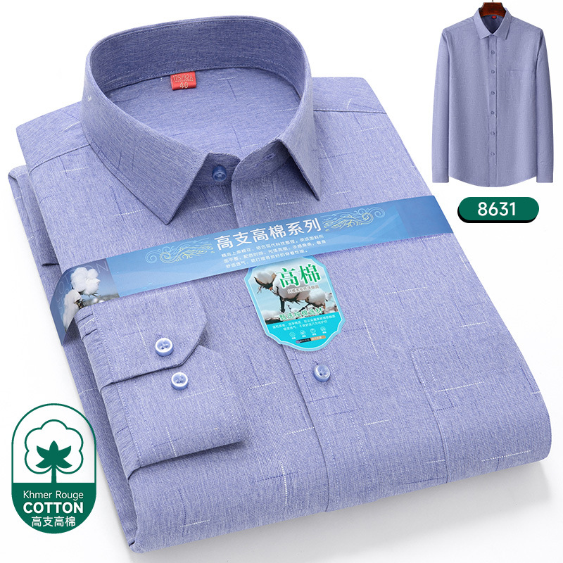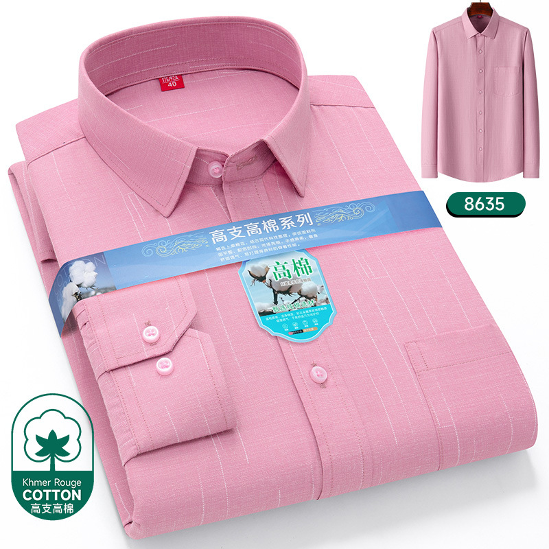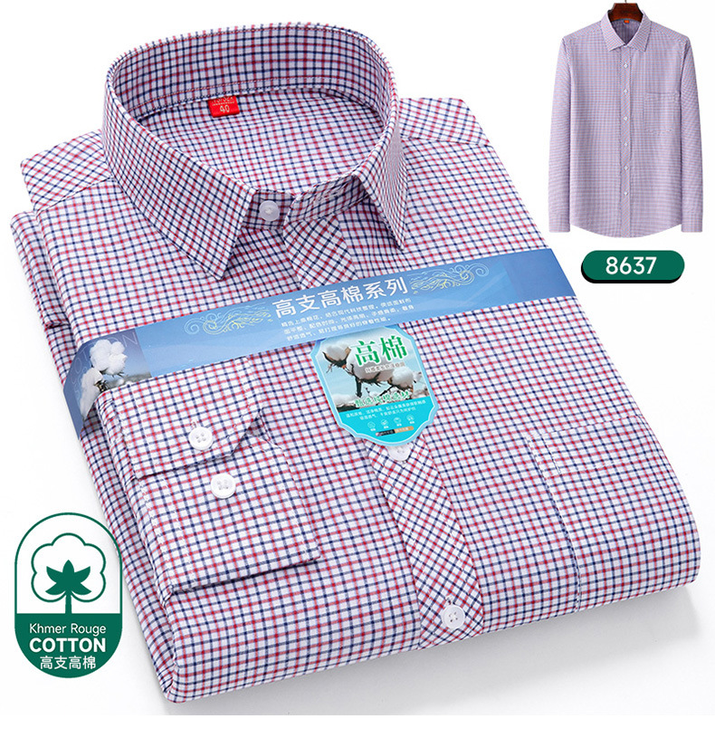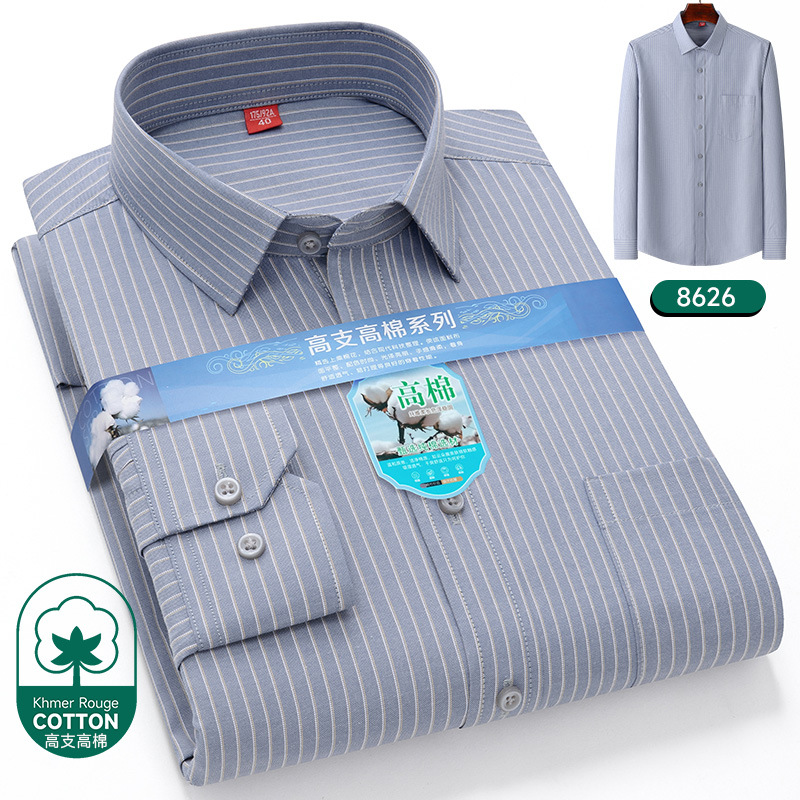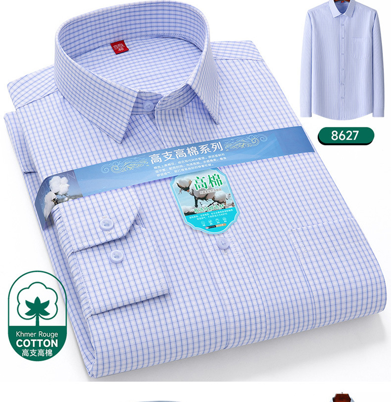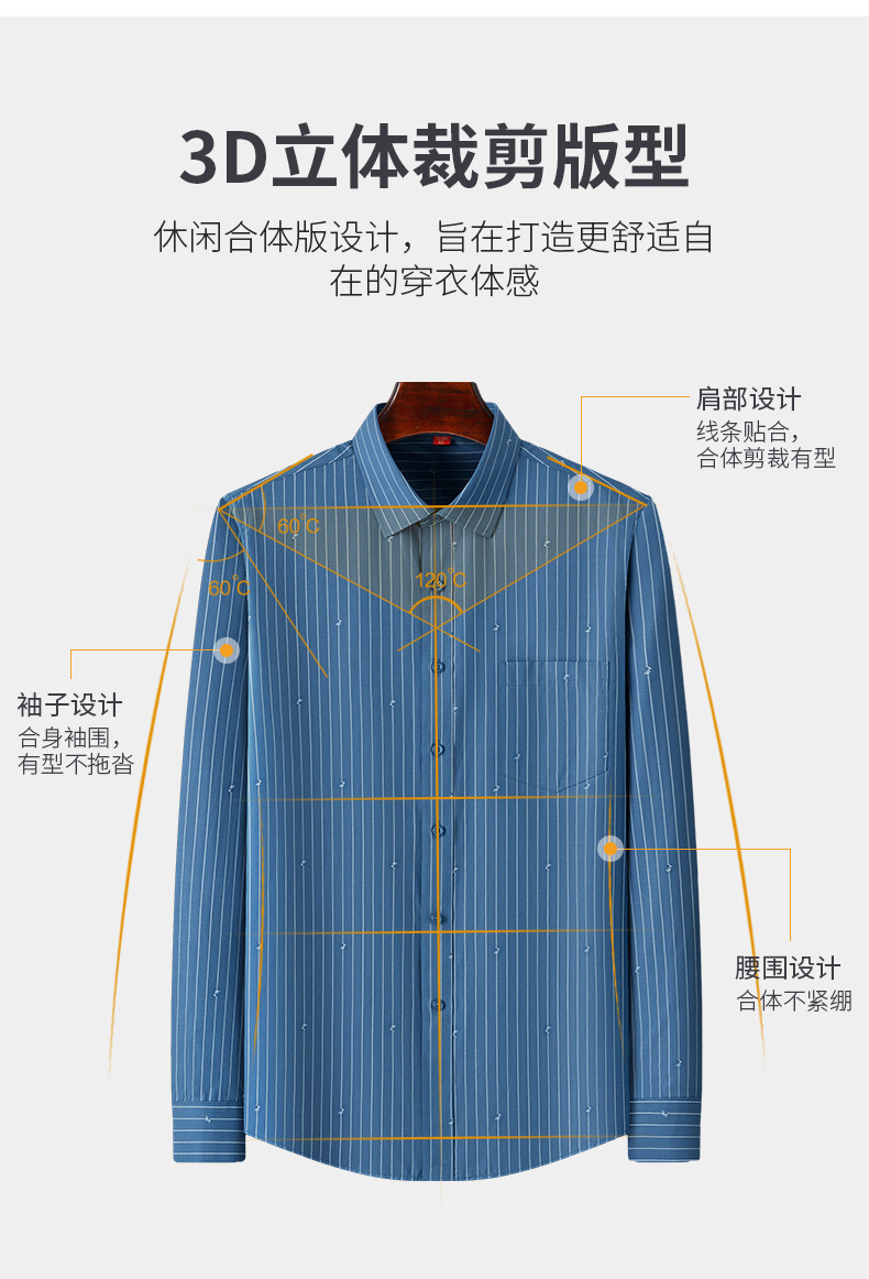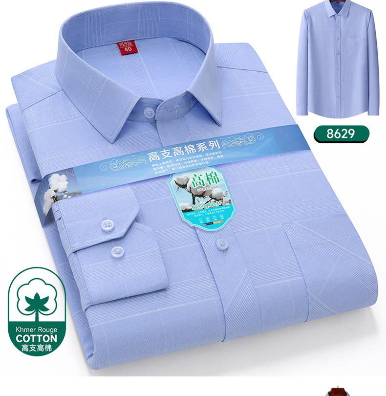 2024 봄 새 셔츠 남성용 긴팔 하이면 하이 비즈니스 캐주얼 포켓 스트라이프 체크 무늬 중년 셔츠 패션스토어 가기