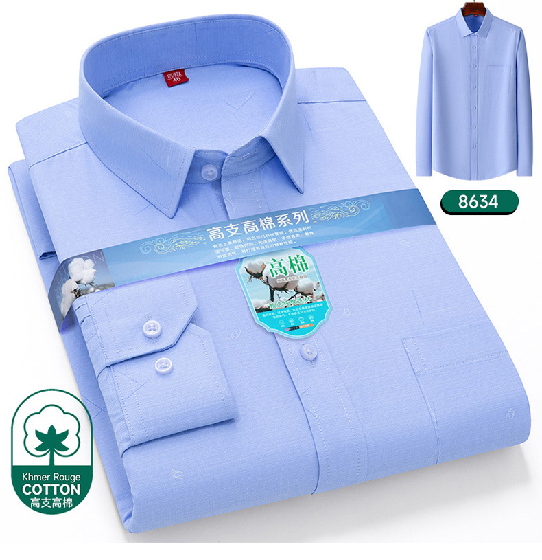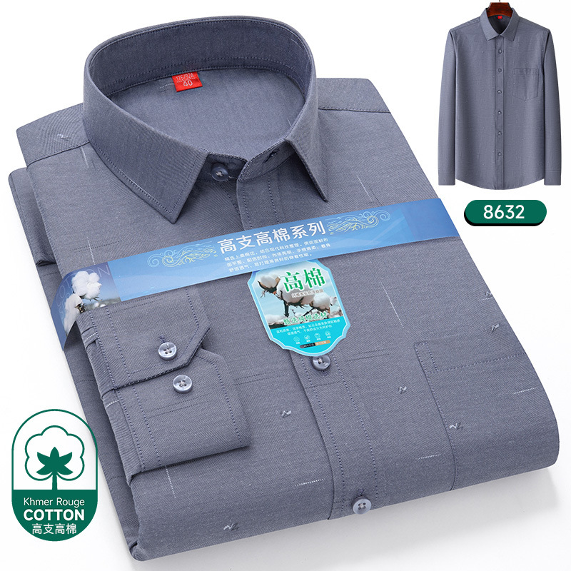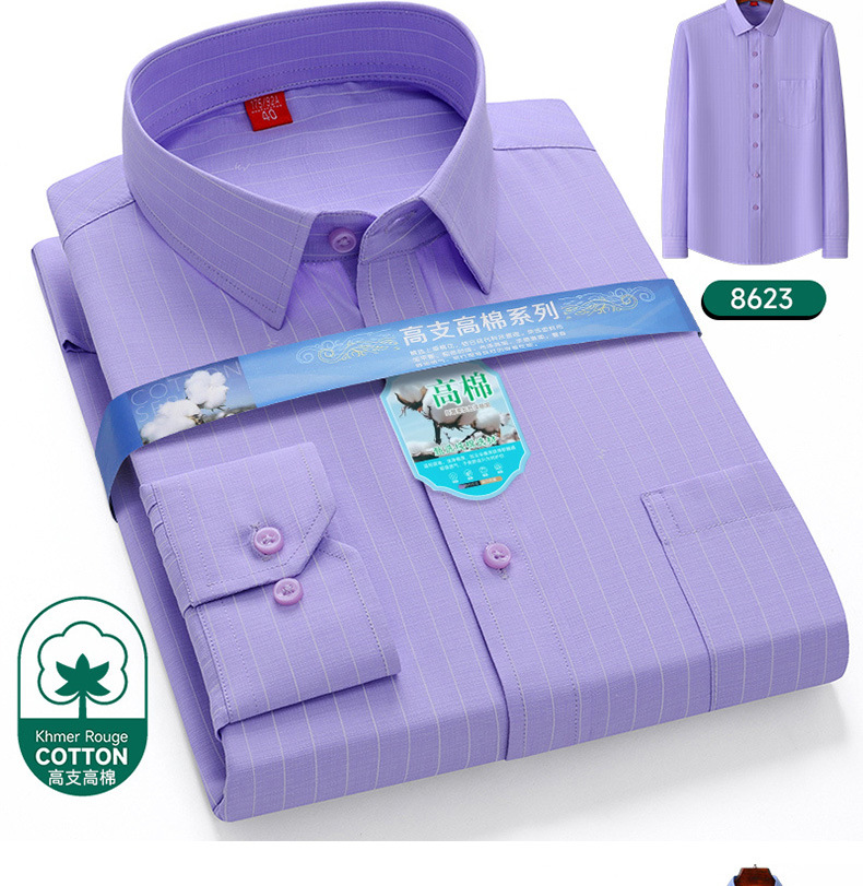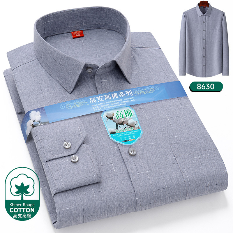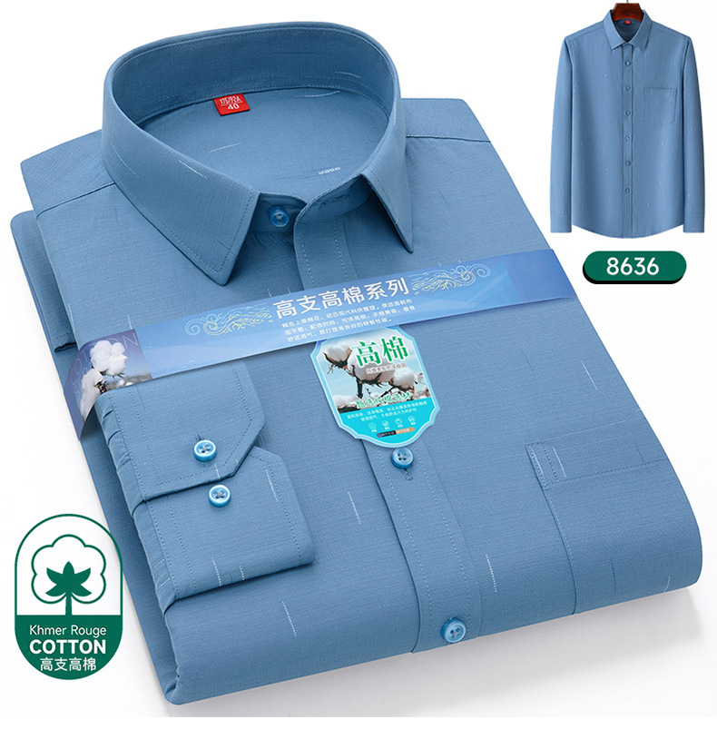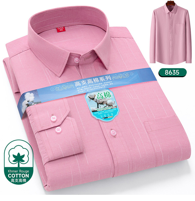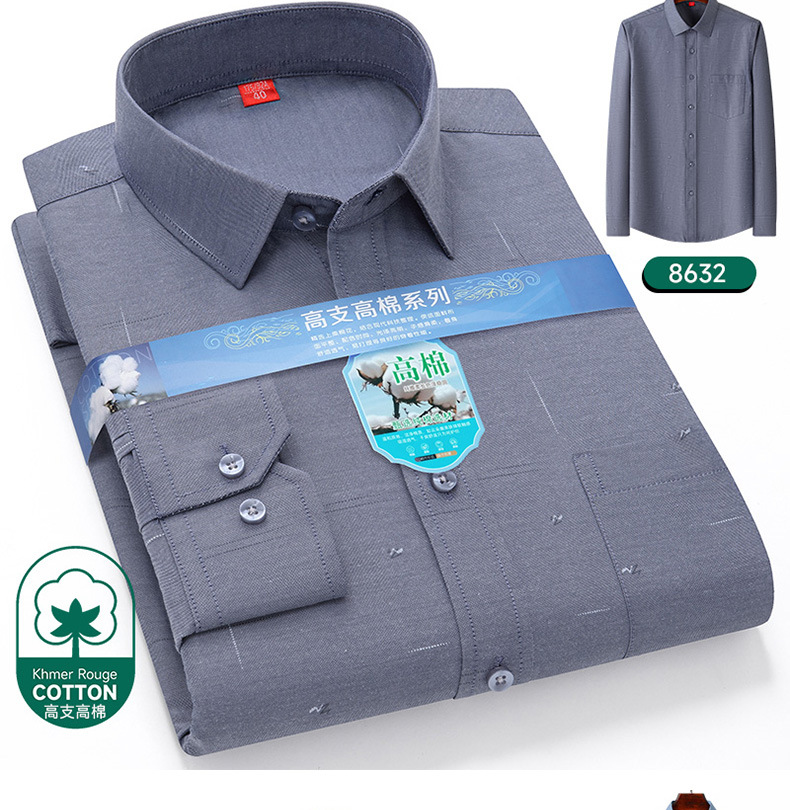 2024 봄 새 셔츠 남성용 긴팔 하이면 하이 비즈니스 캐주얼 포켓 스트라이프 체크 무늬 중년 셔츠 패션스토어 가기
