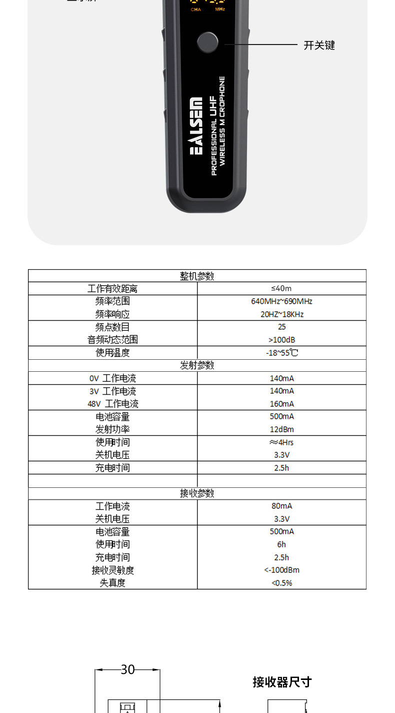 무선 수류탄 시스템 이동 코일 커패시터 마이크 송신기 수신기 무선 변환기에 유선 마이크