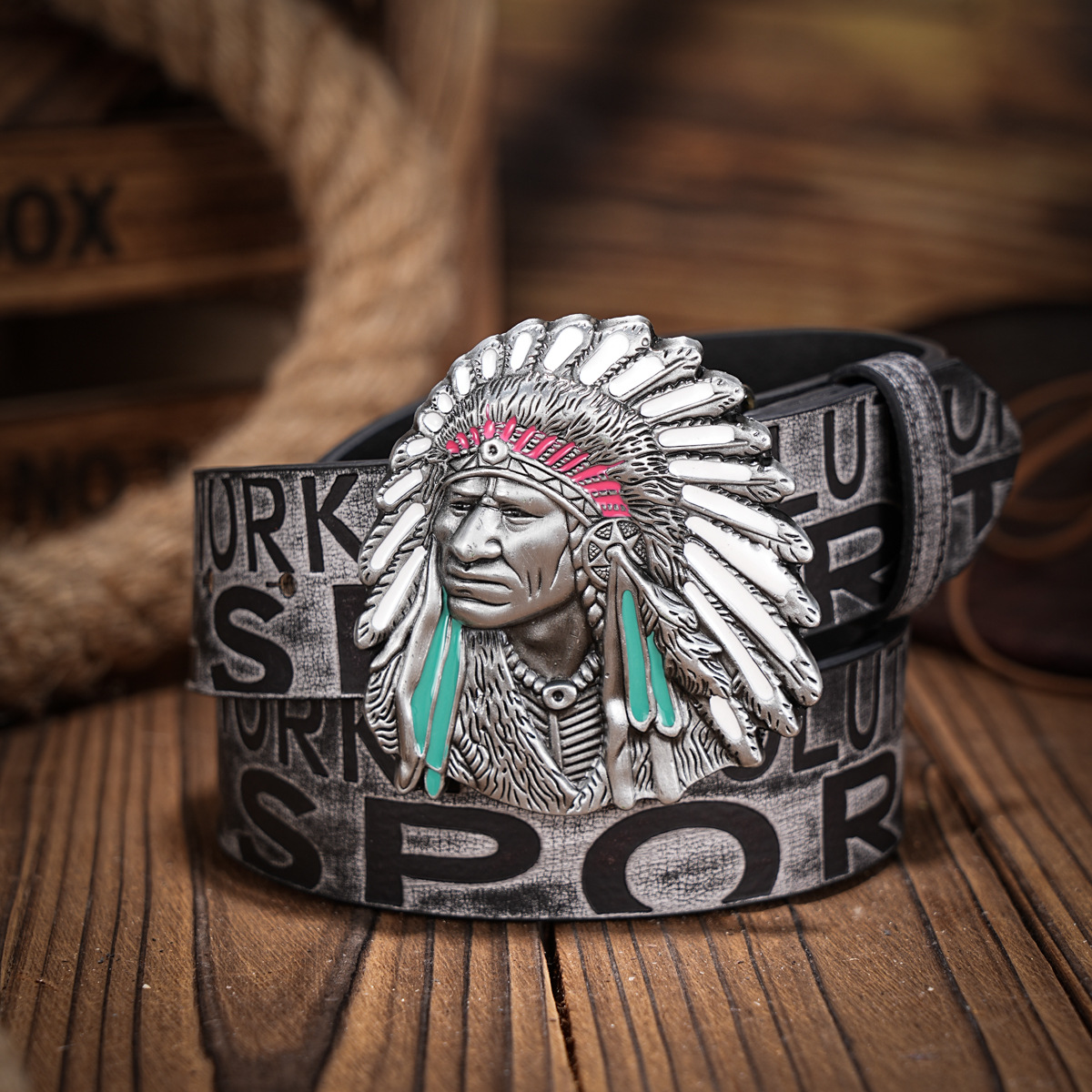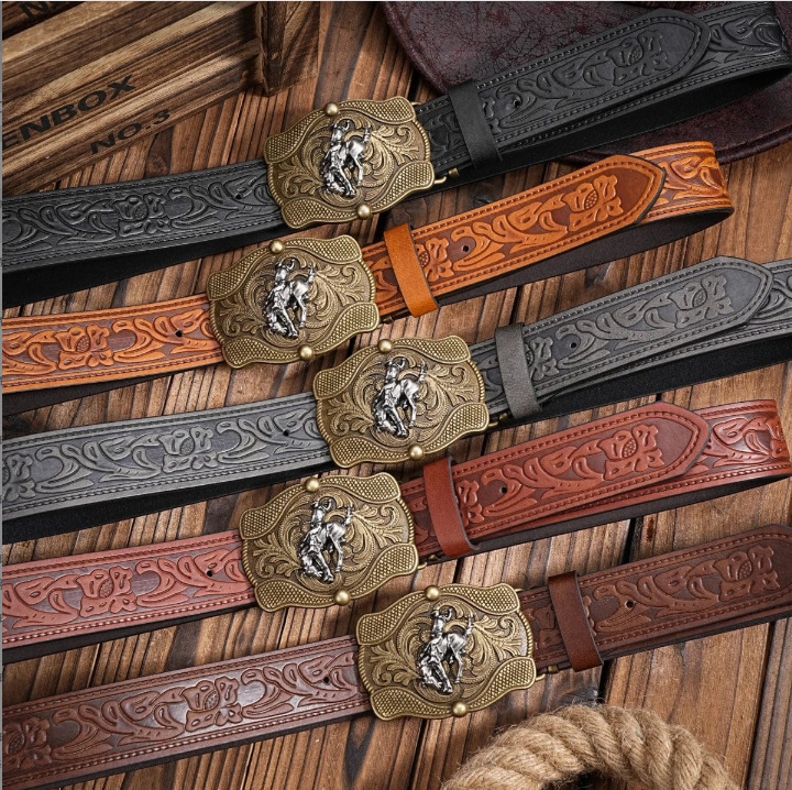 국경 간 펑크 스타일 벨트 복고풍 유행 엠보싱 버클 PU 가죽 벨트 남성용 웨스턴 데님 벨트